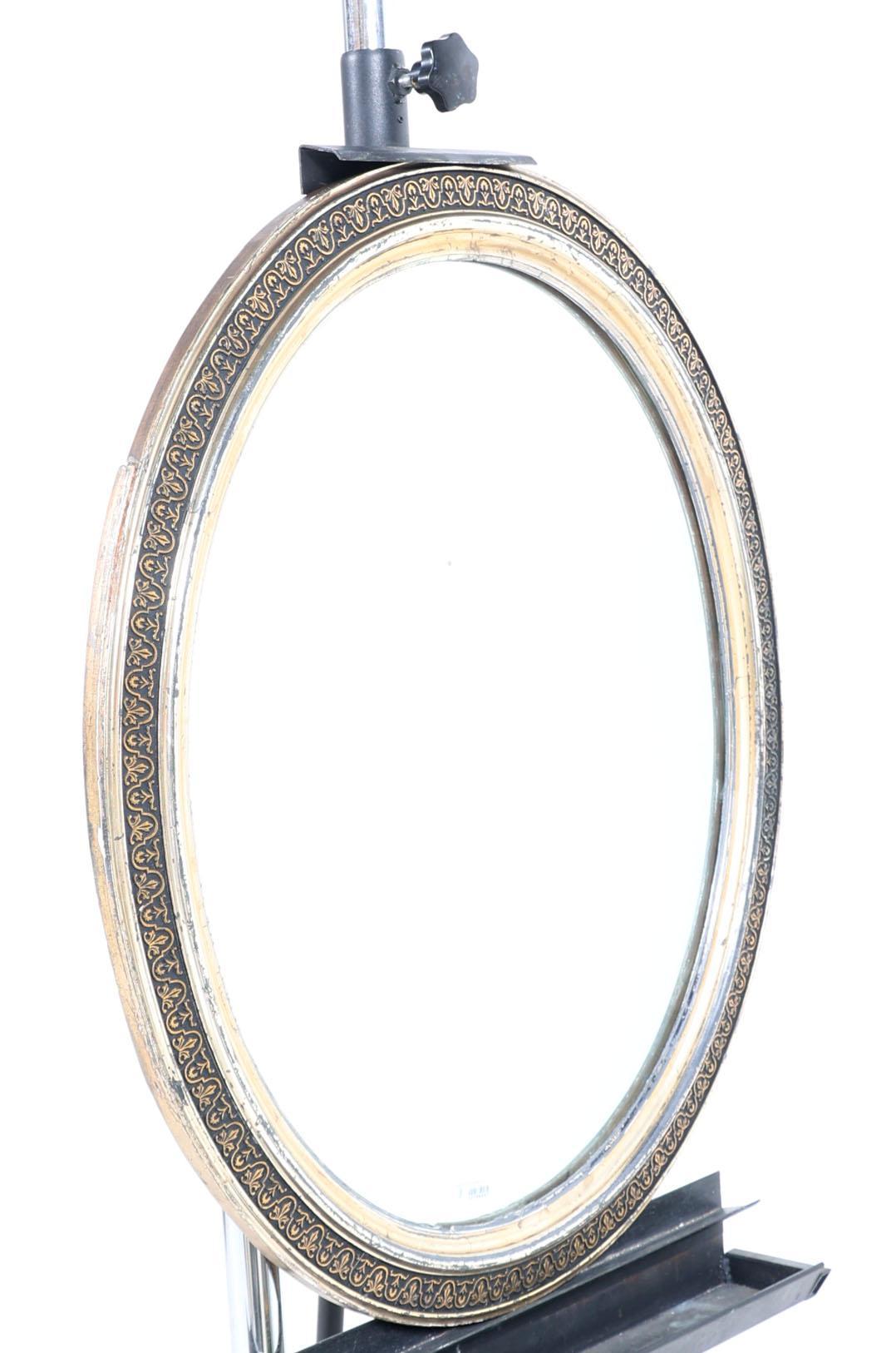 Oude ovale spiegel in zilver/goudkleurige lijst, 77 x 65 cm.