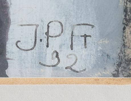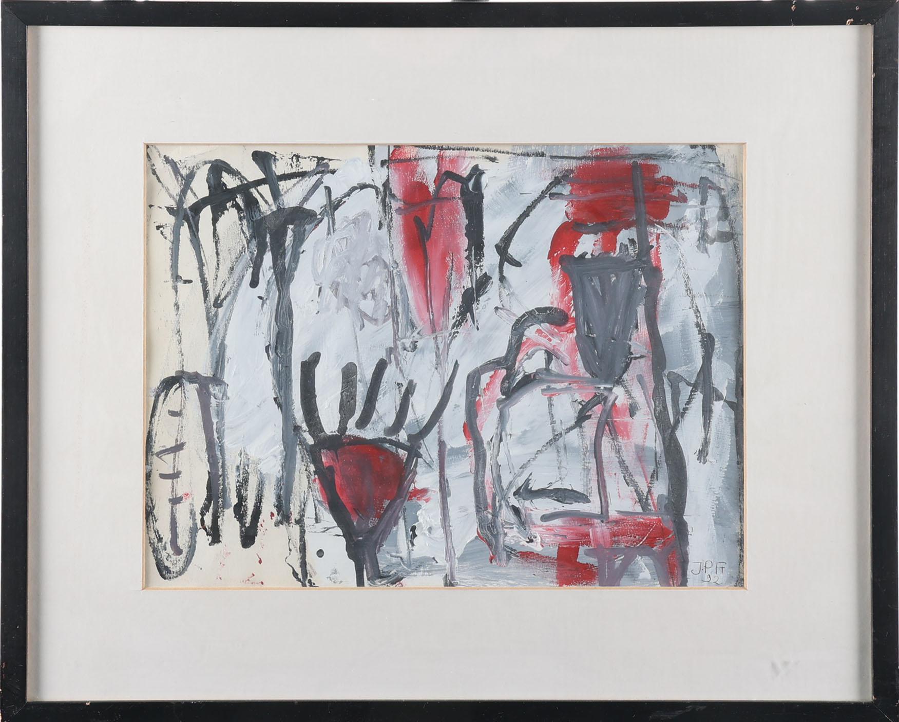 Monogram JPF, Zonder titel, gemengde techniek, gedateerd 1992, 23 x 28 cm.