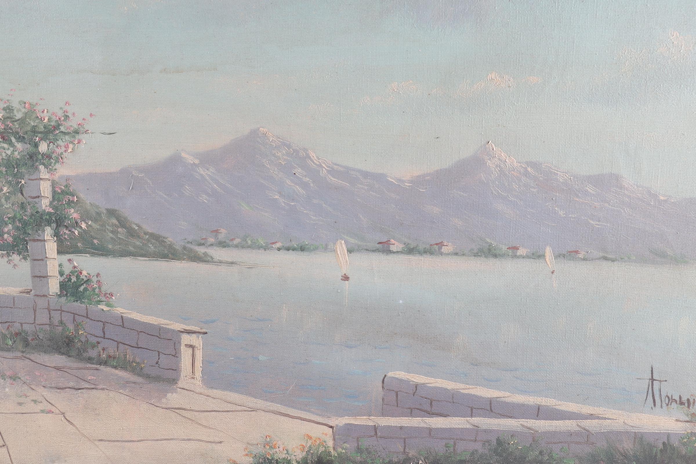 Albert Torringa, Mediterraan zeegezicht, olieverf op doek, 40 x 80 cm.