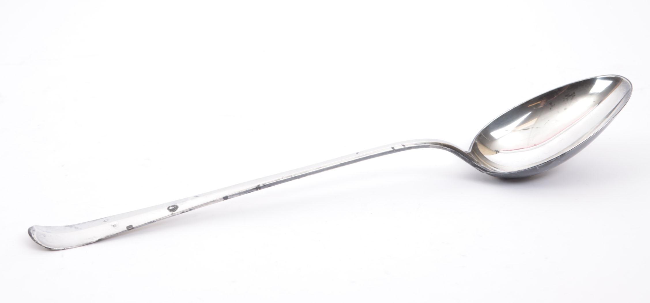 2e Gehalte zilveren rijstebrij-lepel, L.40 cm., 230 gram