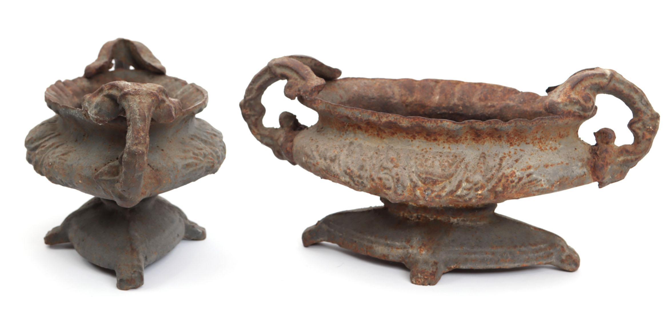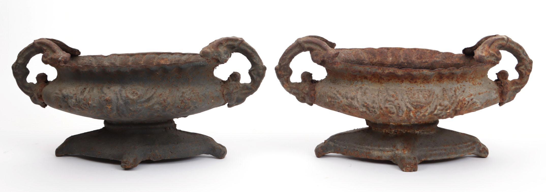 Set van 2 ijzeren bloempotten, h.18 cm.