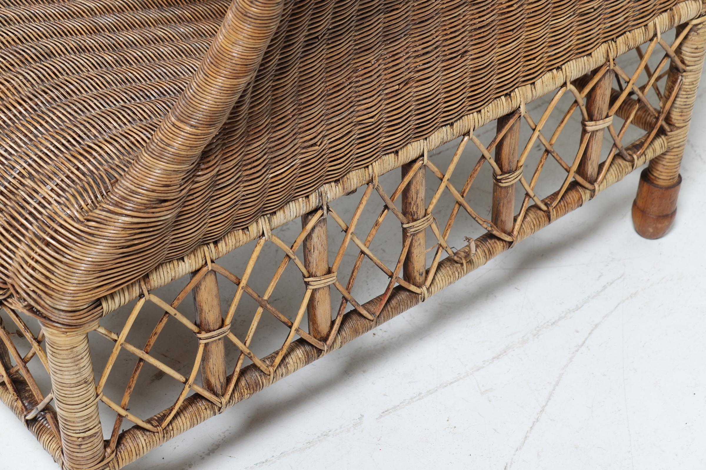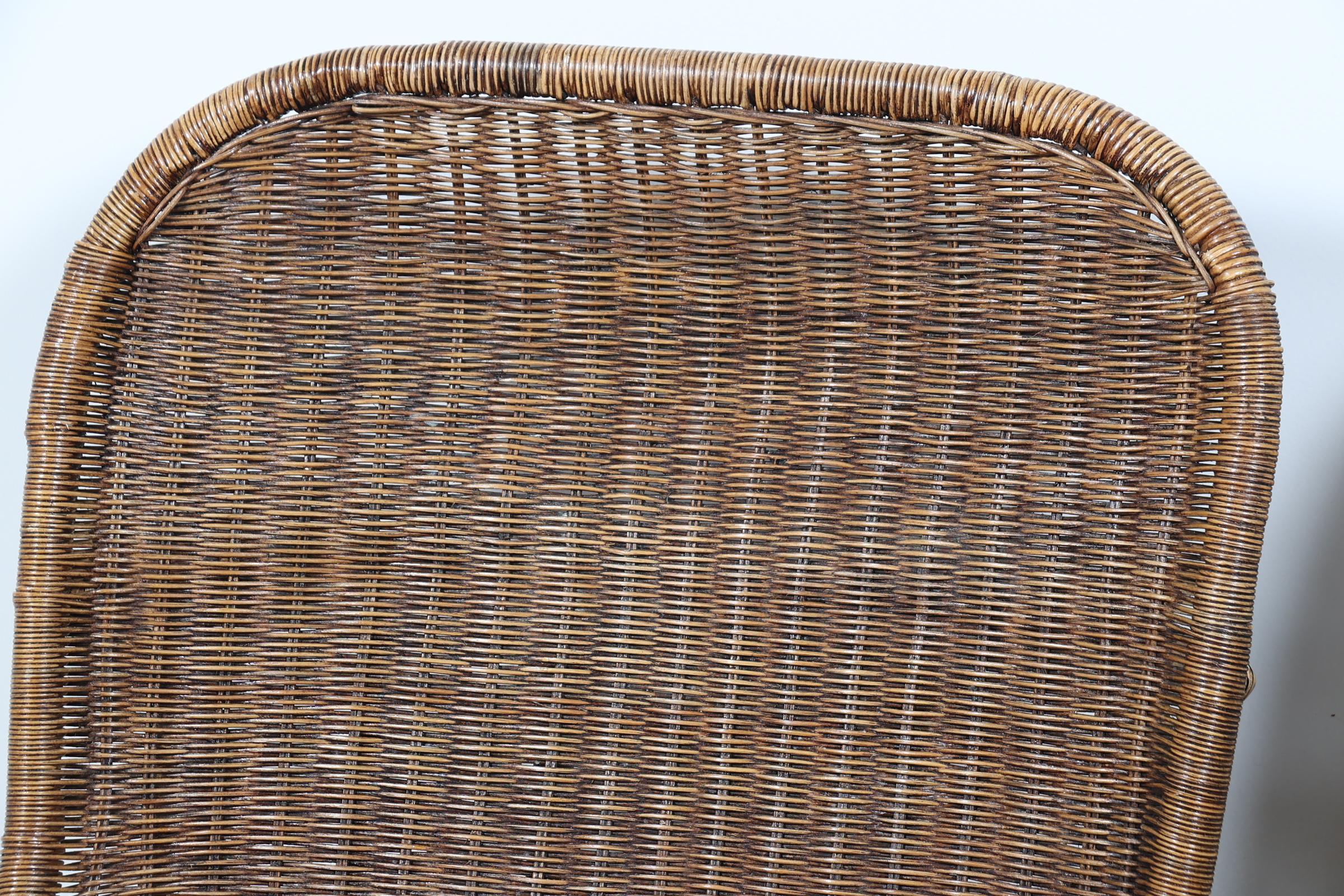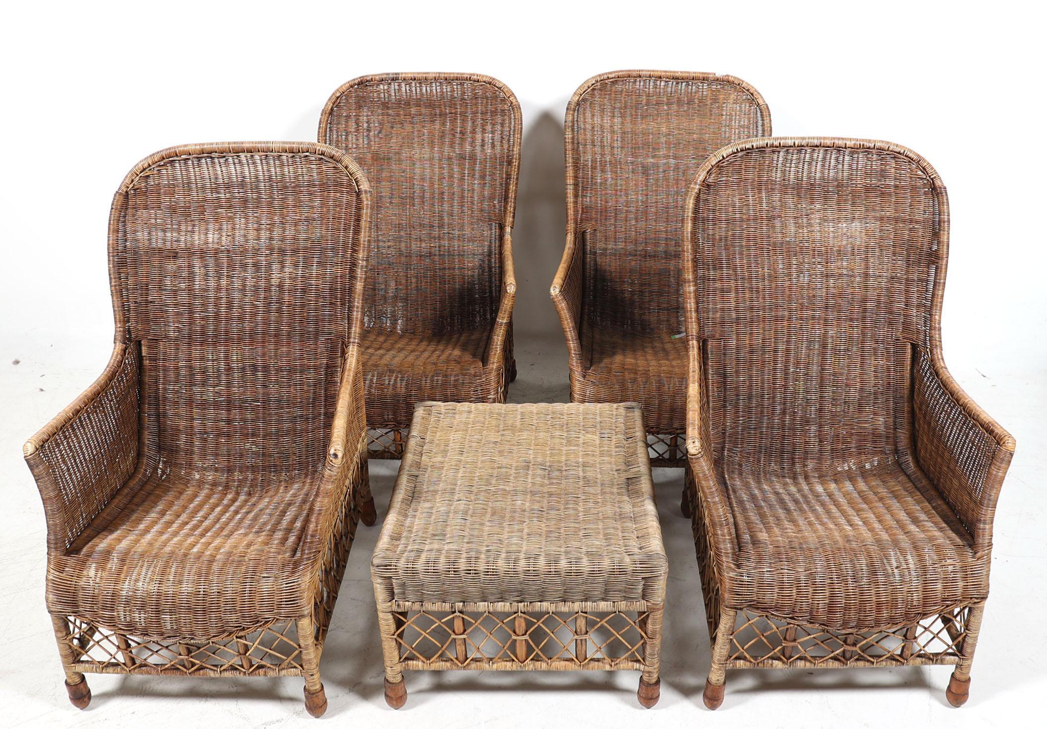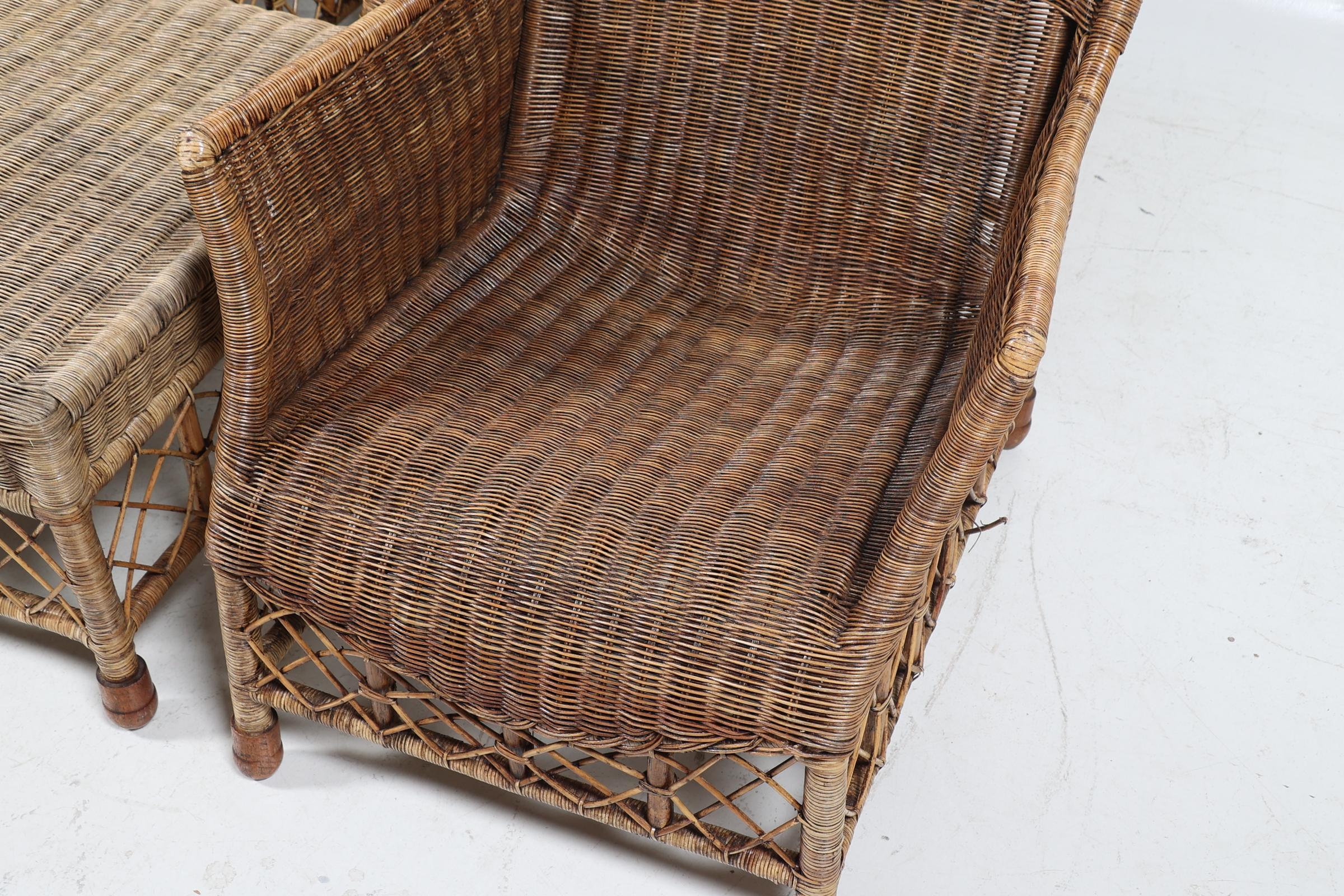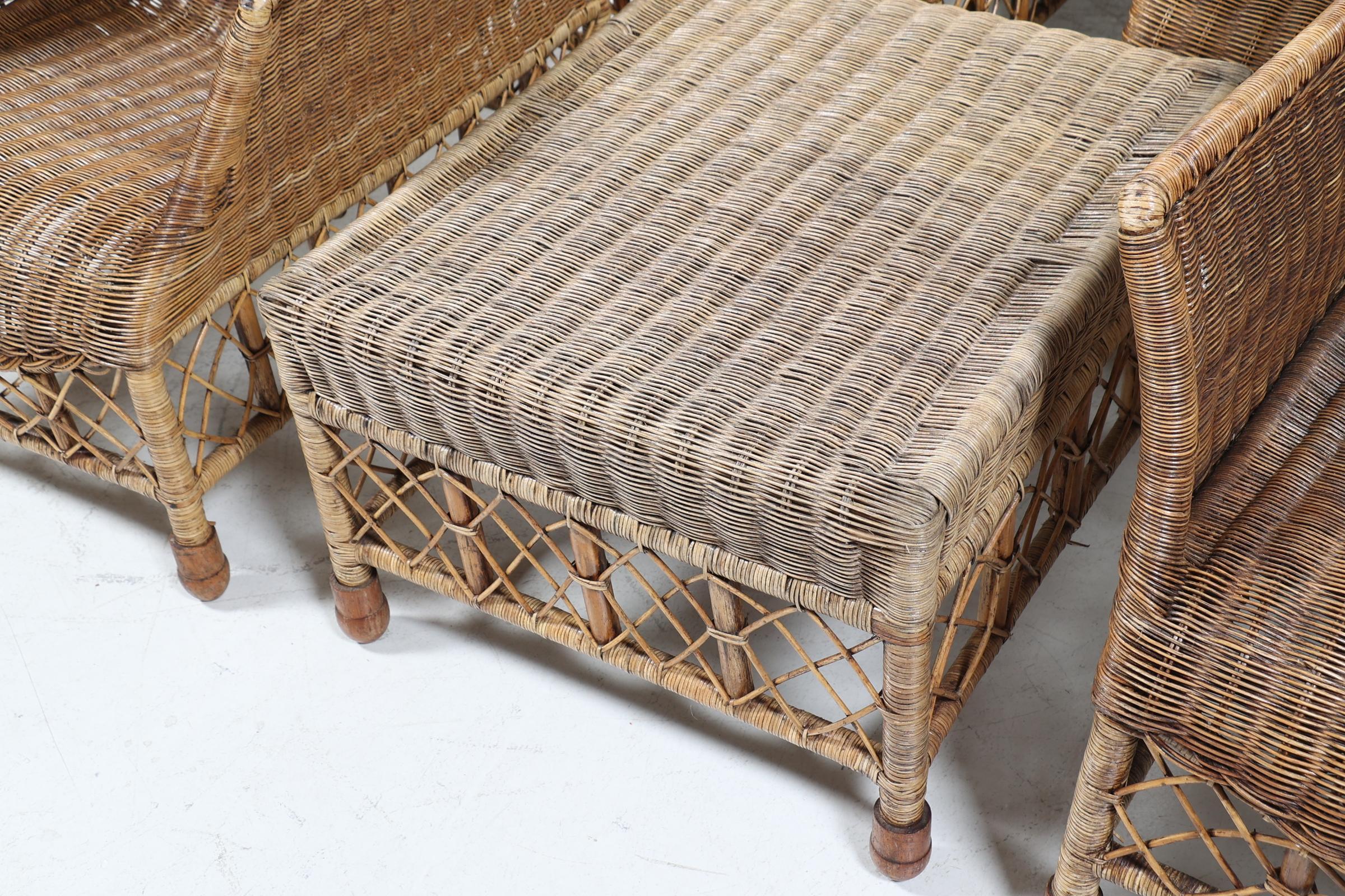Set van 4 rotan stoelen met hocker (achterpoot defect)