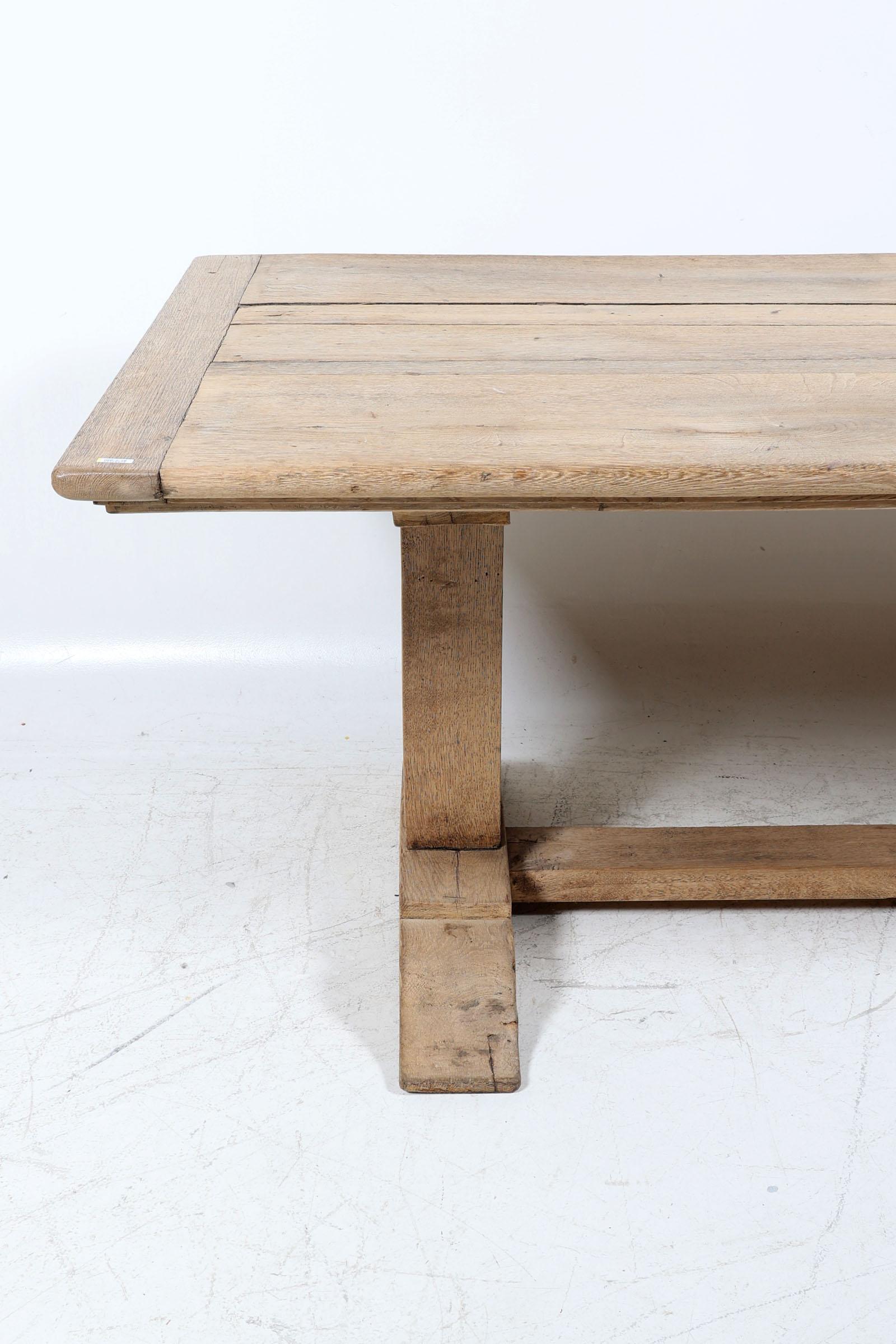 Rustieke eikenhouten eetkamertafel rustend op slofpoten, h.78 x b.209 x d.94 cm.