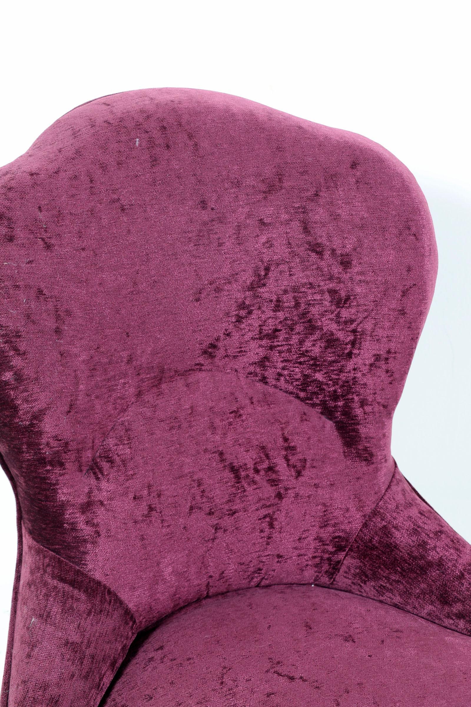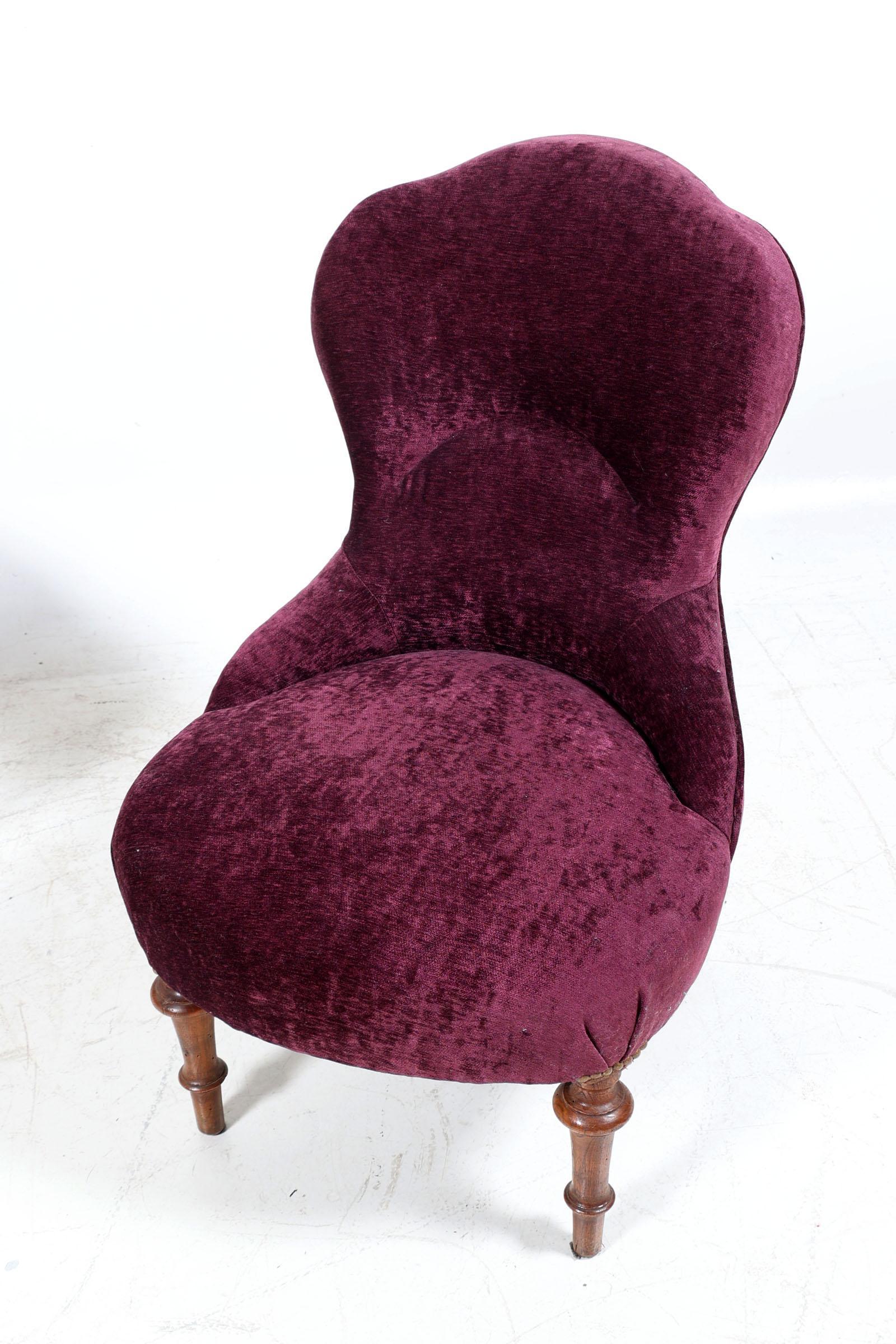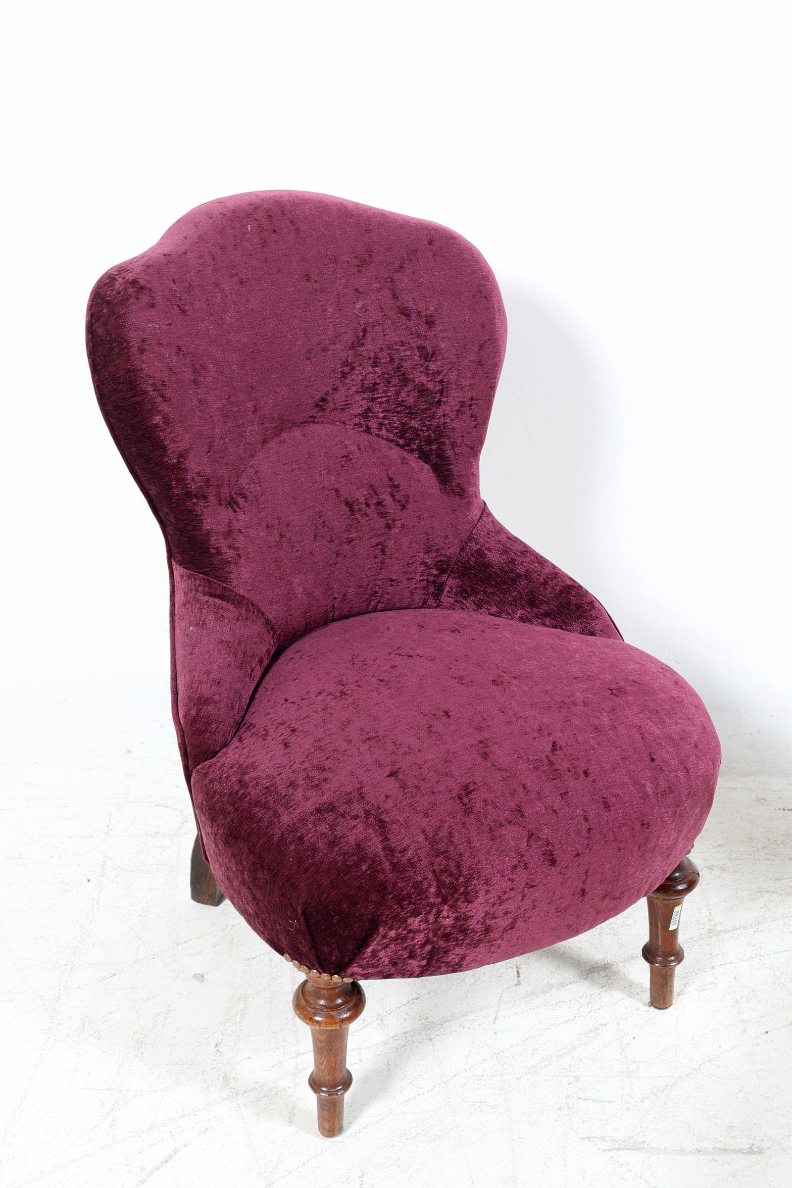 Set van 2 breistoeltjes op notenhouten poten en met paars velours gestoffeerd