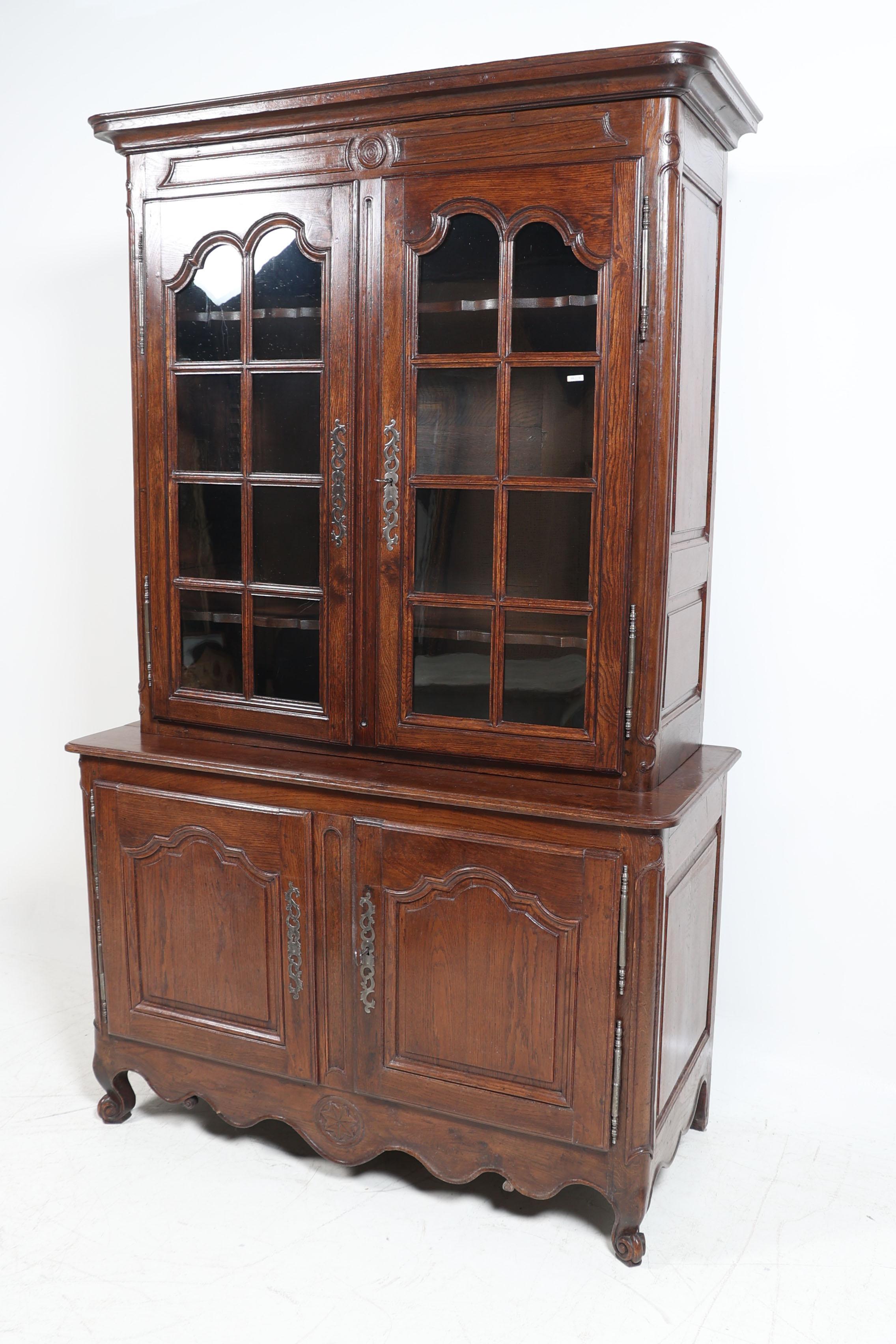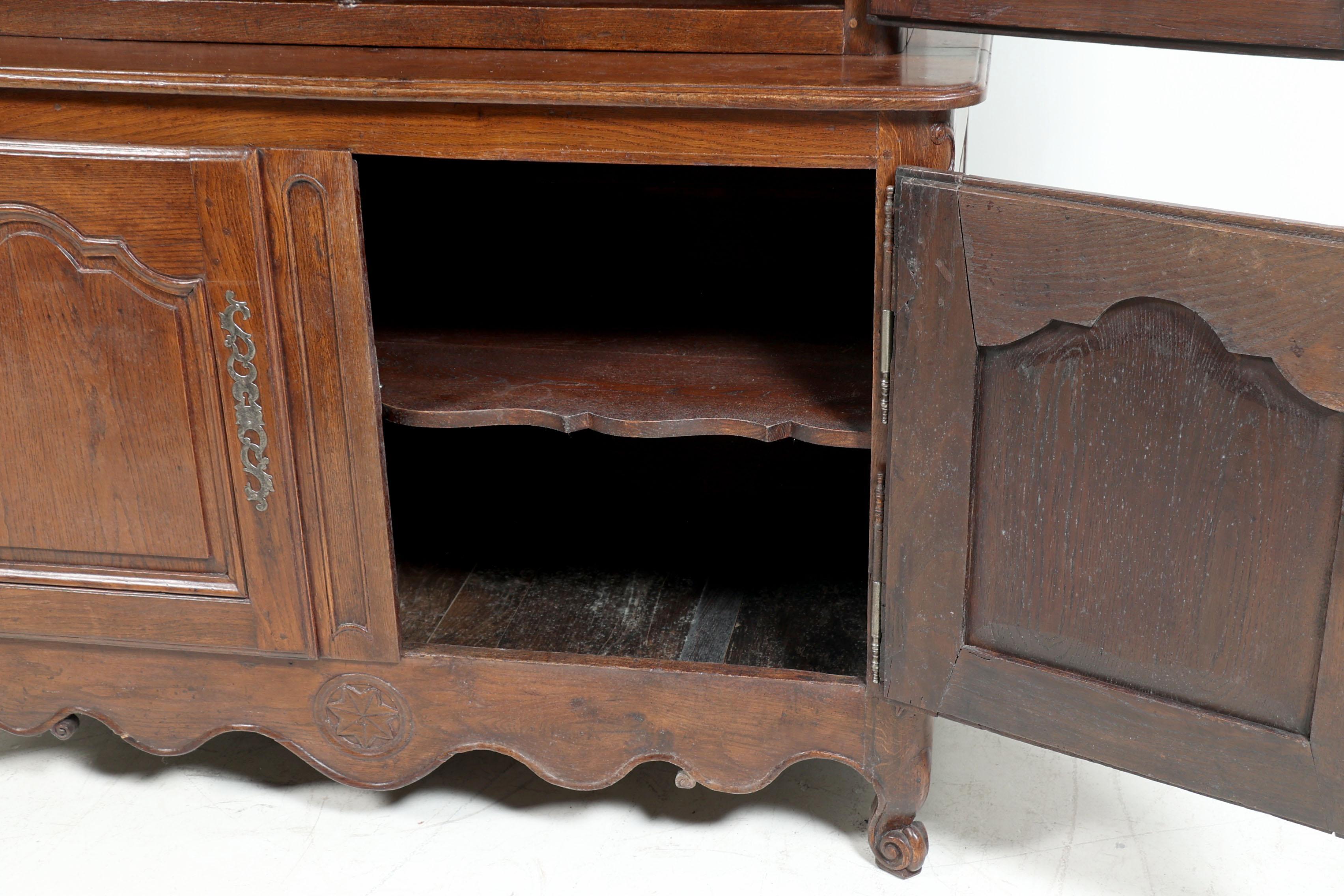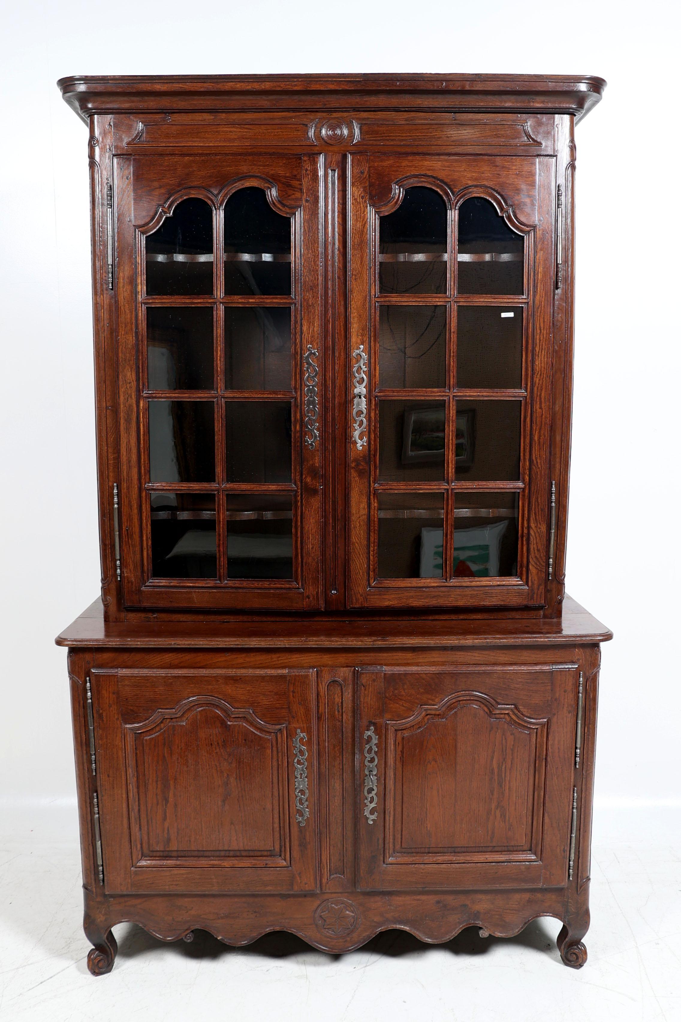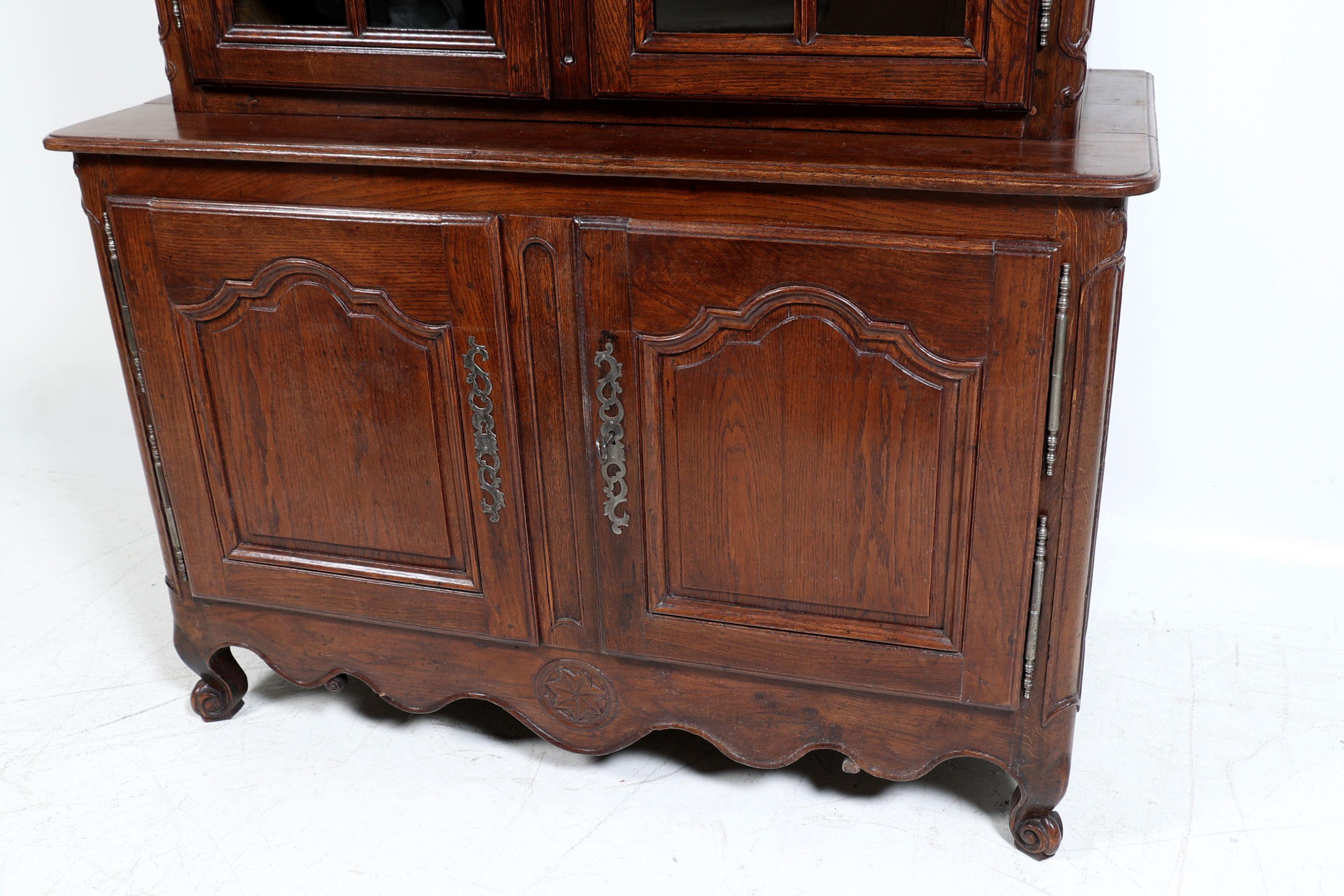 Antieke eikenhouten buffetkast met vitrine opstand, Frankrijk, 18e eeuw, h.240 x b.146 x d.67 cm.
