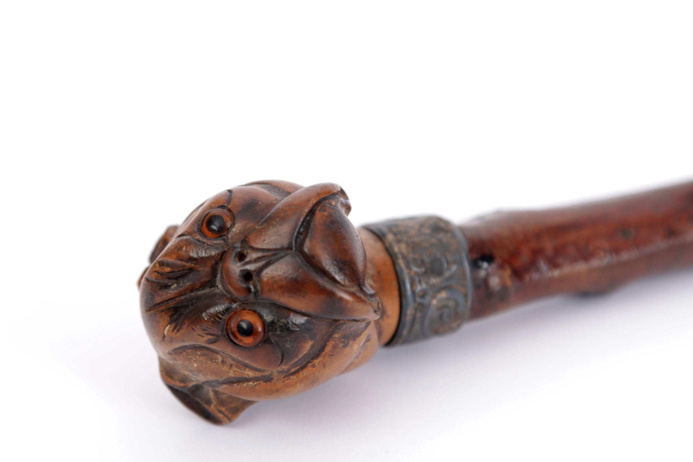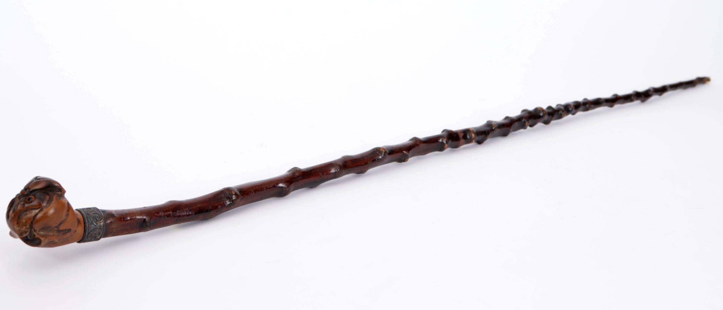 Houten wandelstok met knop i.v.v. een Bulldog