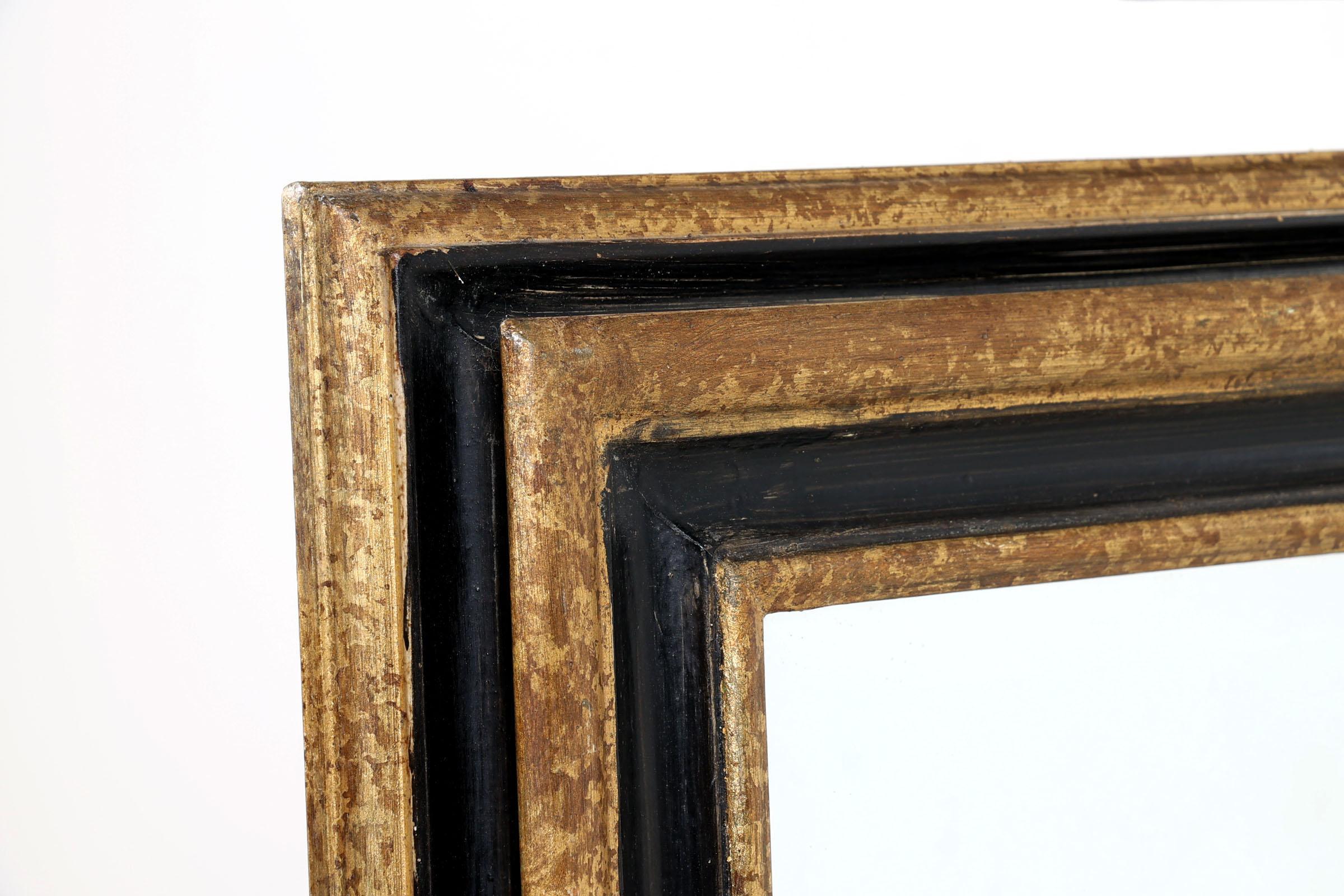Geslepen spiegel in zwart/goudkleurige lijst, 73 x 63 cm.