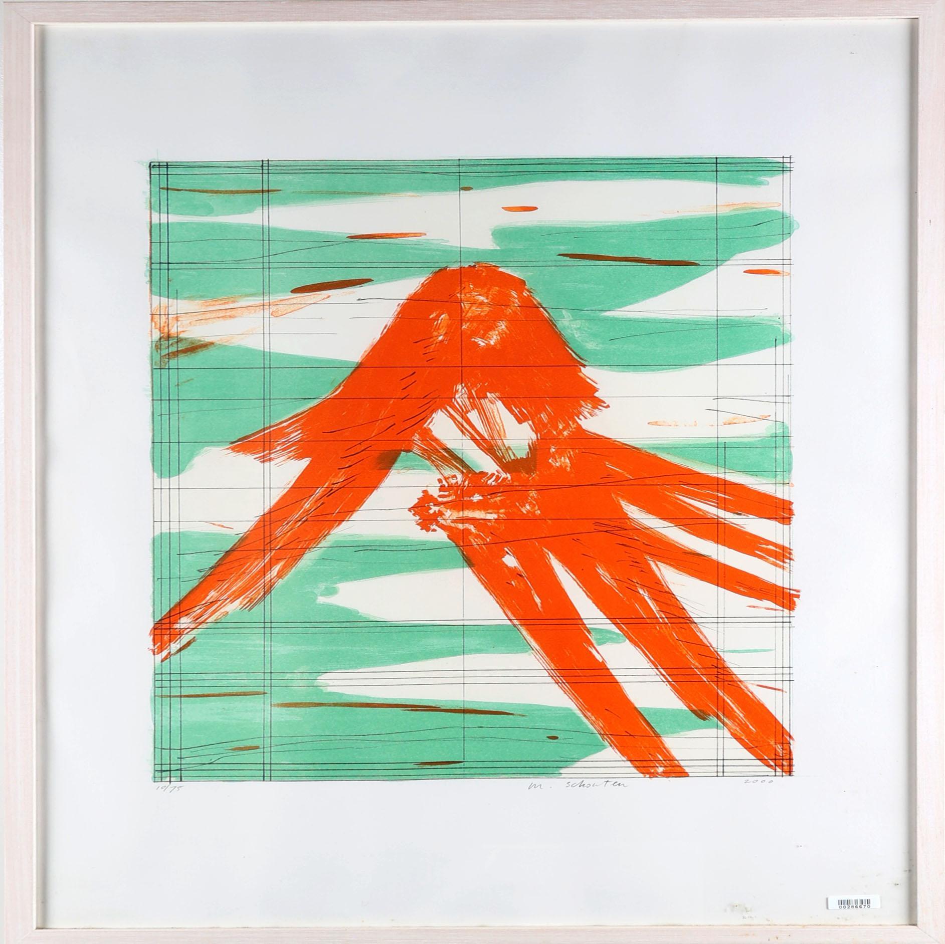 Marien Schouten (1956), abstracte voorstelling, zeefdruk, genummerd 10/75, gedateerd 2000, 53 x 40 cm.