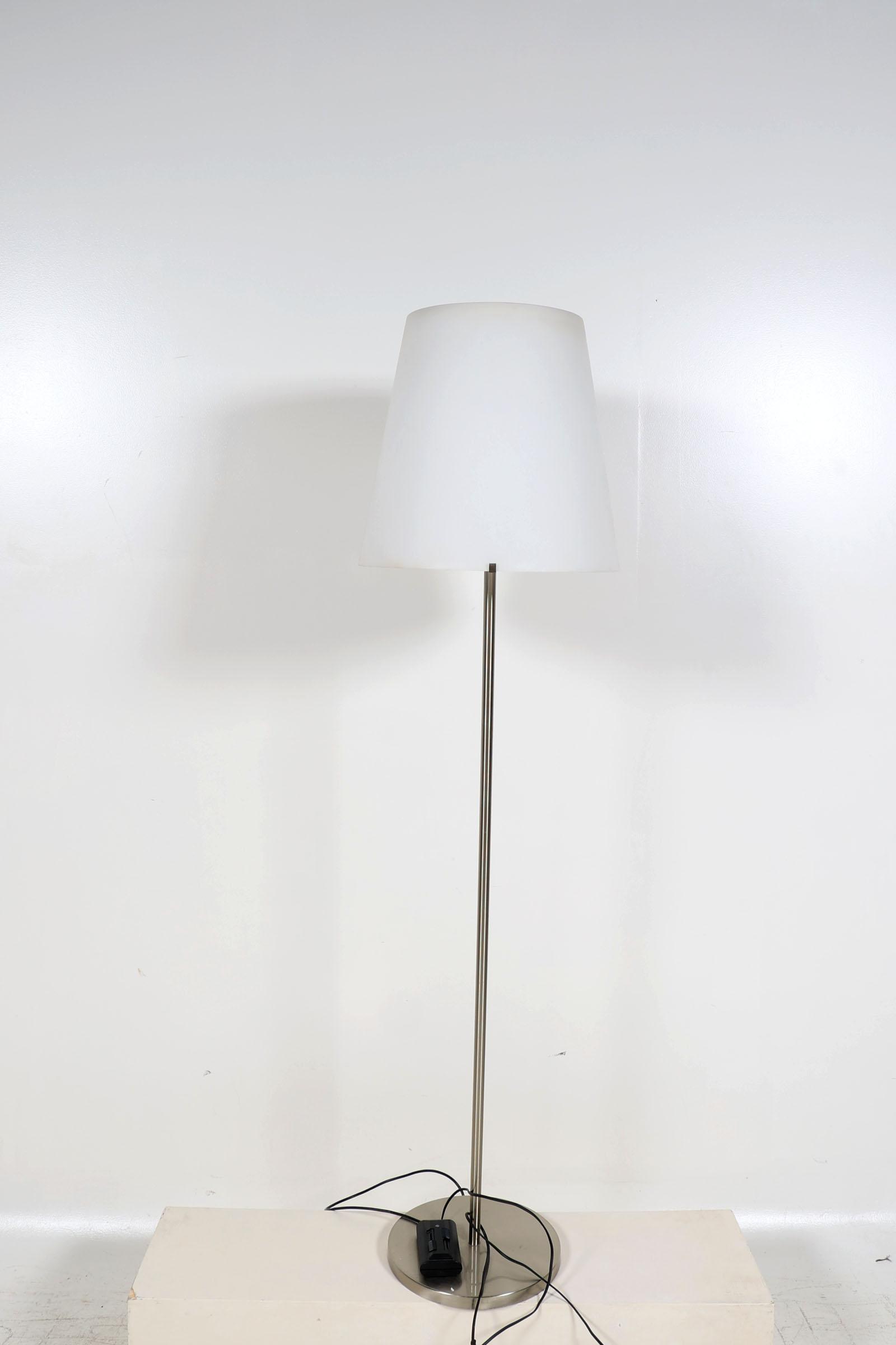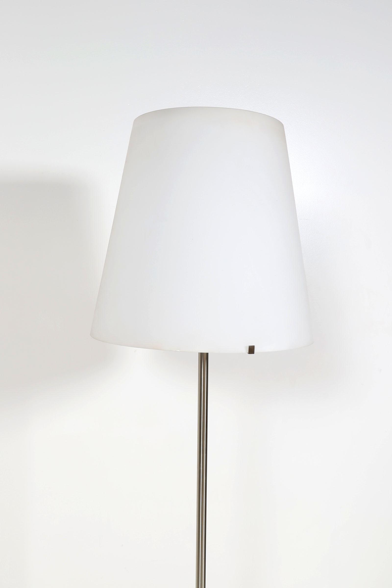 Fontana Arte, design staande schemerlamp met melk glazen kap, h.178 cm.