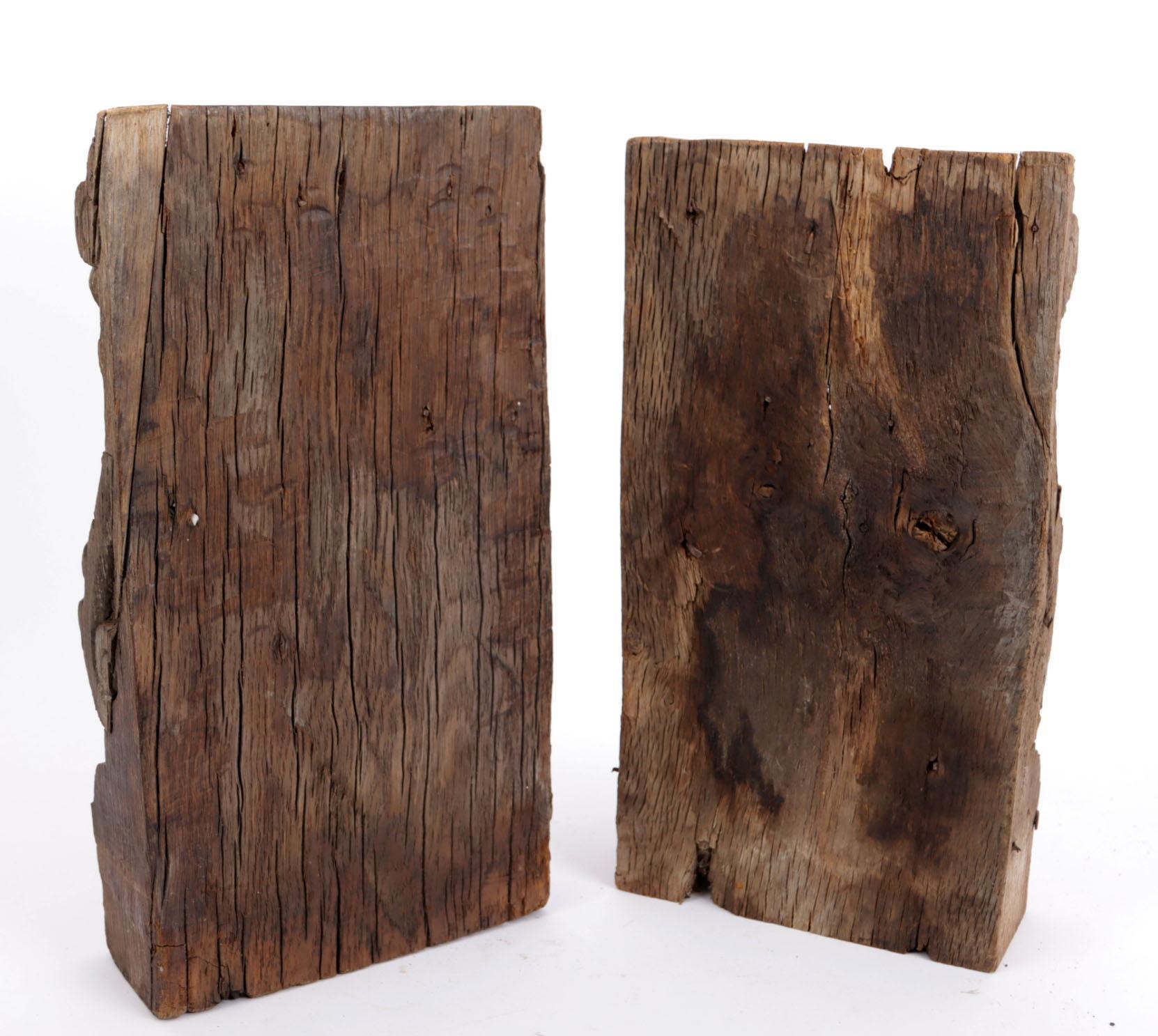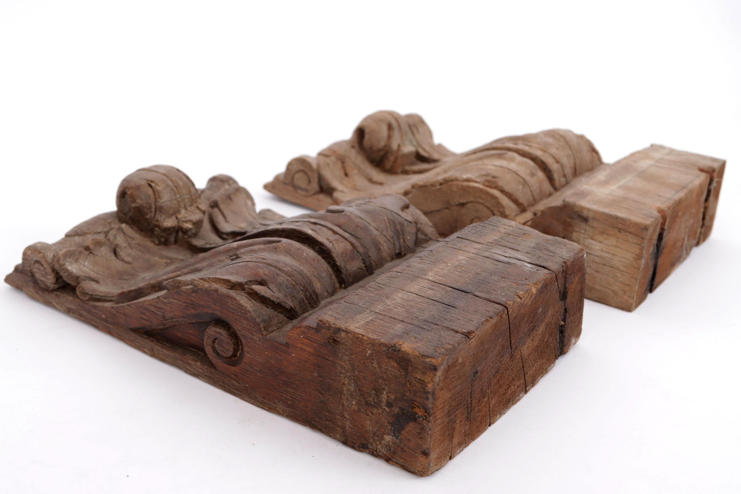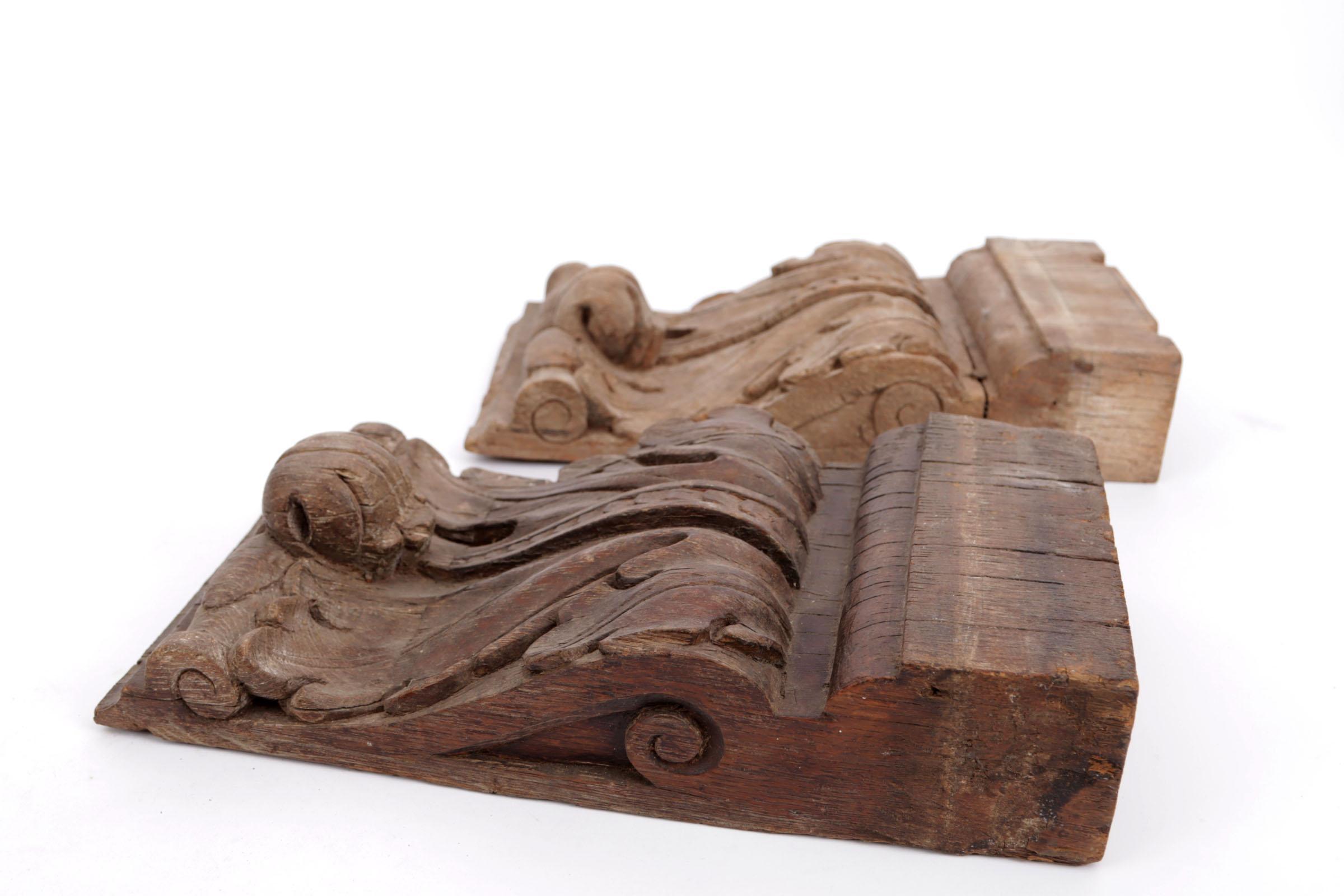 Stel eikenhouten ornamenten met decor van acanthusbladeren