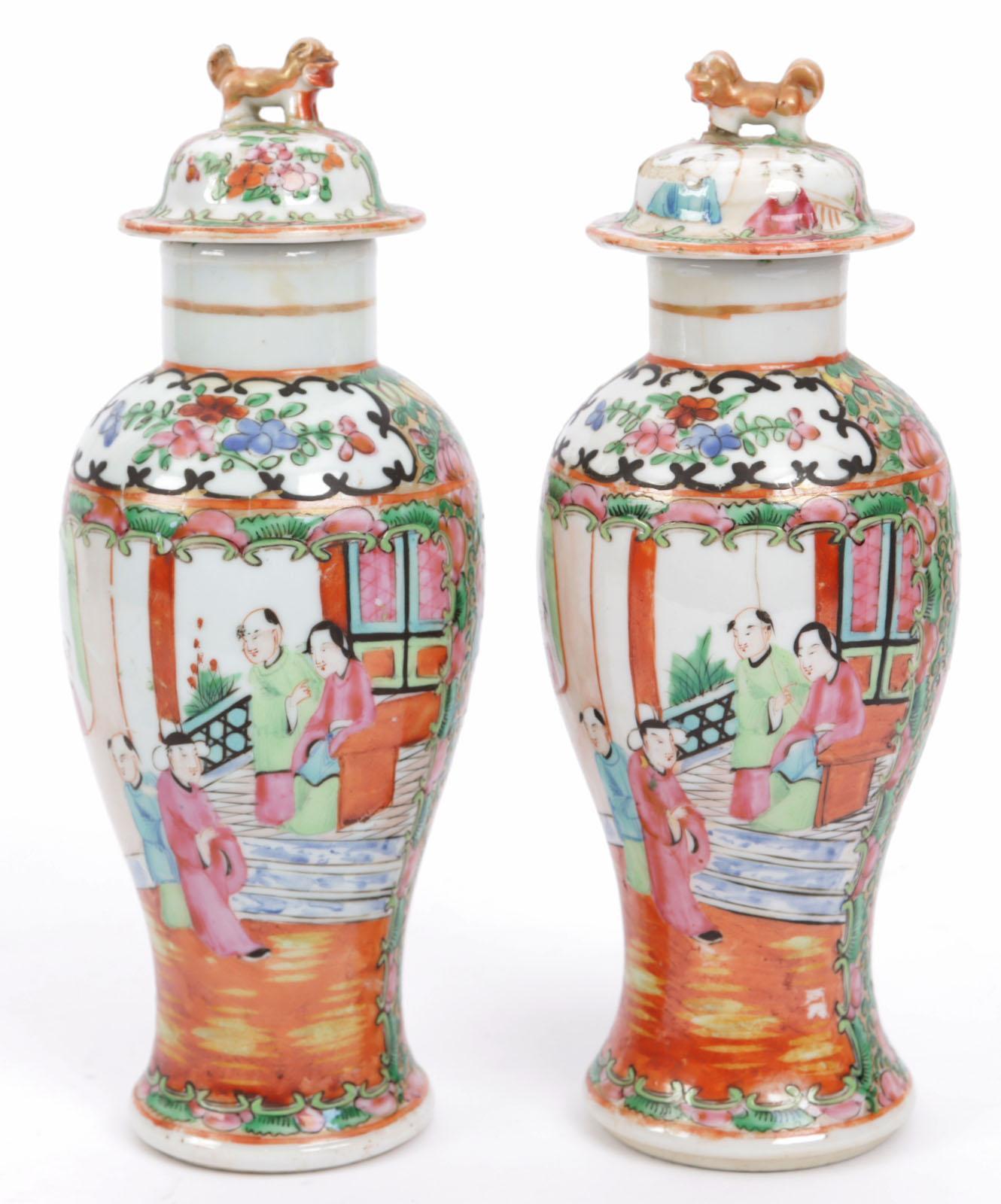 Stel Chinees porseleinen dekselvazen, h.23 cm.