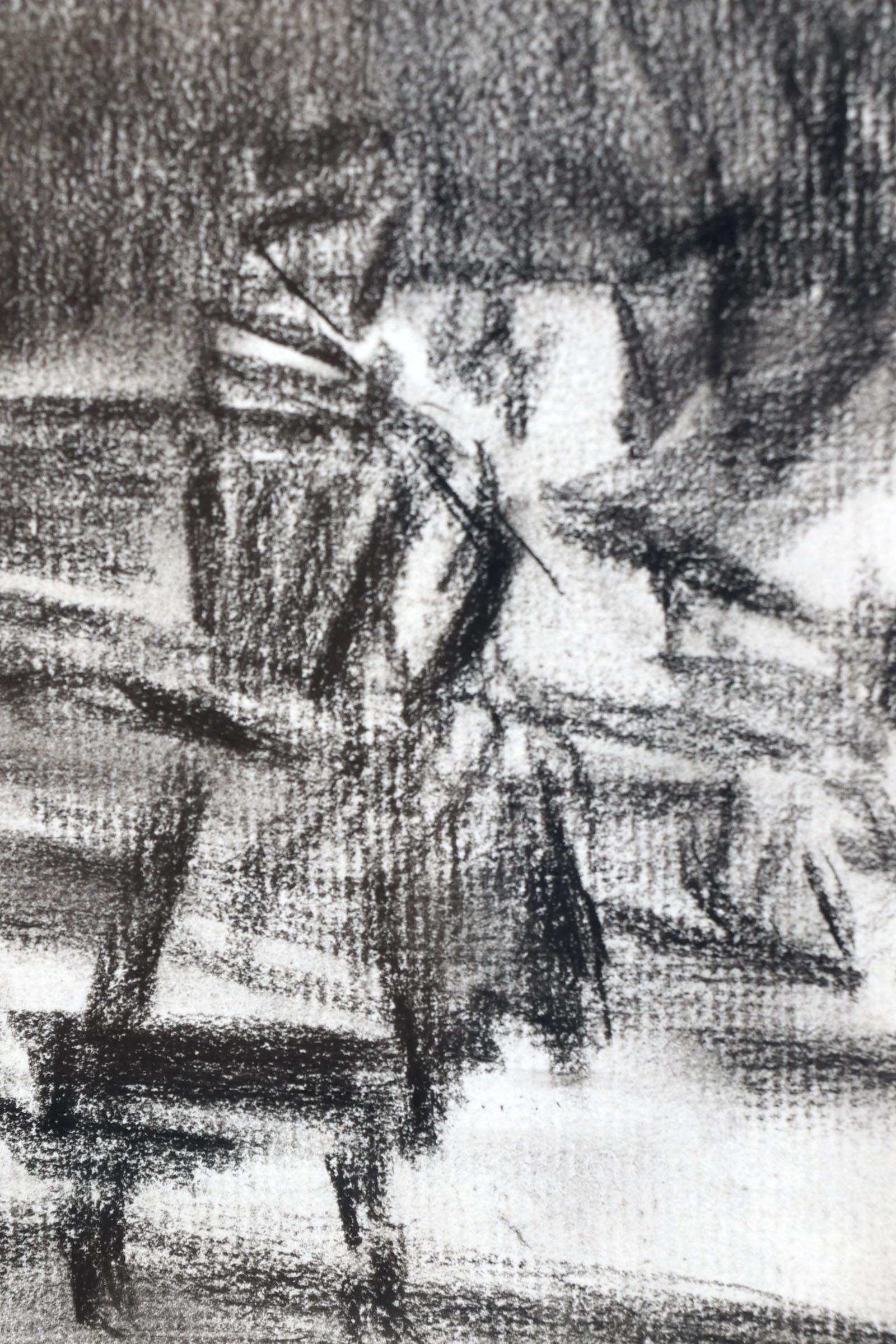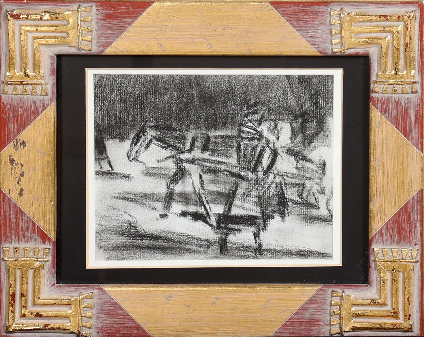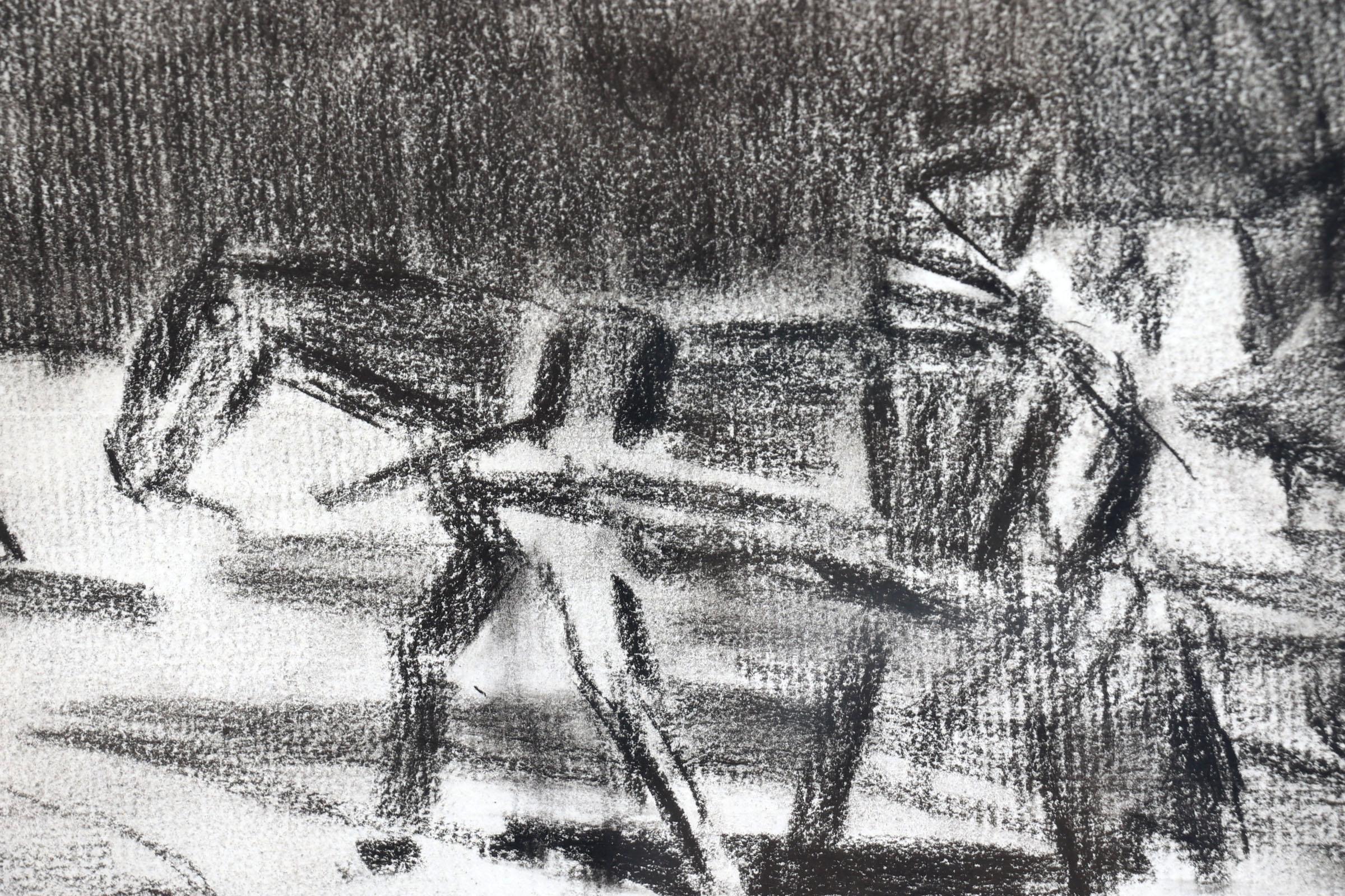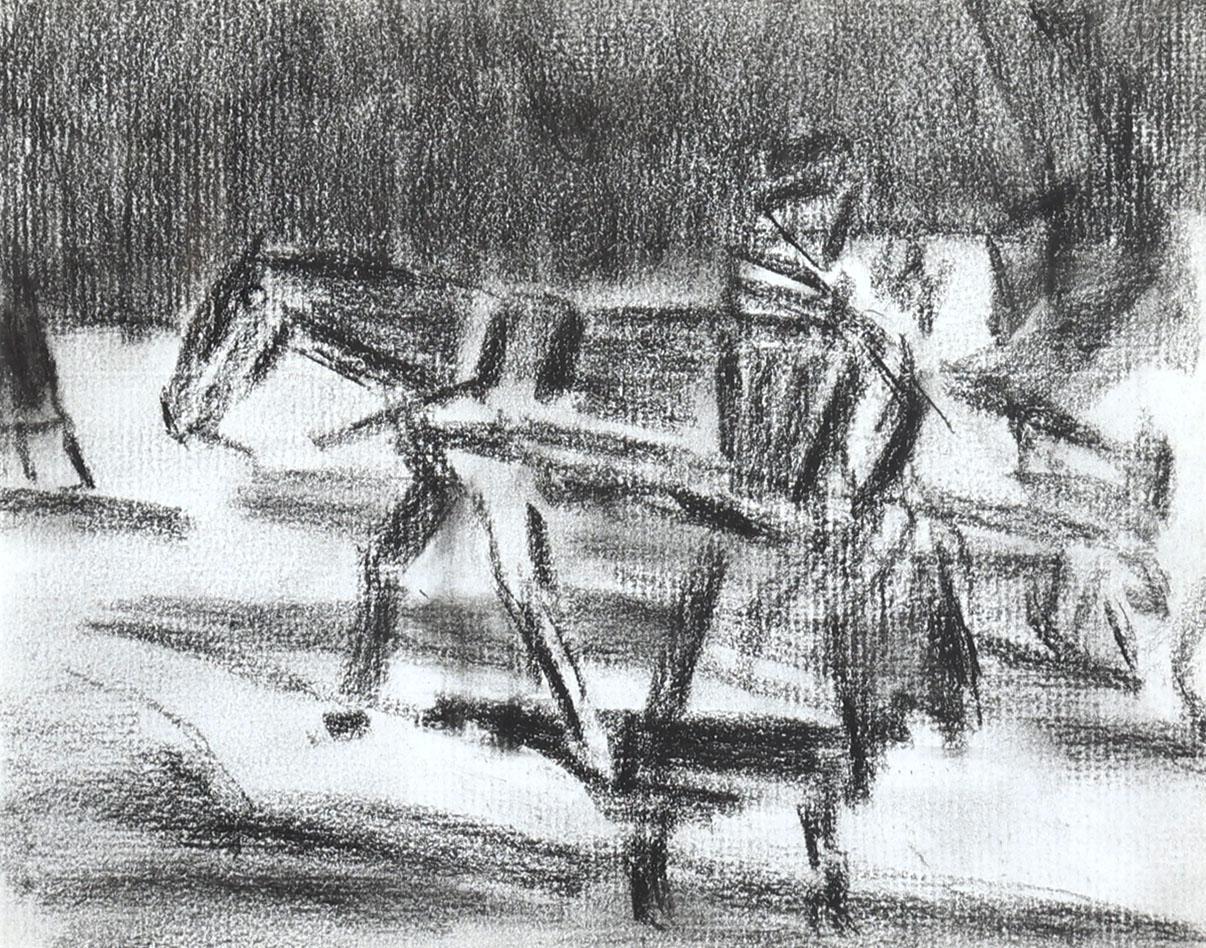 Omgeving Breitner, Paard met wagen in landschap, houtskooltekening, 18 x 14 cm. Provenance: collectie kunsthandel Elisabeth den Bieman de Haas