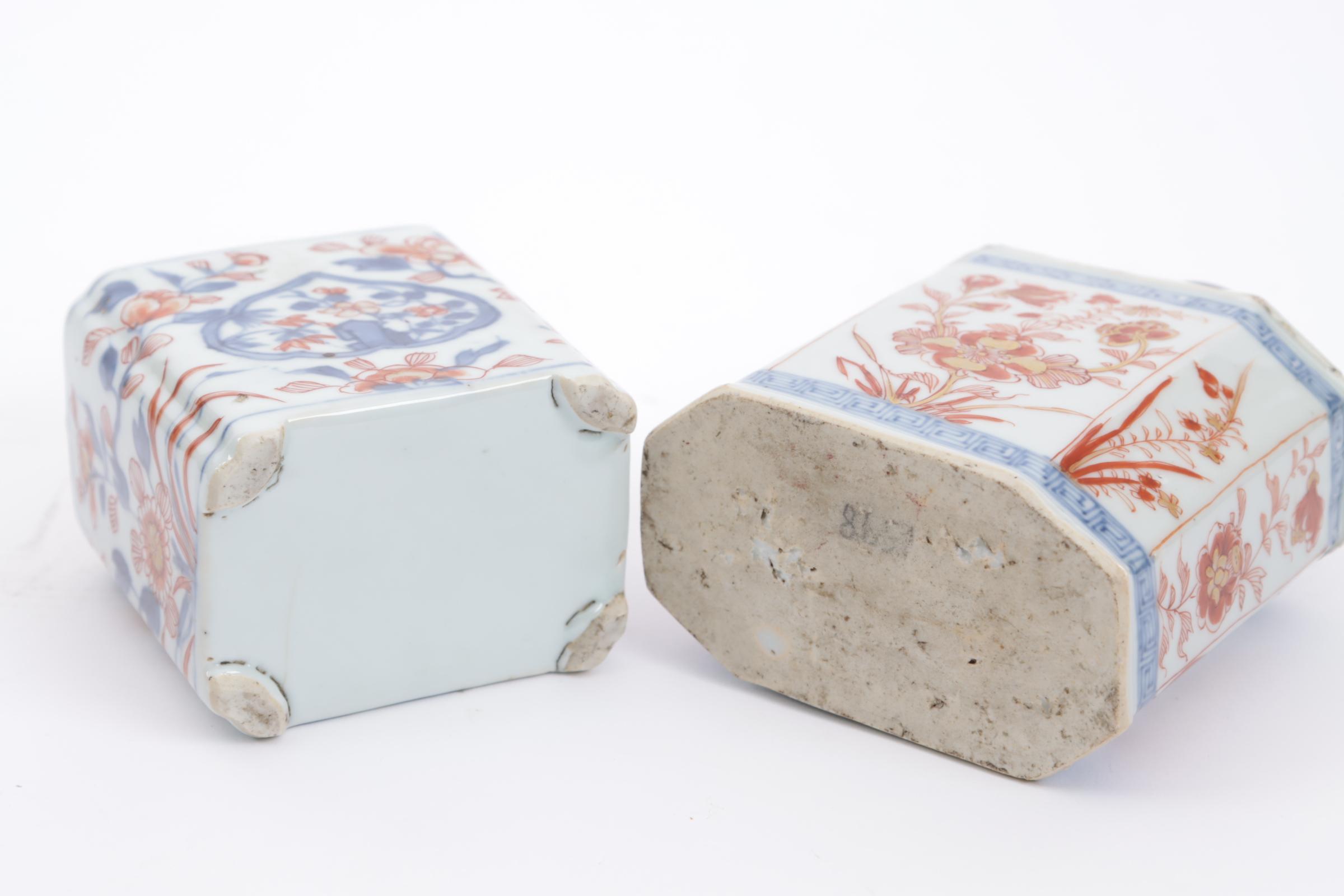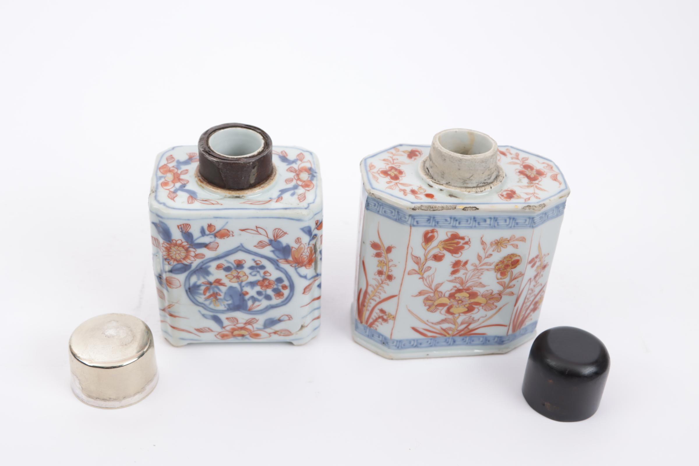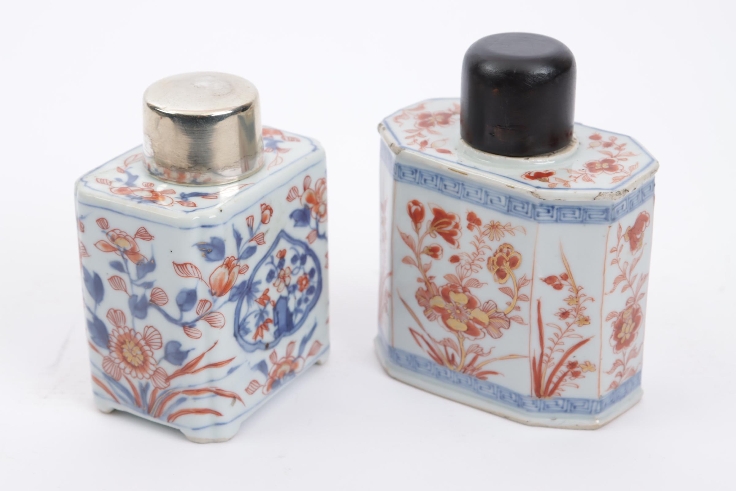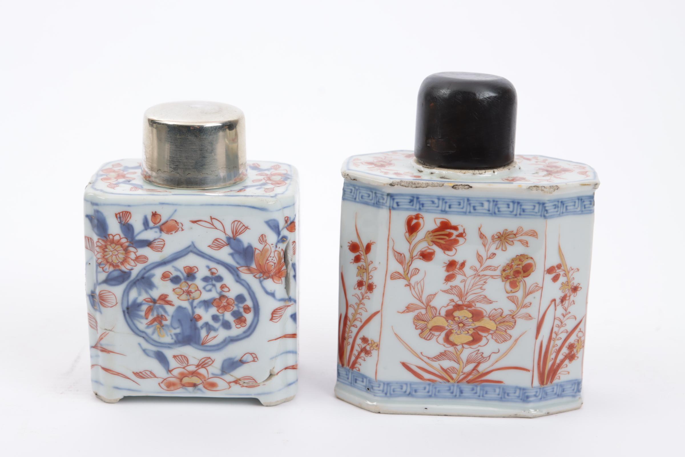 2 Imari porseleinen theebussen met stoppen (beschadigingen)