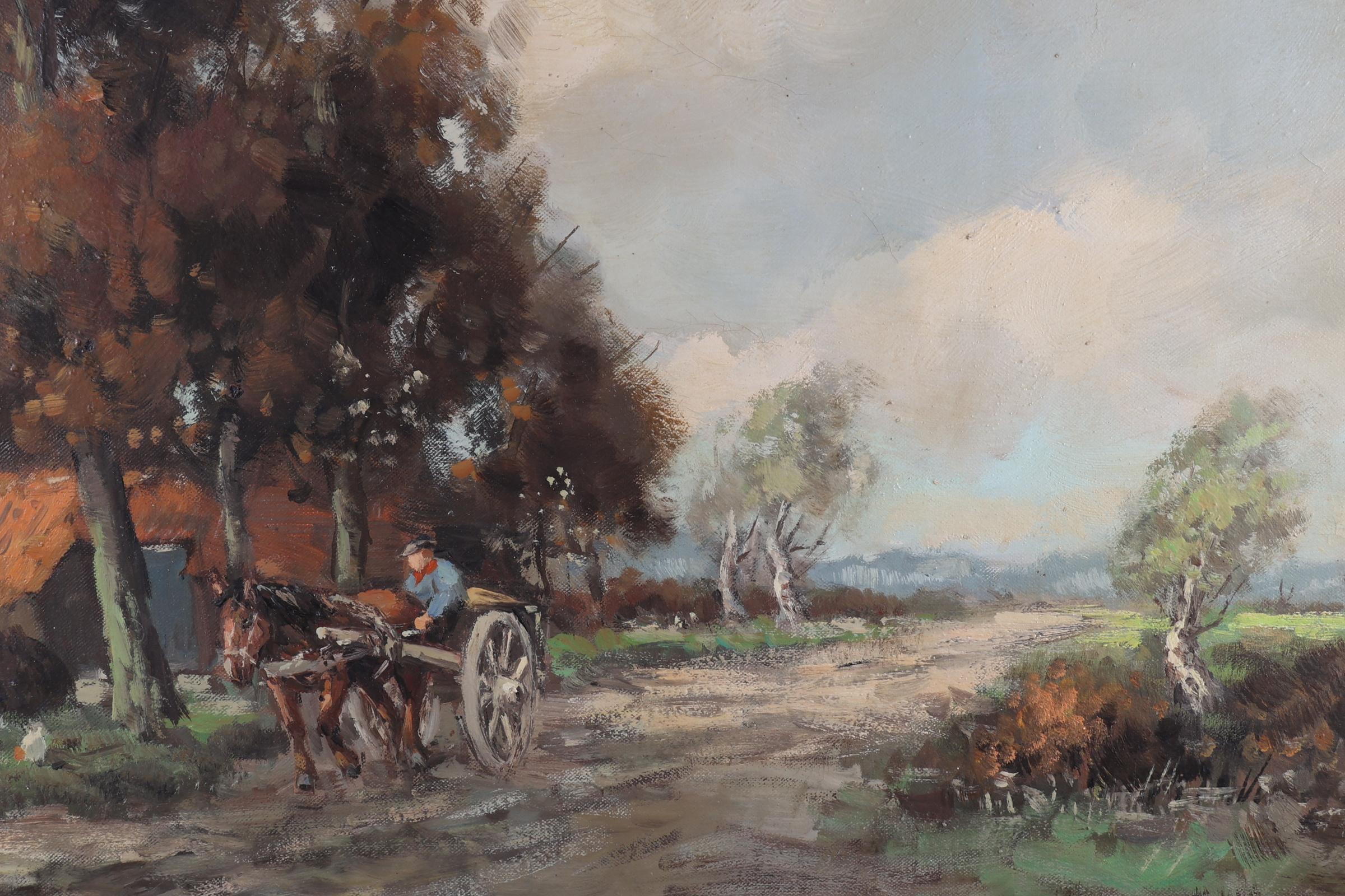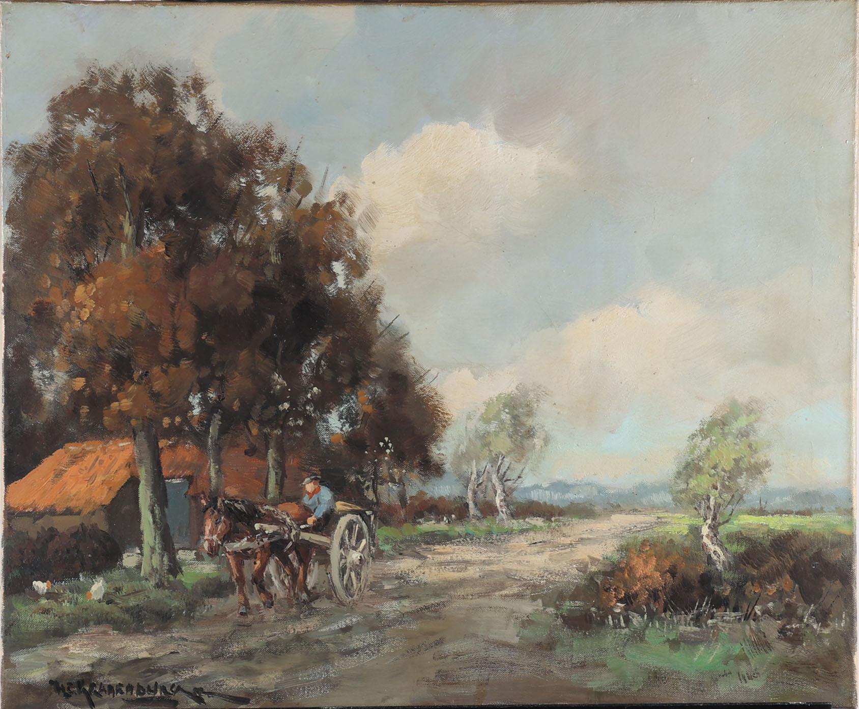Hendrik Cornelis Kranenburg (1917-1987), Man met paard en wagen langs een boerderij, olieverf op doek, 60 x 50 cm. (niet ingelijst)