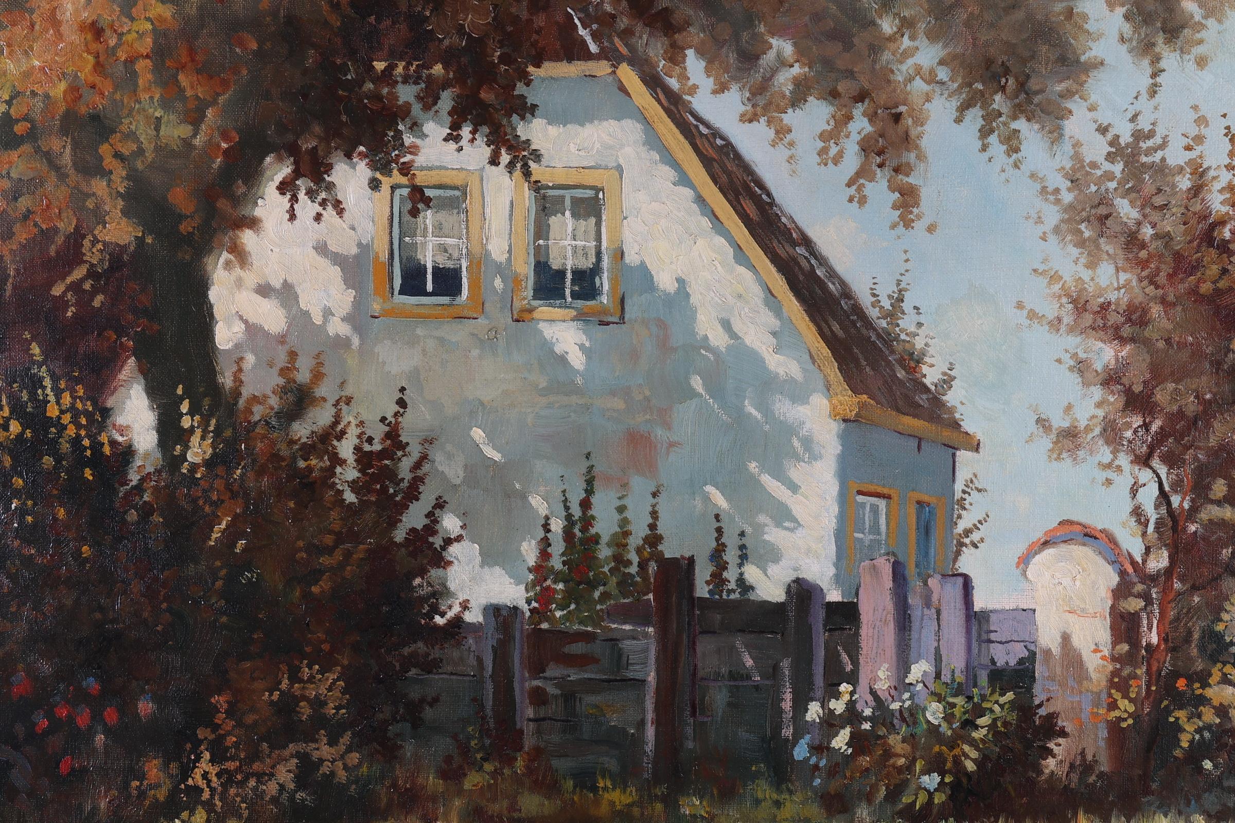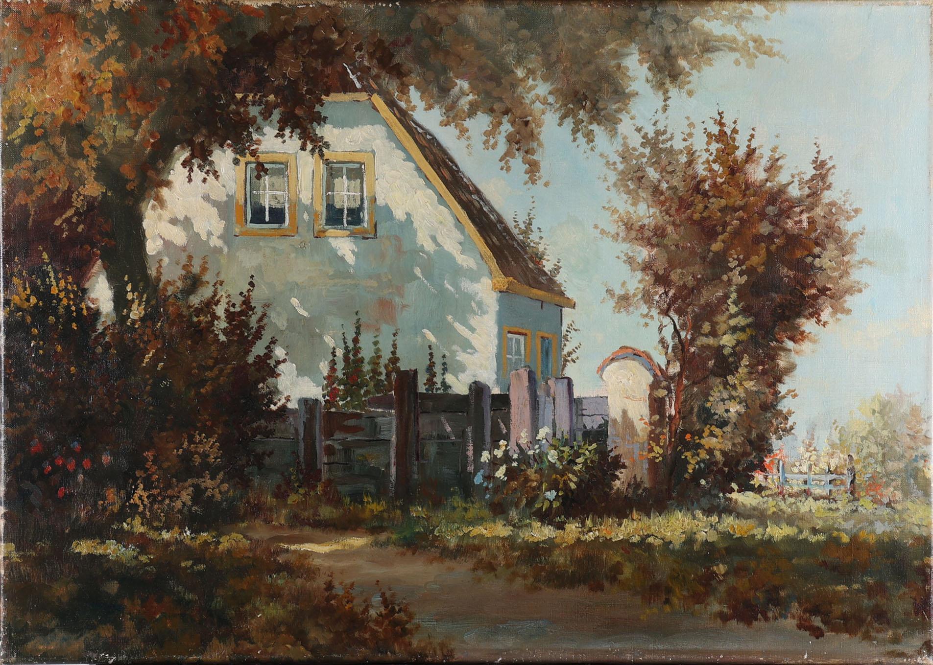Onb. meester, Zicht op een boerderij, olieverf op doek, 70 x 50 cm. (niet ingelijst)