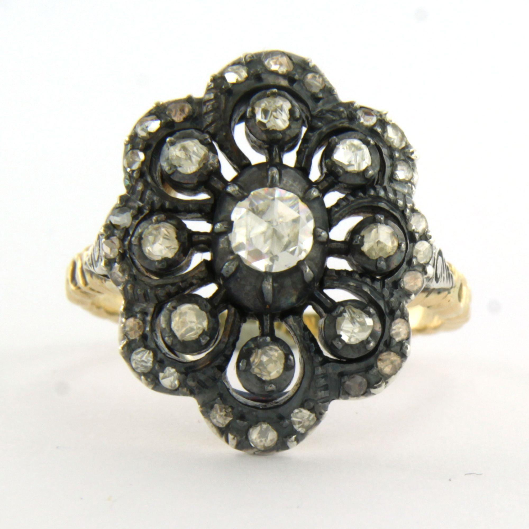14 Kt. geelgouden met zilveren ring bezet met roos diamant tot. 0.50ct - ringmaat 19(59)