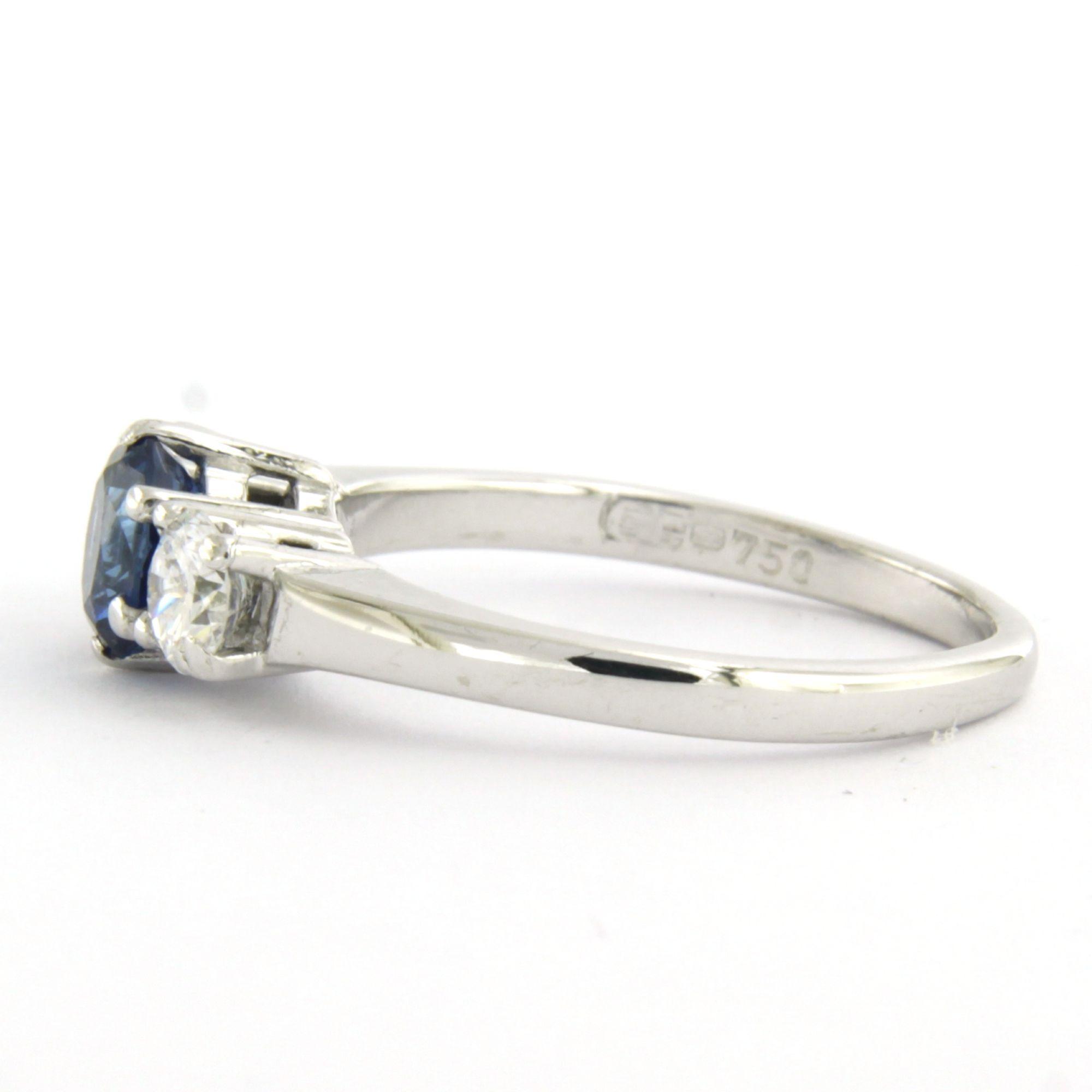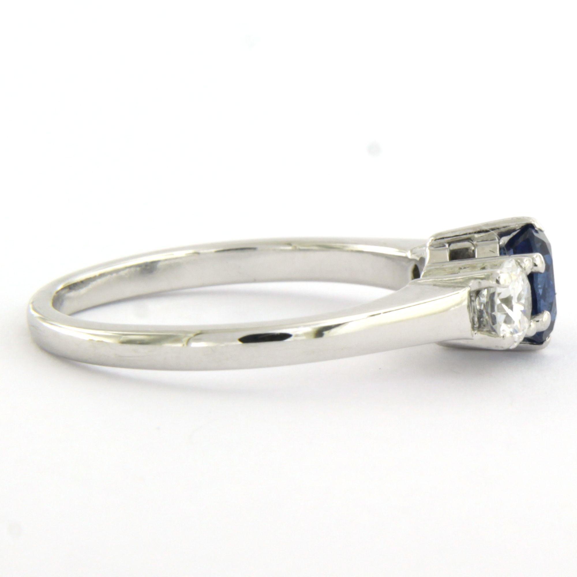 18 Kt. witgouden ring bezet met saffier tot. 0.60ct en briljant geslepen diamant tot. 0.60ct - ringmaat 17.25(54)