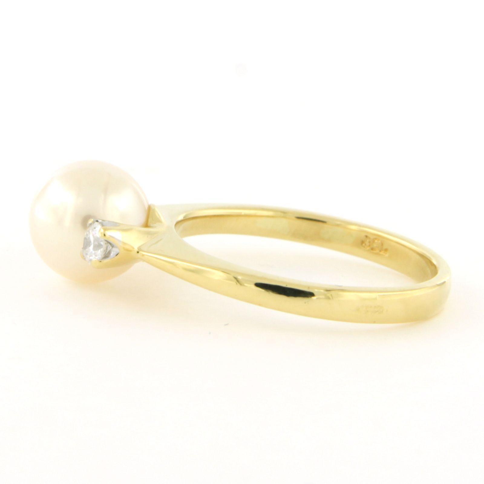 18 Kt. geelgouden ring bezet met parel en briljant geslepen diamant tot. 0.20ct 17.75(56)