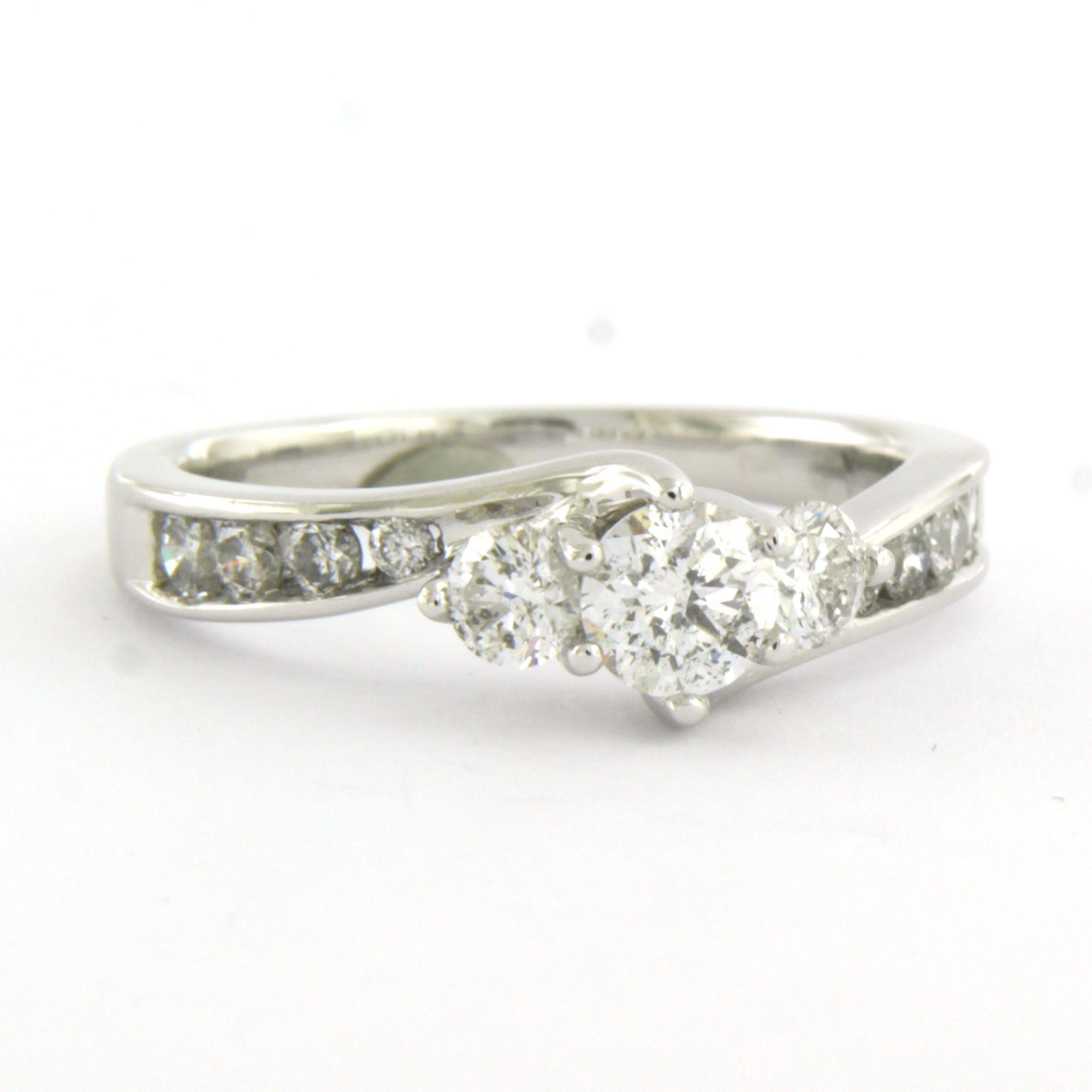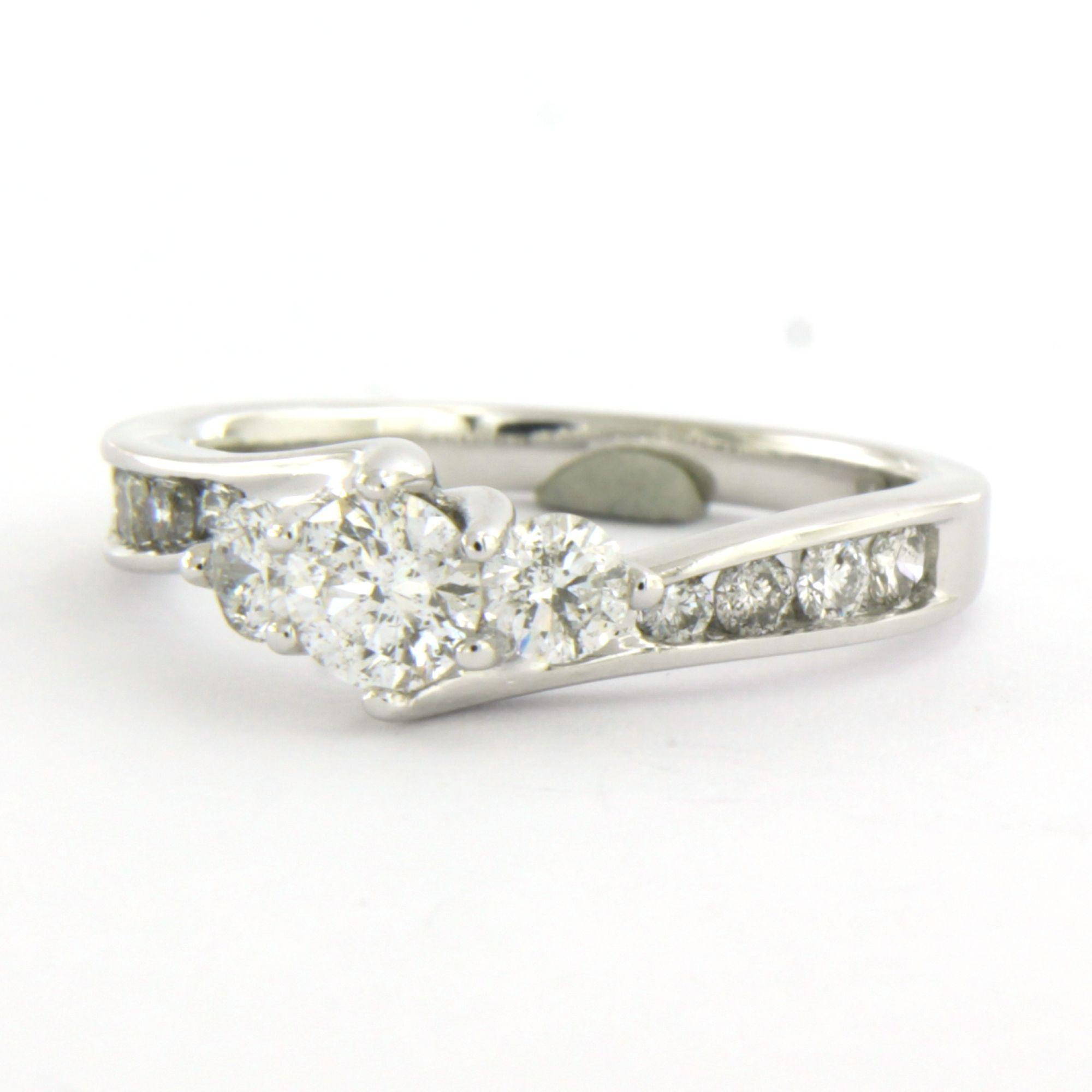 14 Kt. witgouden ring bezet met briljant geslepen diamant tot. 1.00ct - ringmaat 17.25(54)