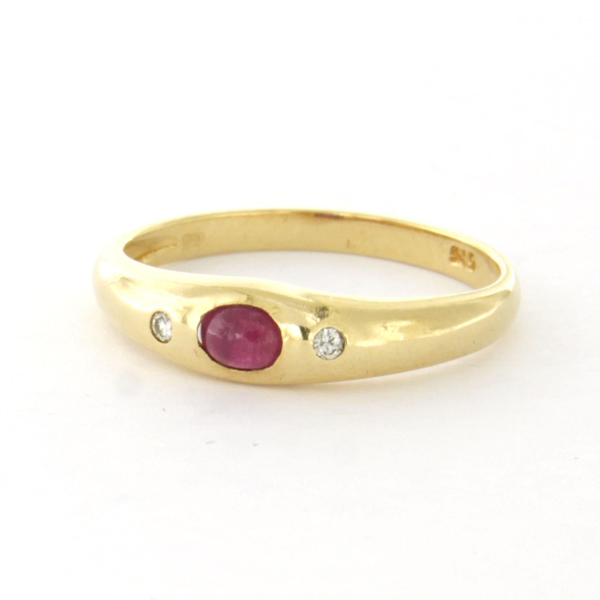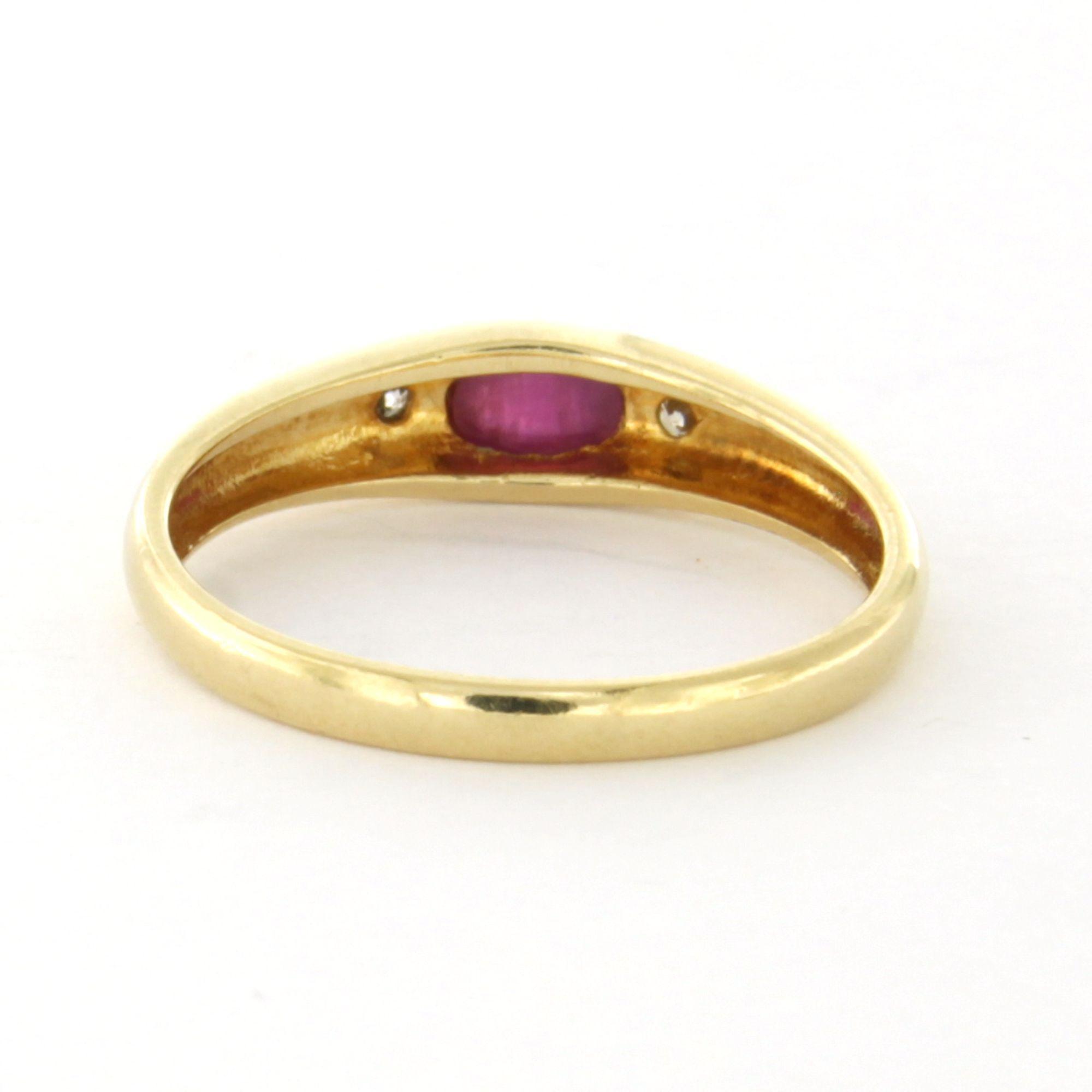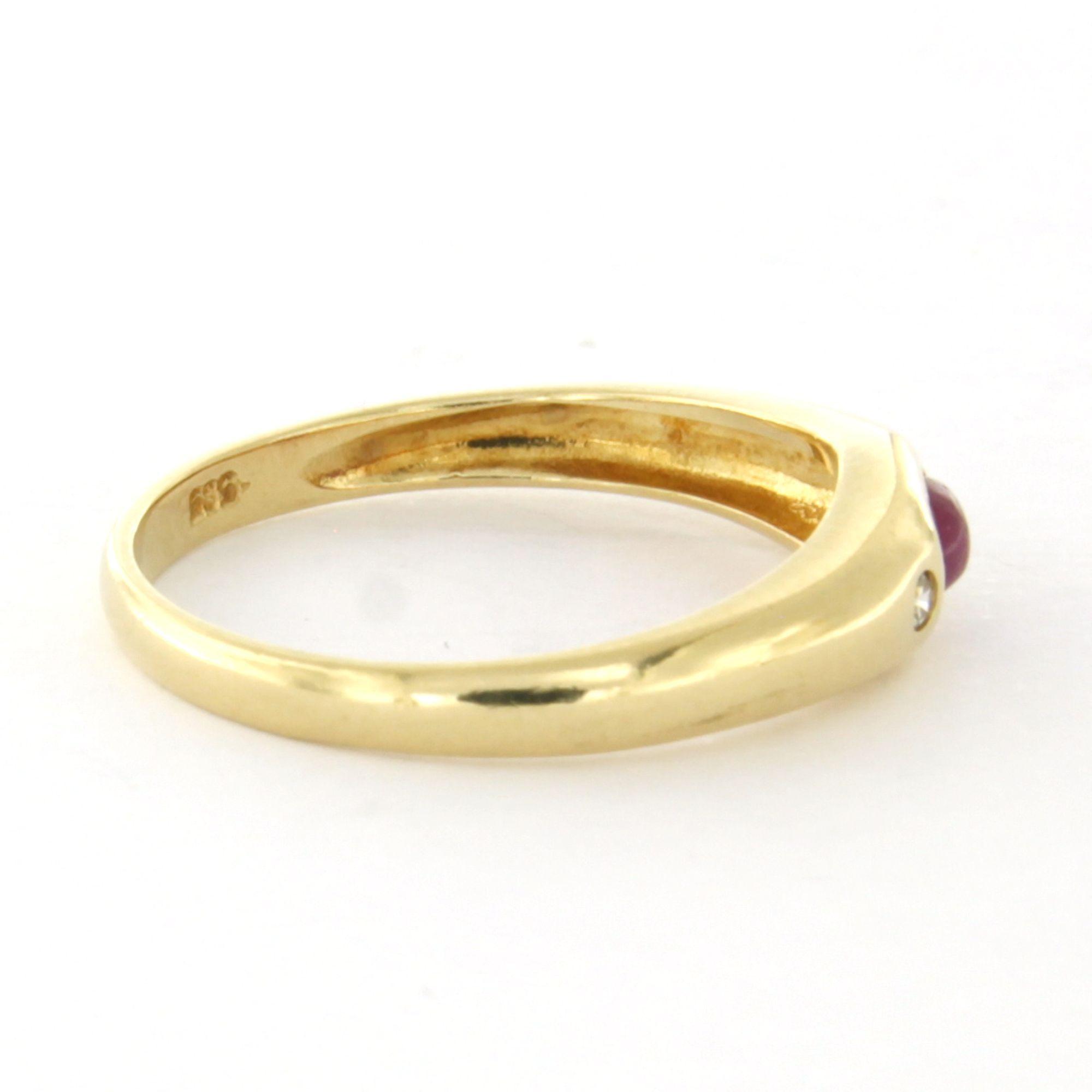 14 Kt. geelgouden ring bezet met robijn en briljant geslepen diamant tot.0.02ct - ringmaat 16.5(52)