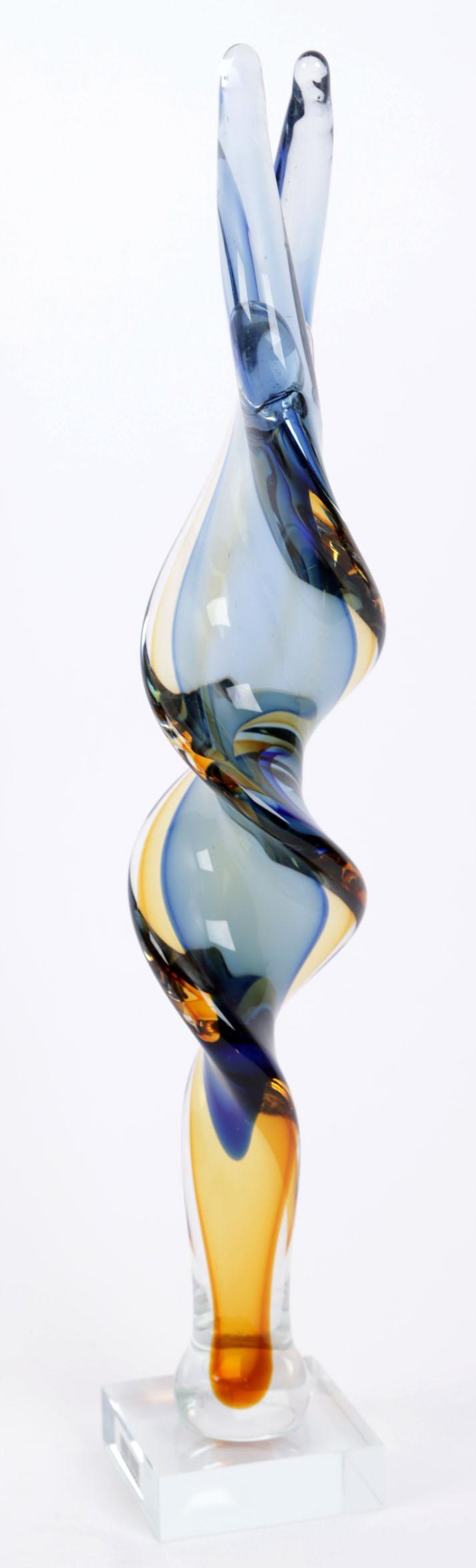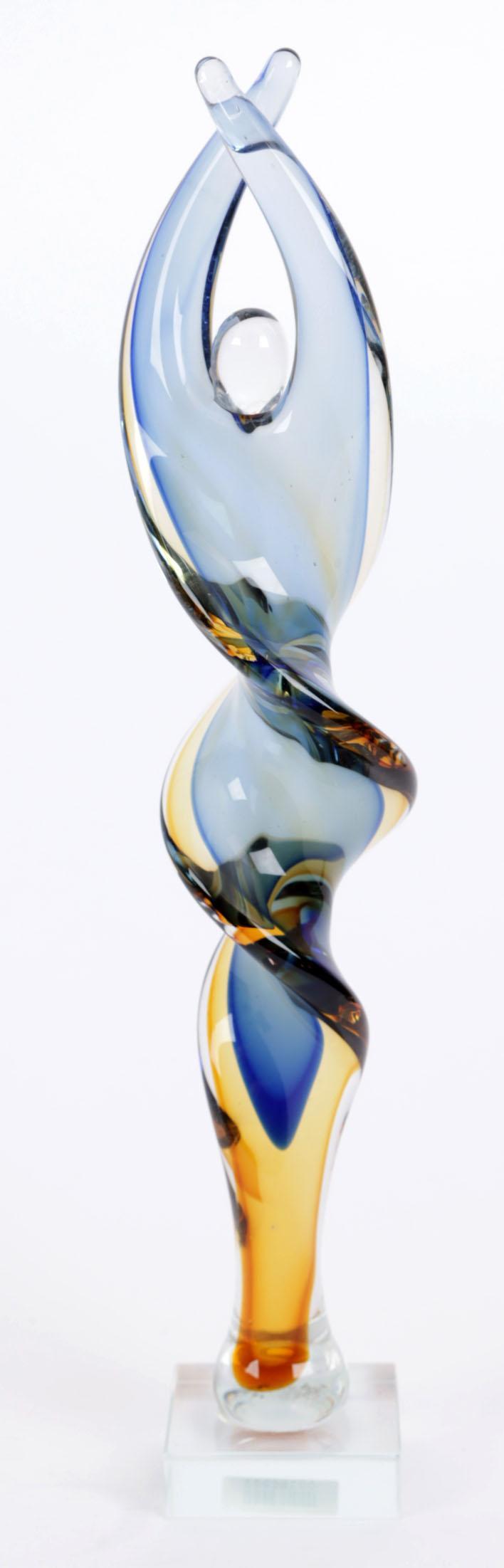 Glazen sculptuur van een ballerian, h.39 cm.