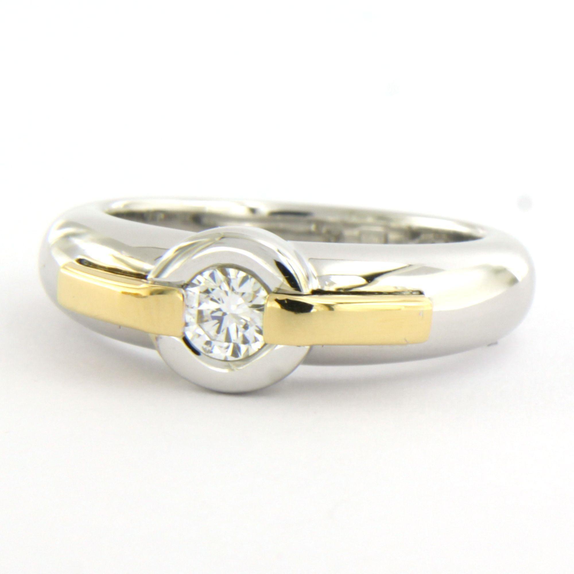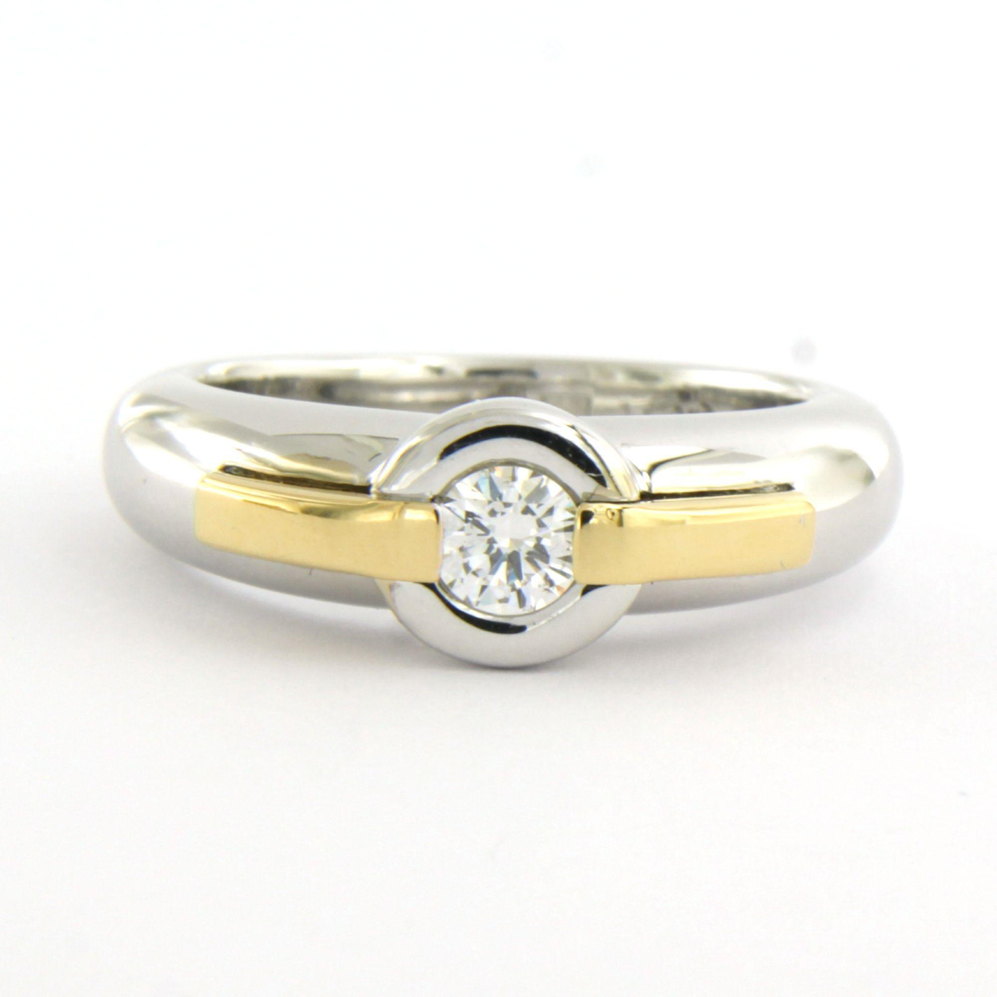 LECHIC 18 Kt. bicolor gouden ring bezet met briljant geslepen diamant tot. 0.25ct - ringmaat 17.25(54)