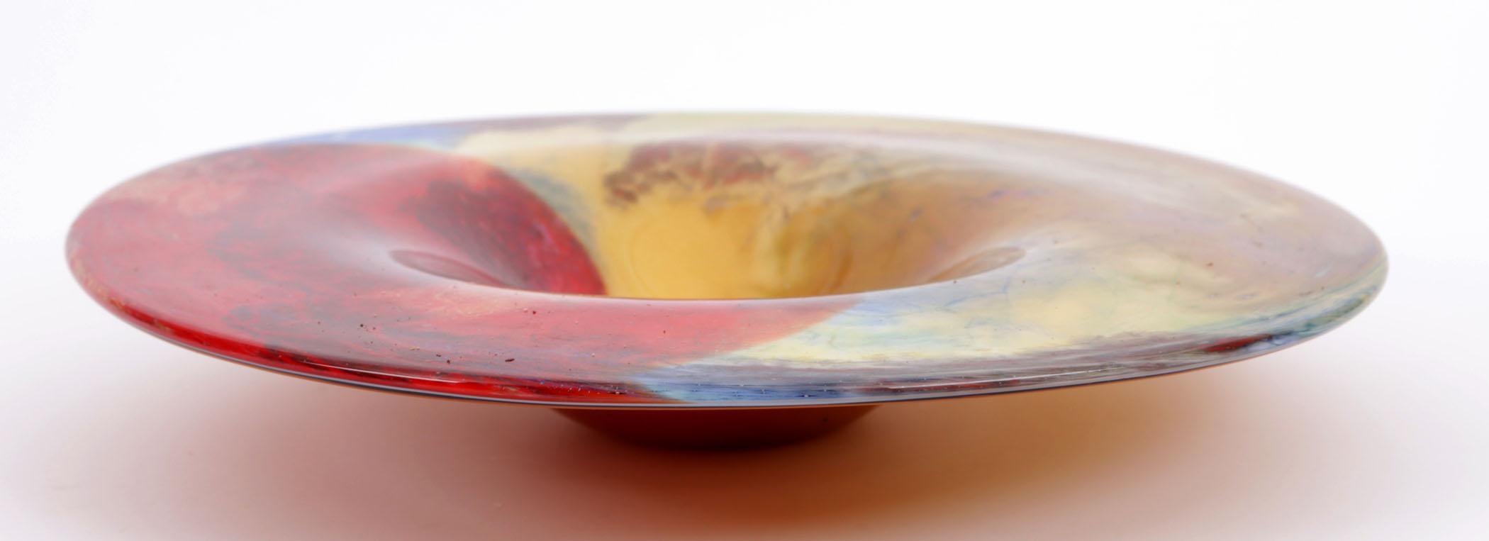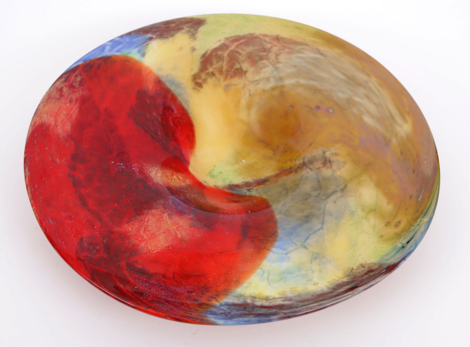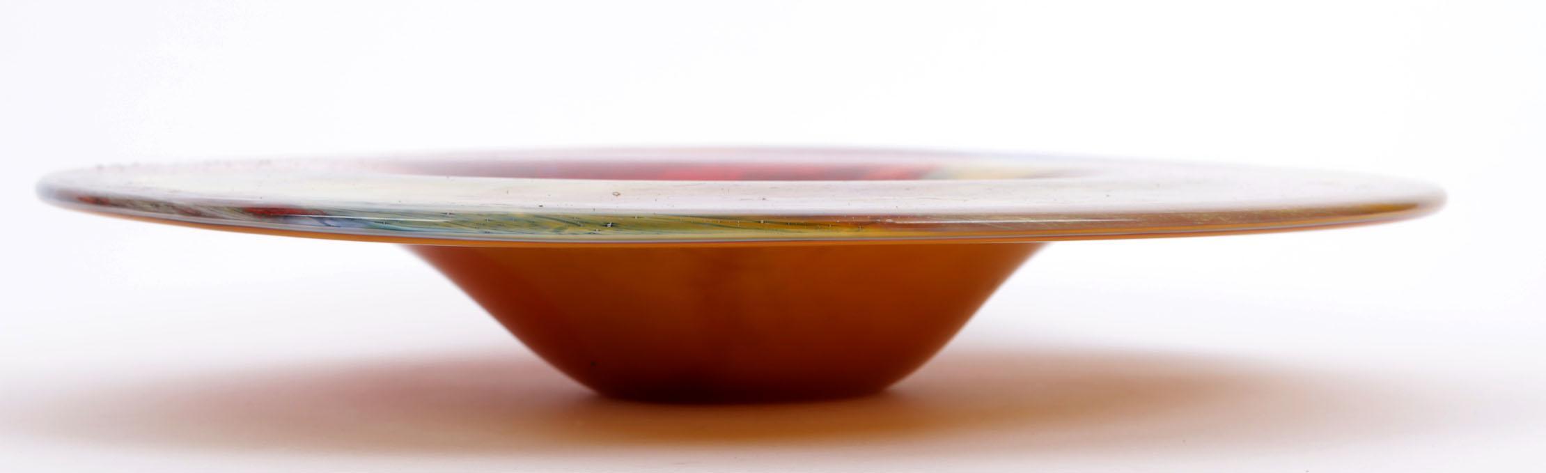 Meerkleurige glazen fruitschaal, h.6 x diam.38 cm.