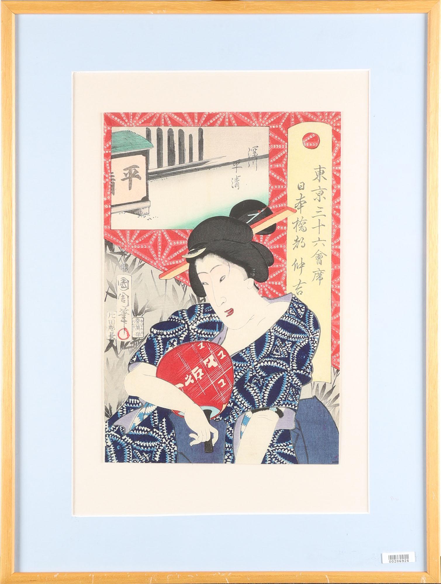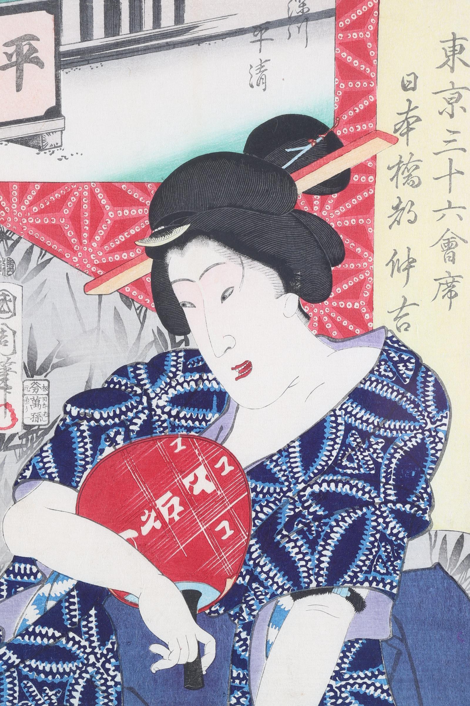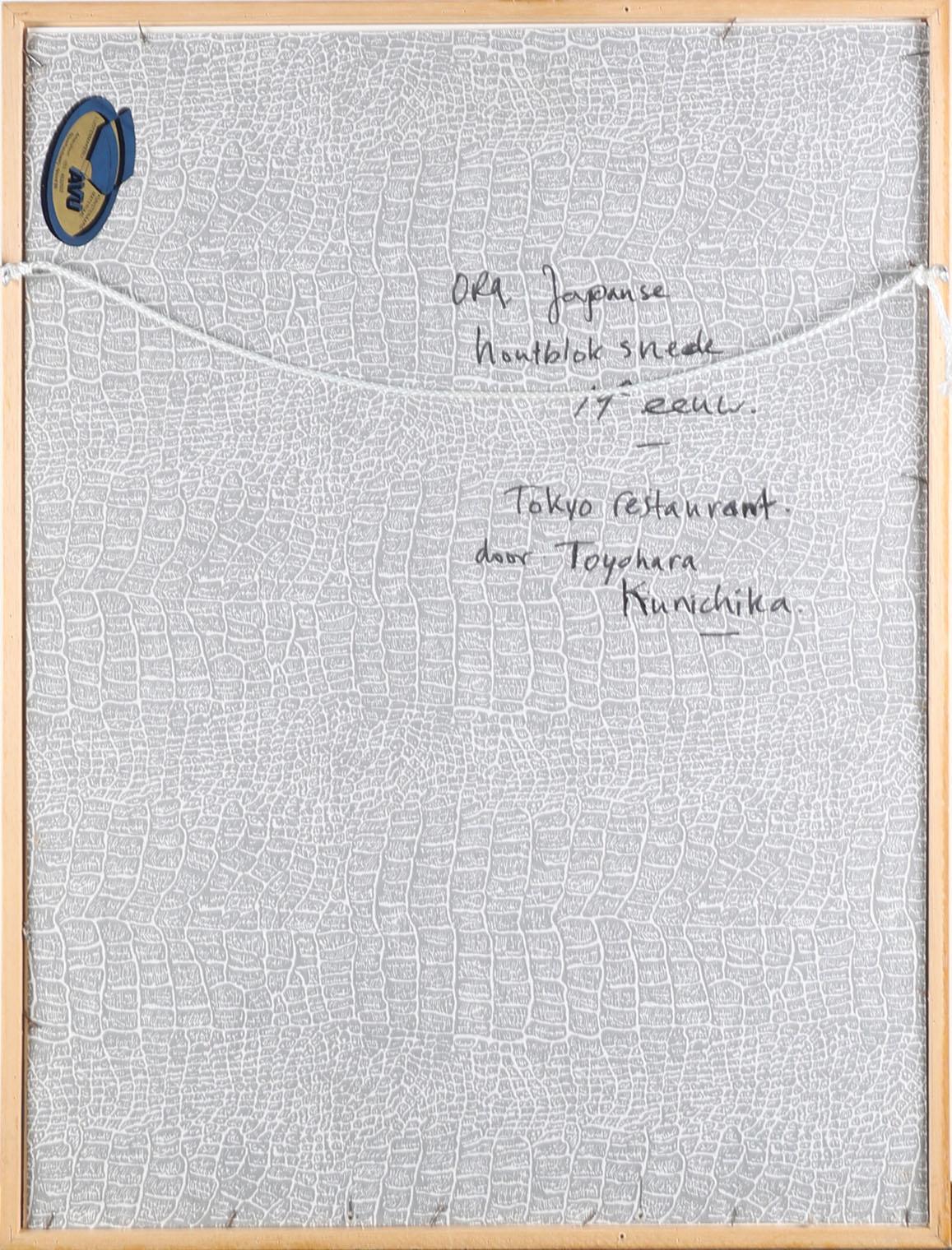 Toyohara Kunichika, Tokyo restaurant, Japanse houtbloksnede, 19e eeuw, 24 x 36 cm.