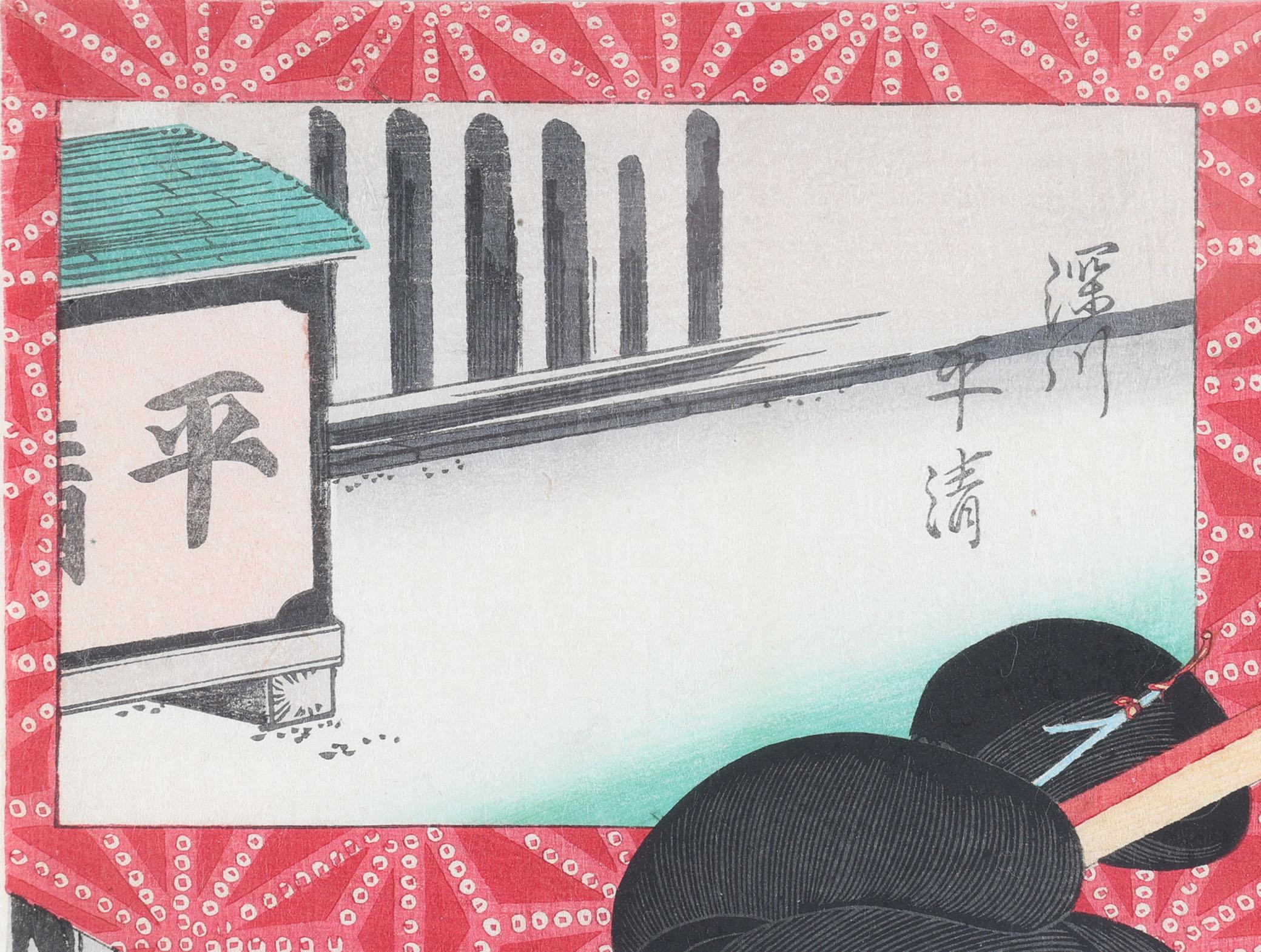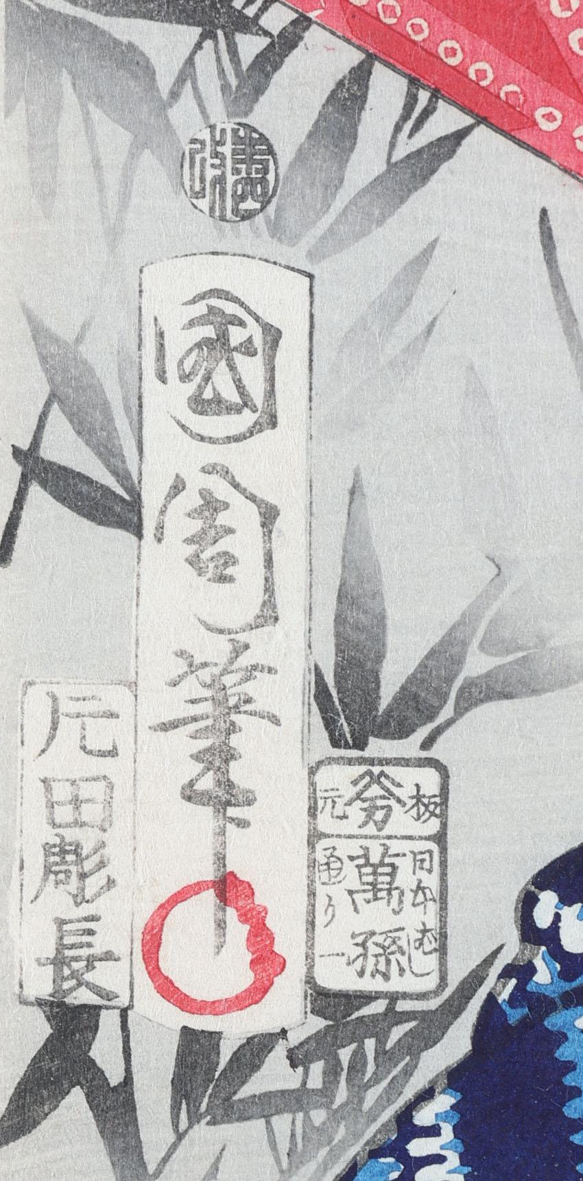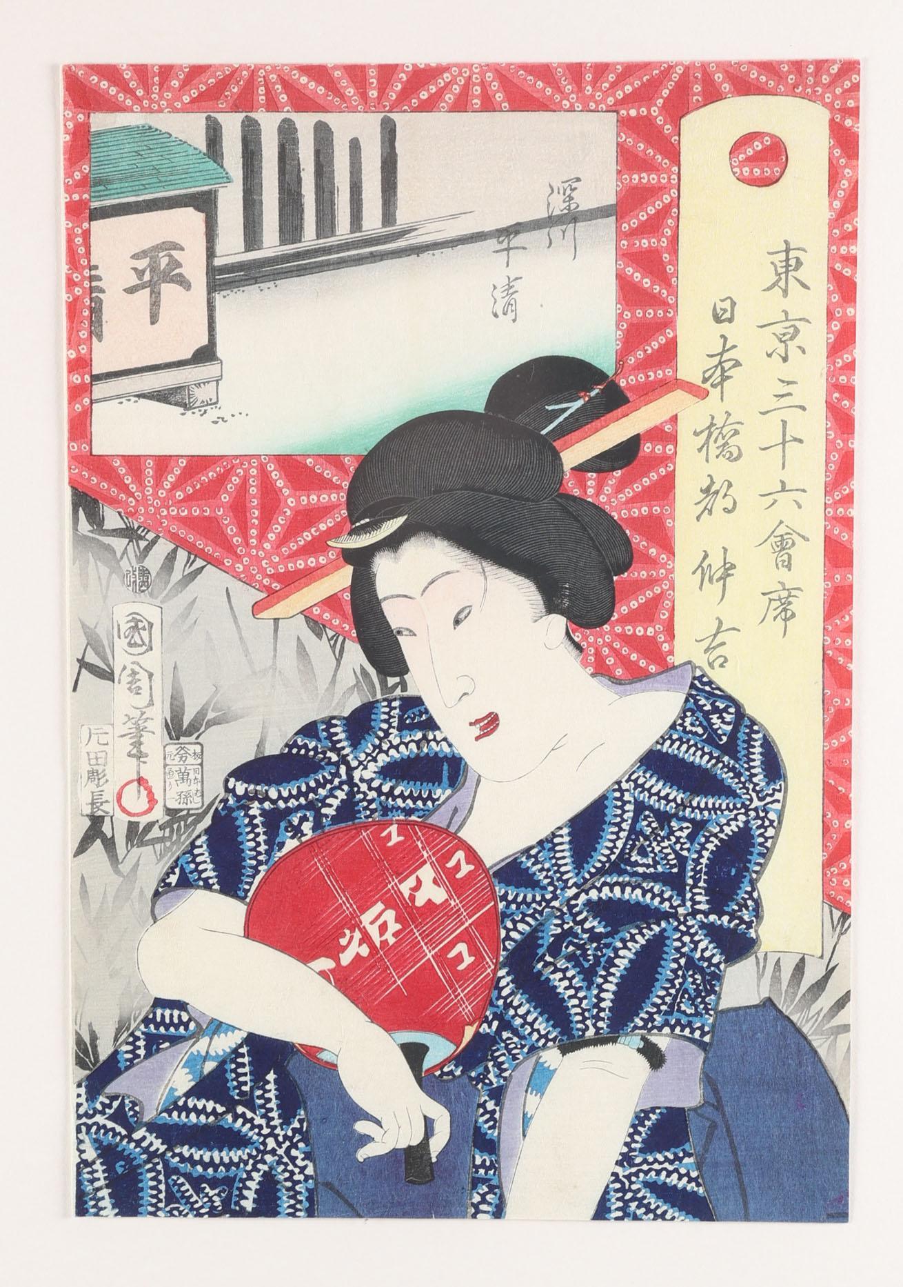 Toyohara Kunichika, Tokyo restaurant, Japanse houtbloksnede, 19e eeuw, 24 x 36 cm.