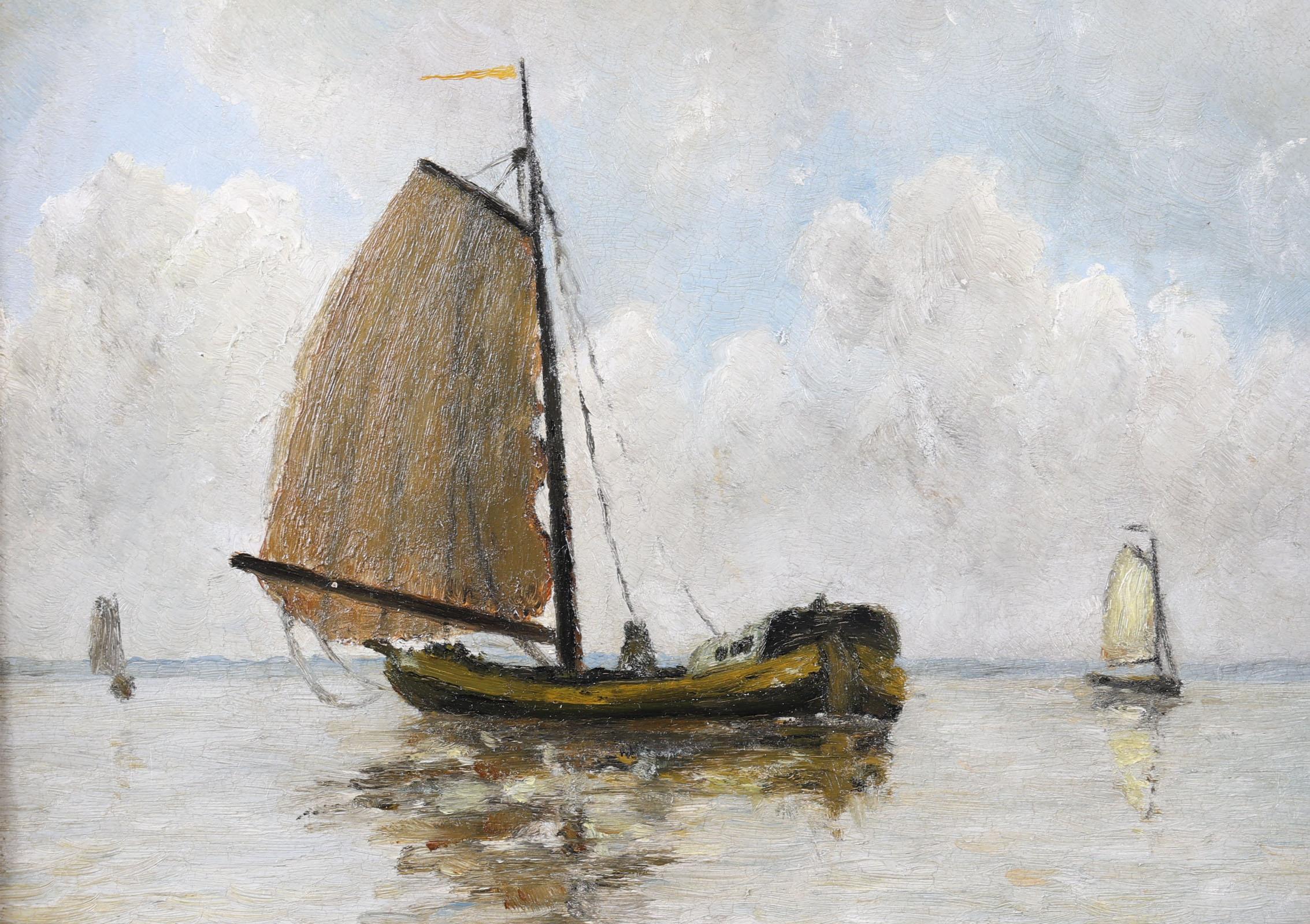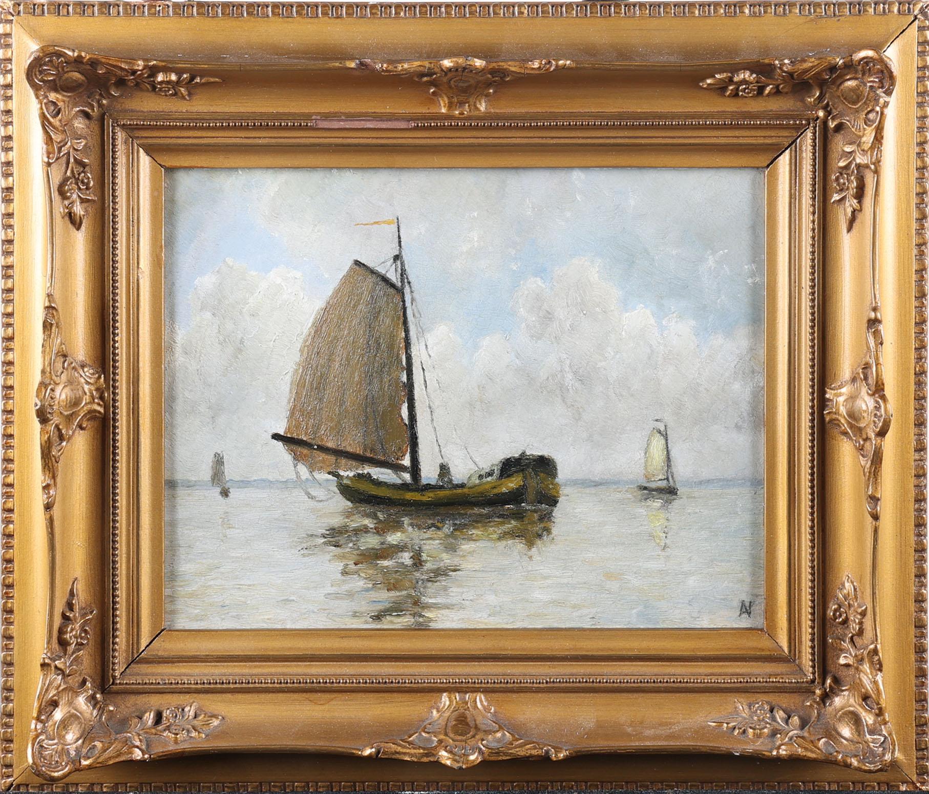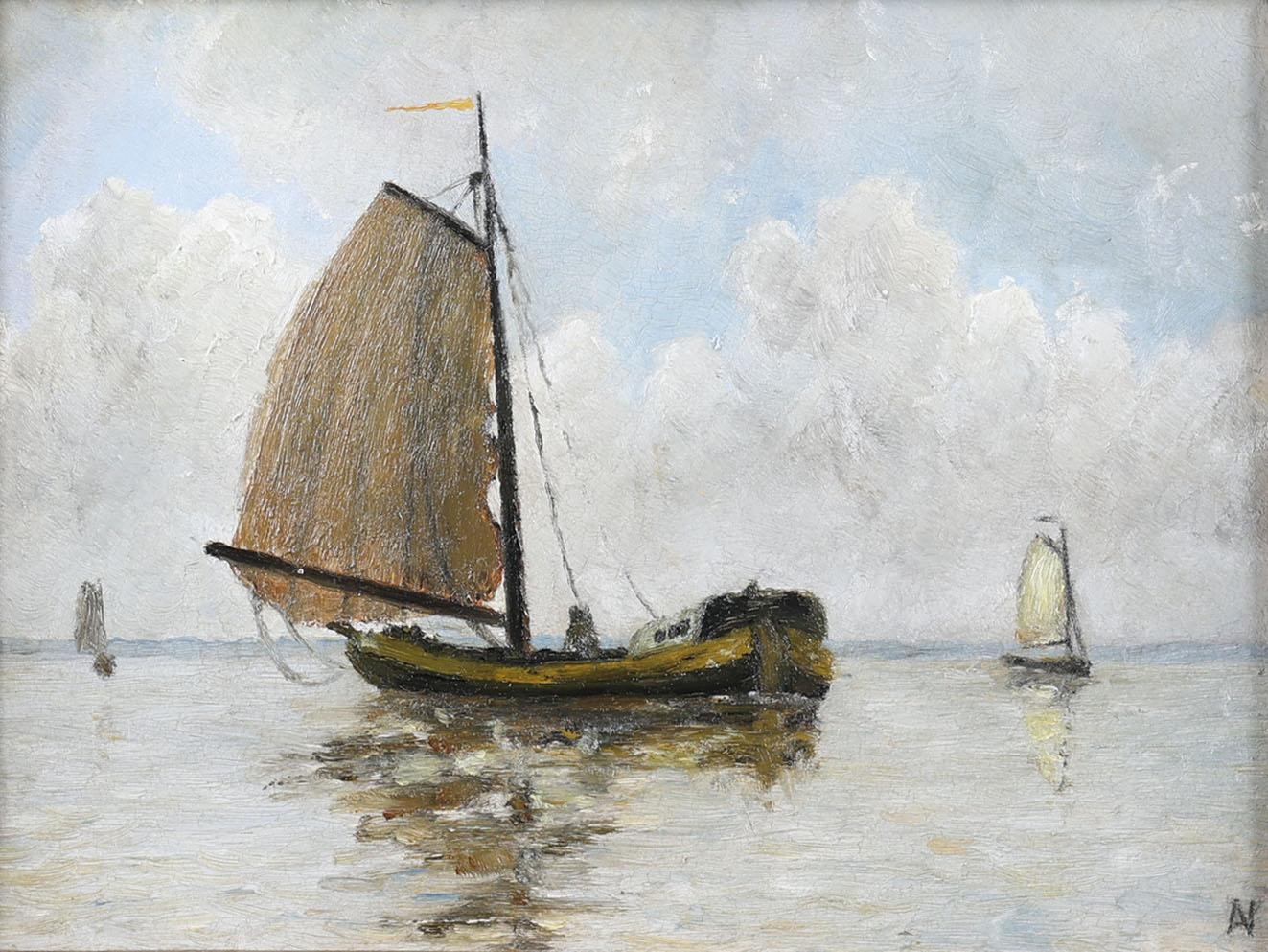 Monogram A.N., Schepen op zee, olieverf op paneel, 19 x 25 cm.