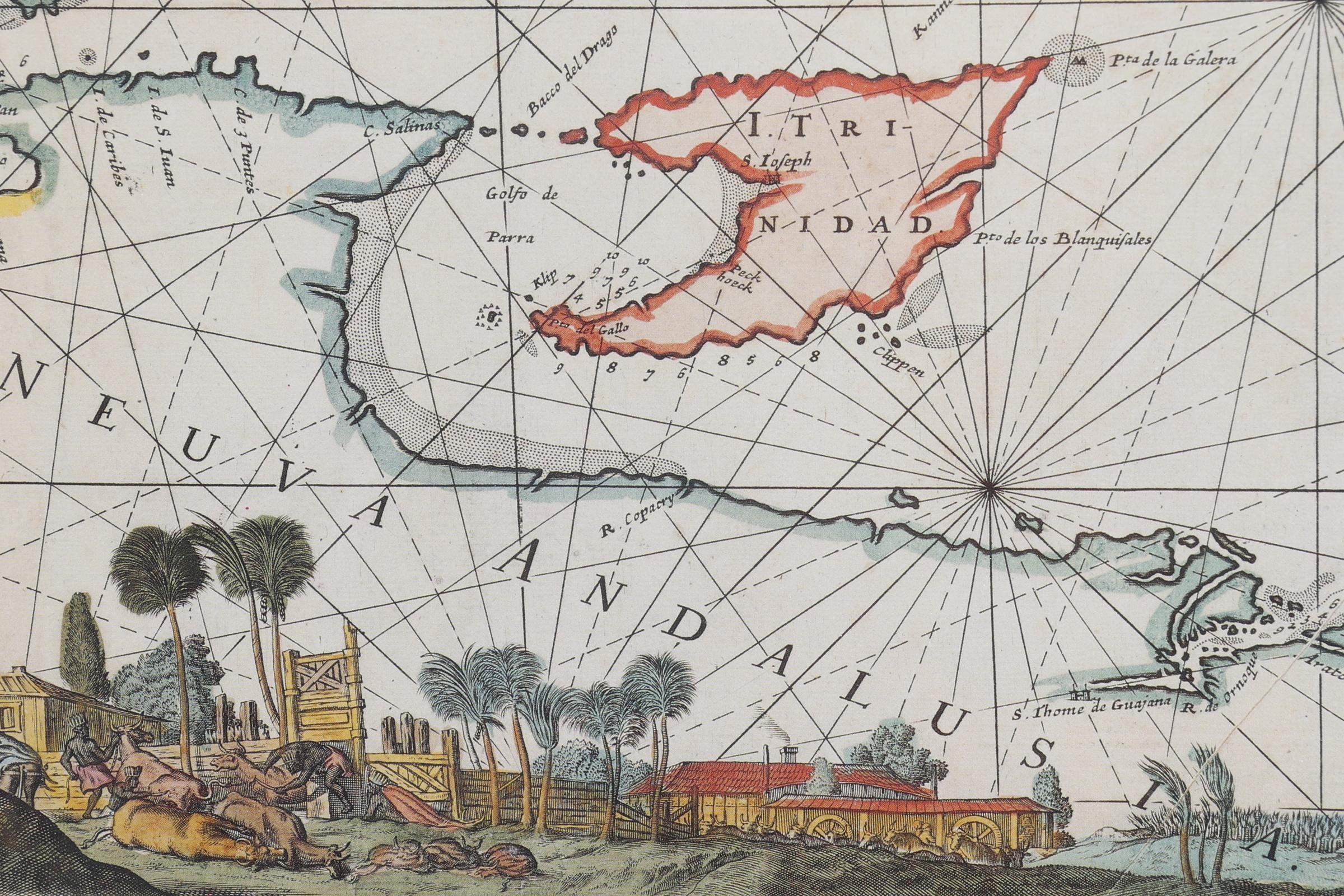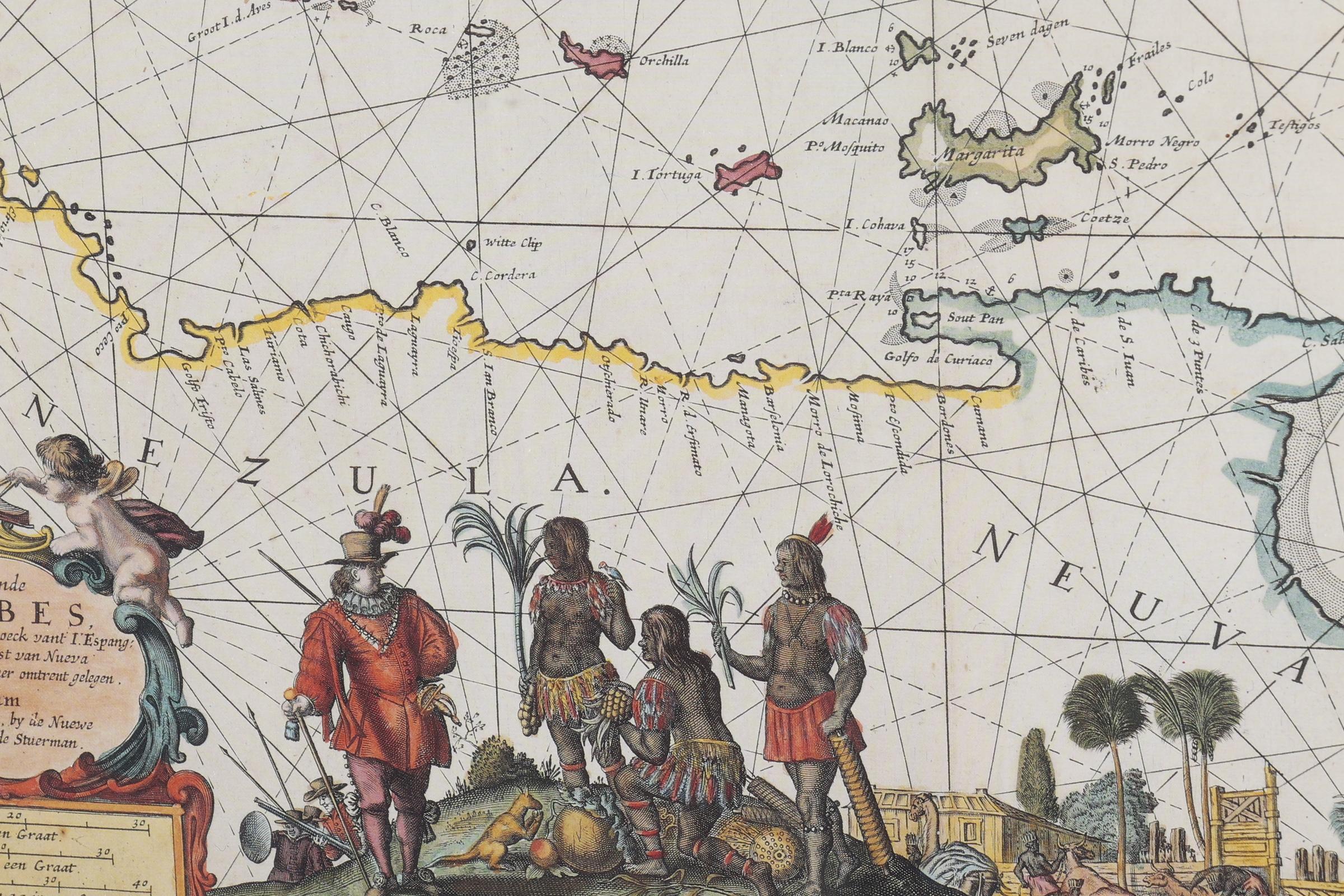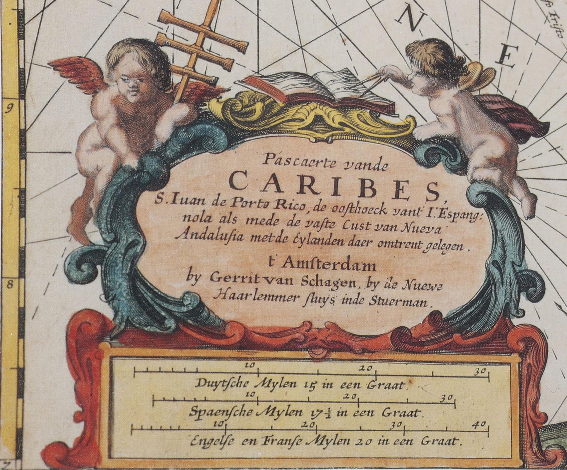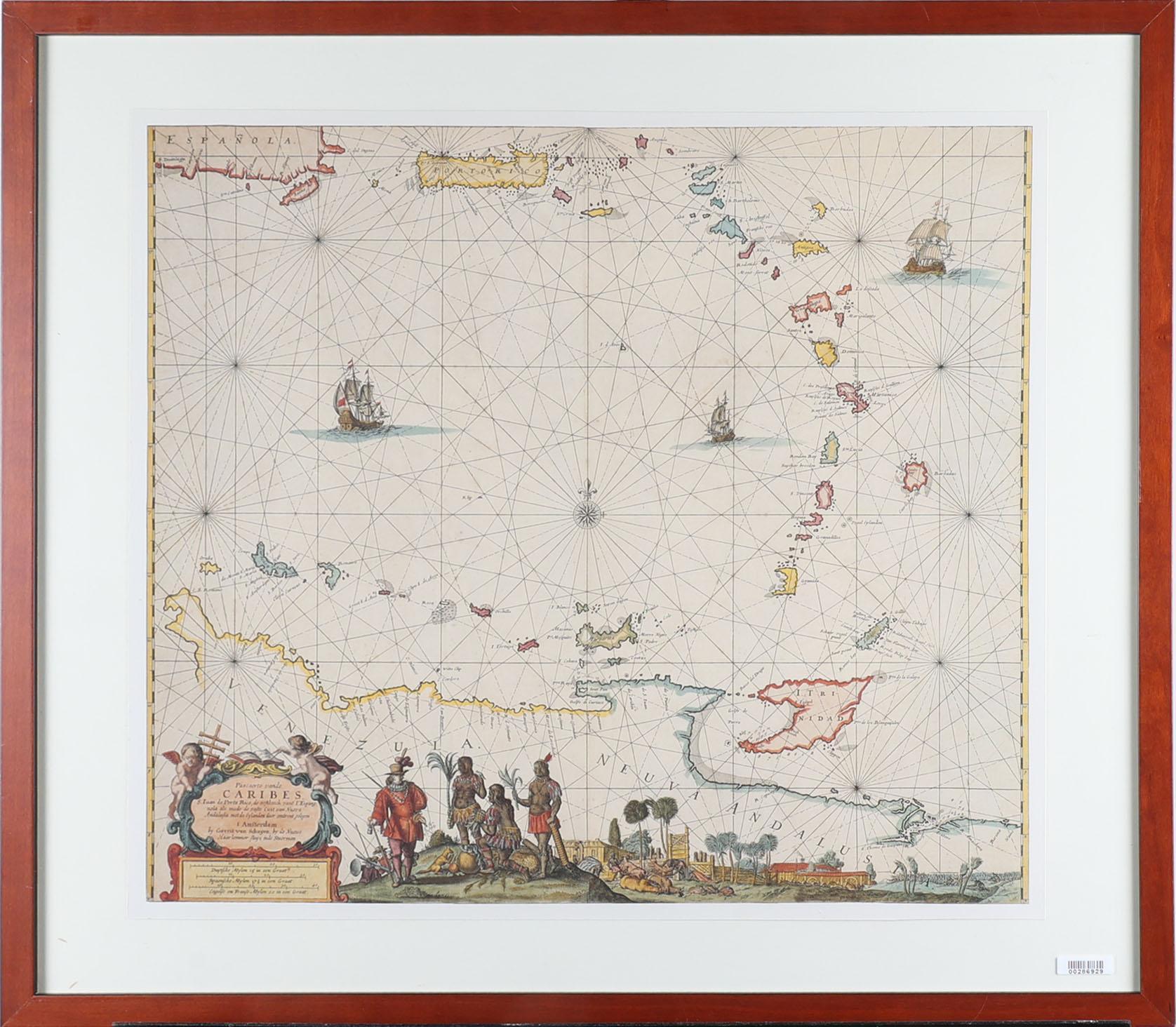 Kaart van de Caraïben, druk, 46 x 50 cm.