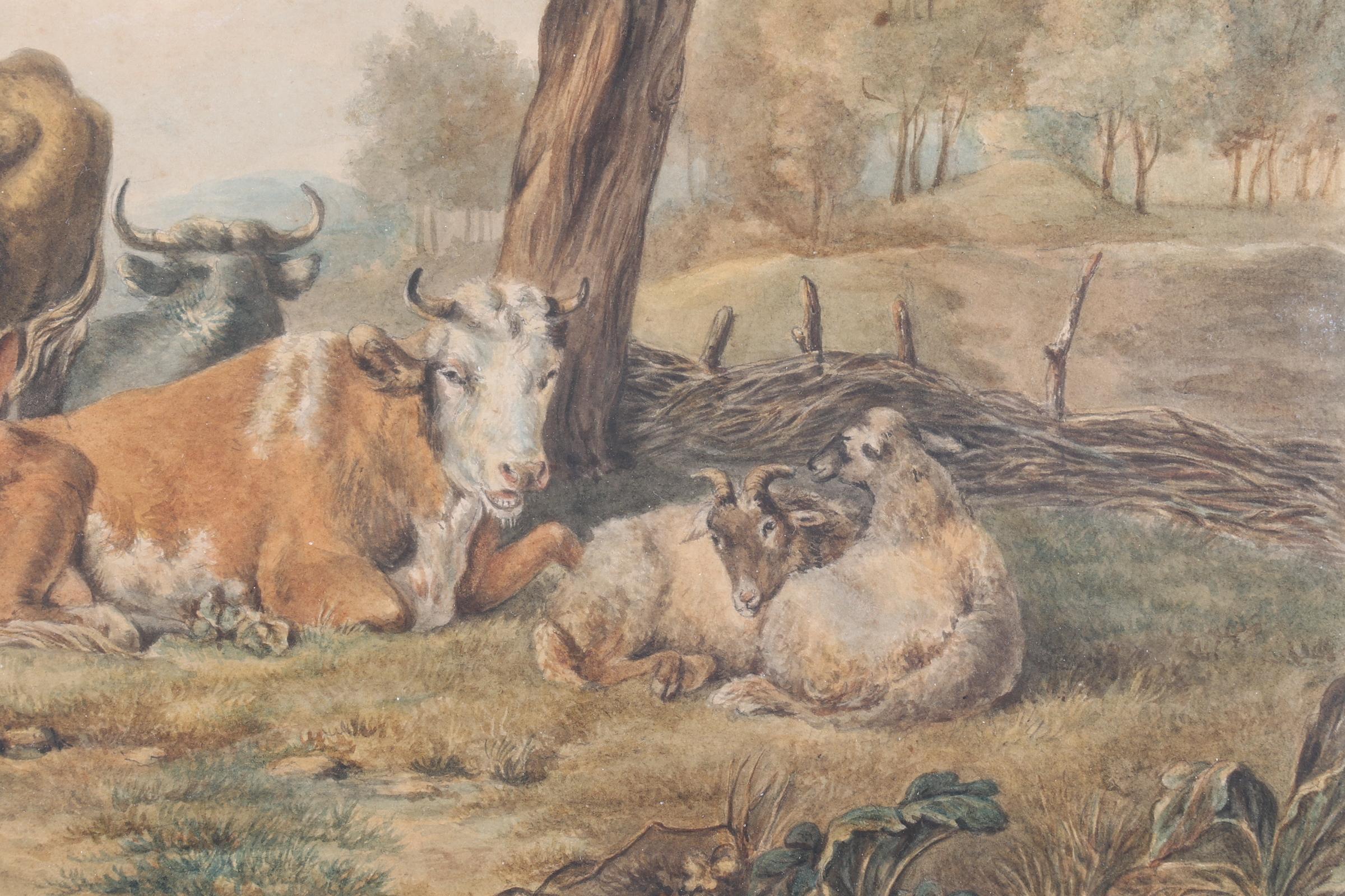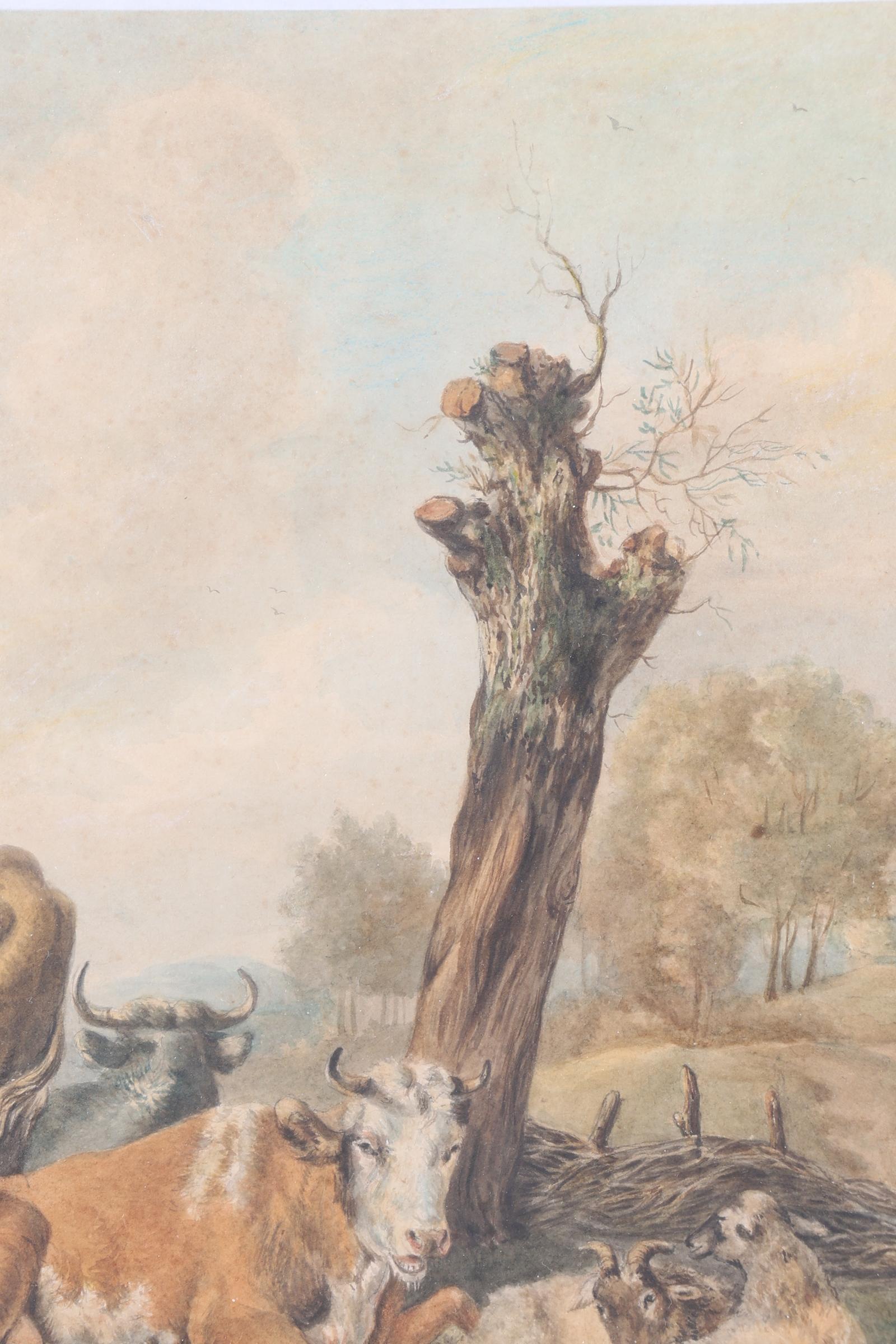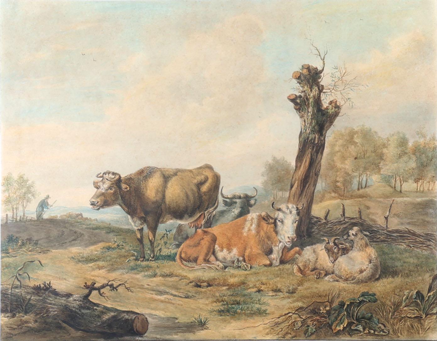 Toegeschreven aan J. Kobell (1749-1822), Vee in landschap, aquarel, 25 x 34 cm.