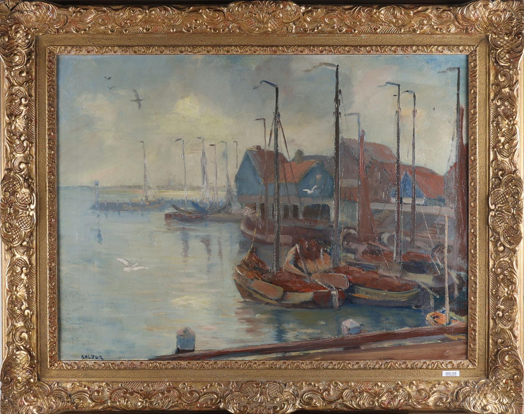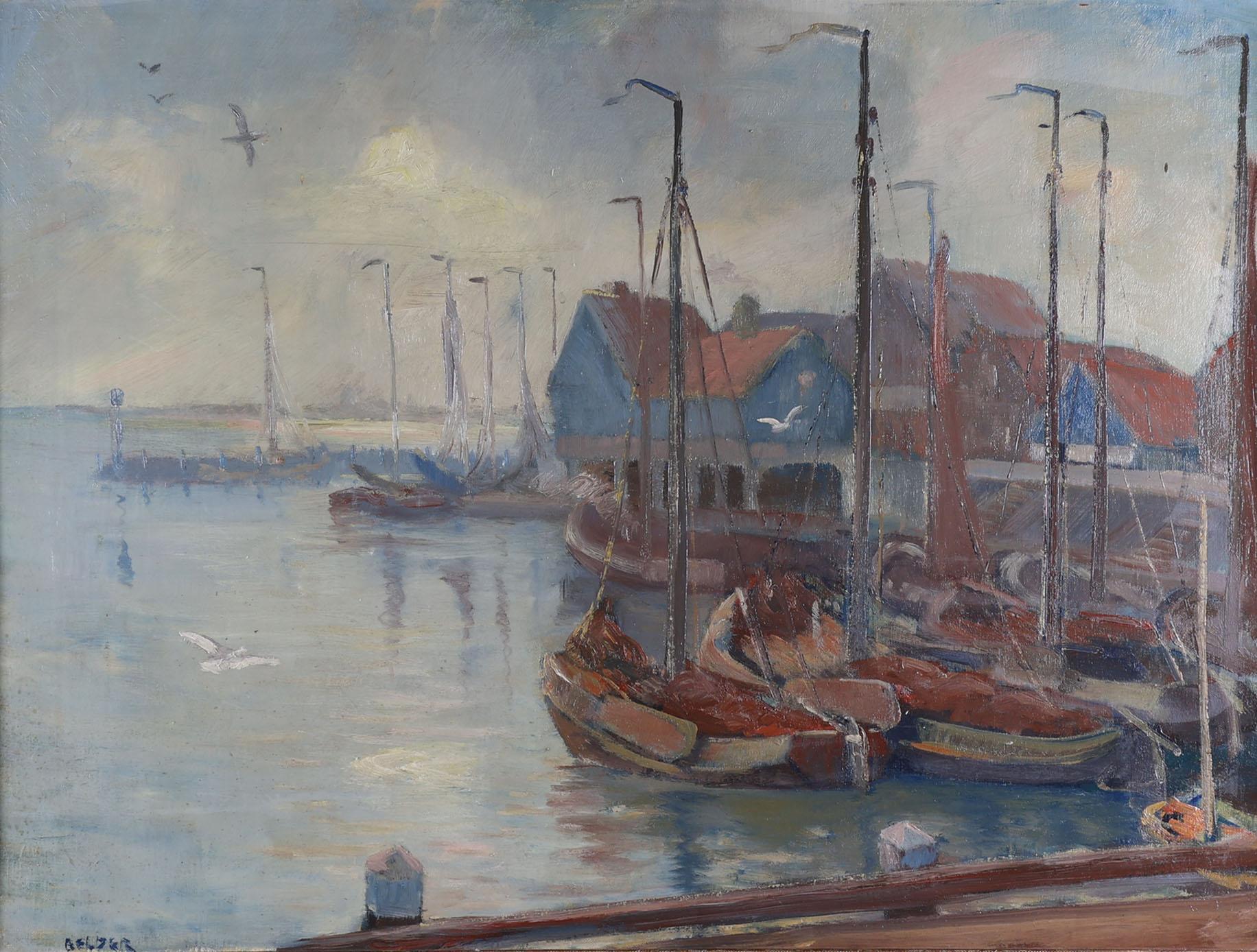 R.H. Belder (1910-1986), Haven te Volendam, olieverf op doek, 60 x 80 cm.