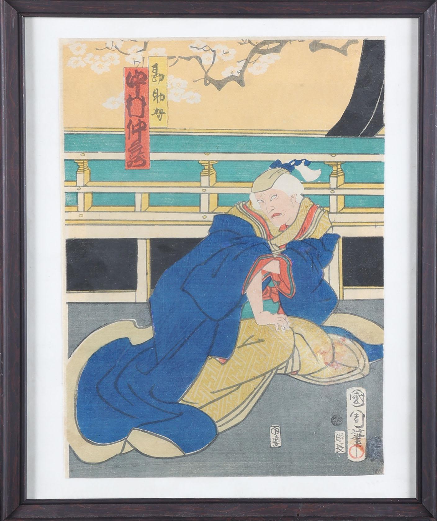 Toyohara Komachika (1835-1900), Vrouw in kimono, Japanse houtbloksnede, Meiji-periode, 24 x 36 cm.