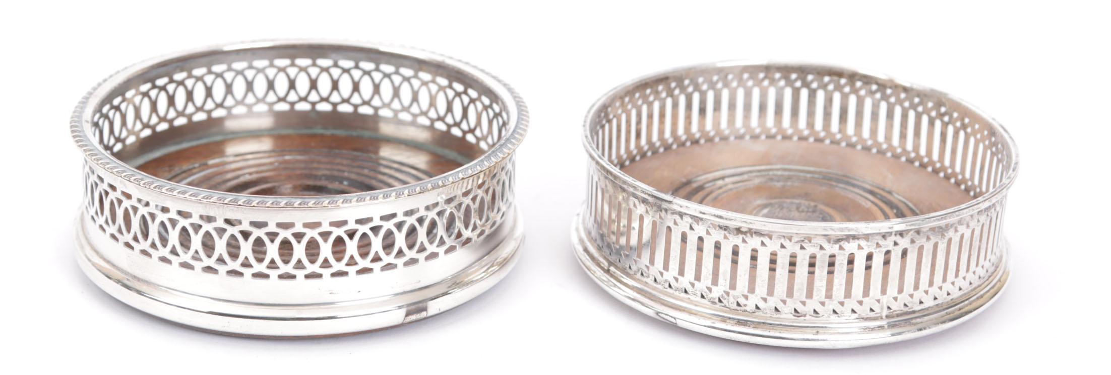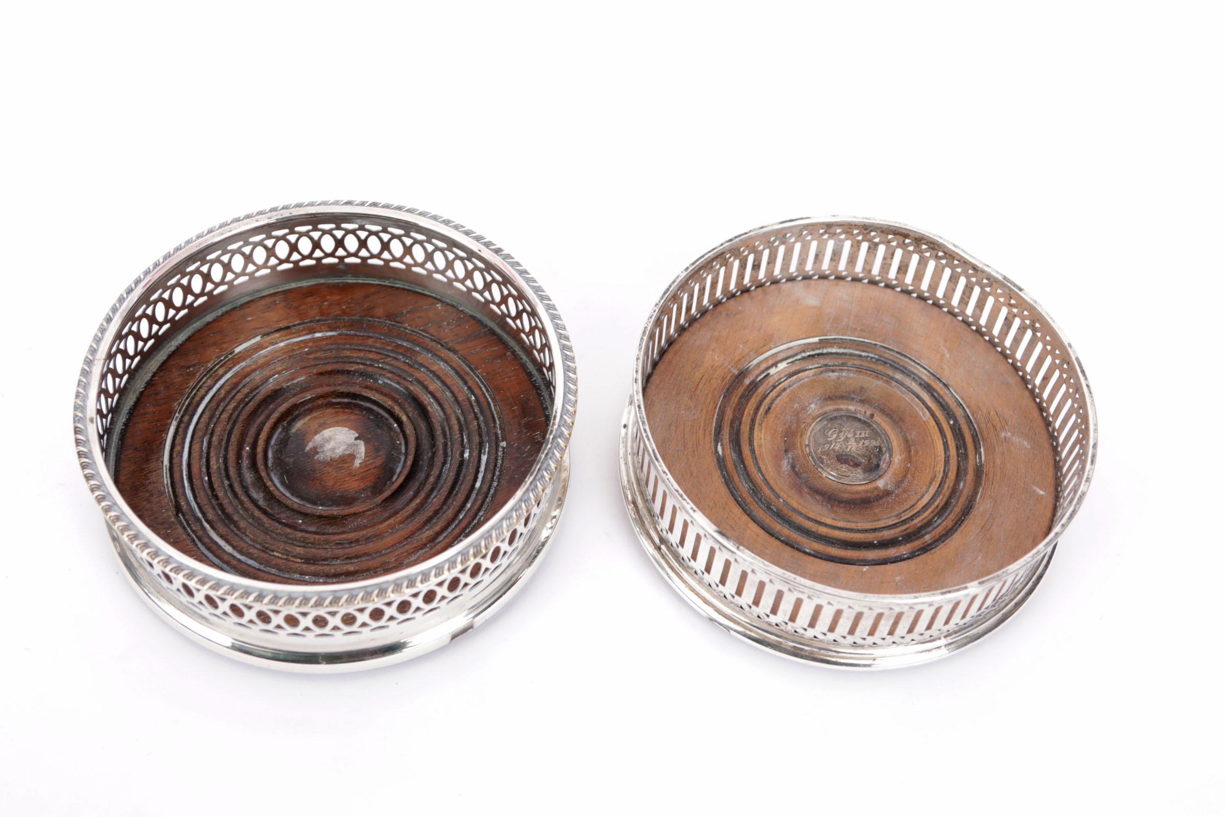 Zilveren en een verzilverde Engelse flessenbak met houten onderzijde