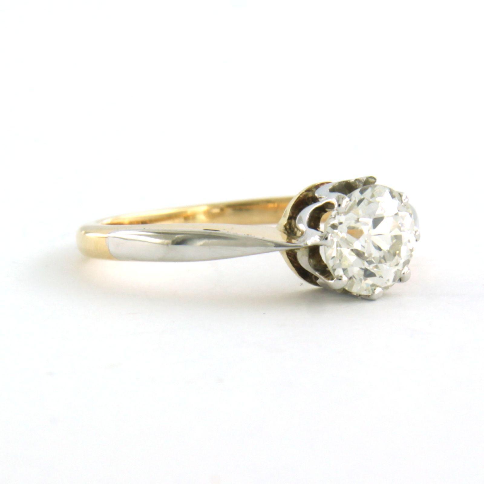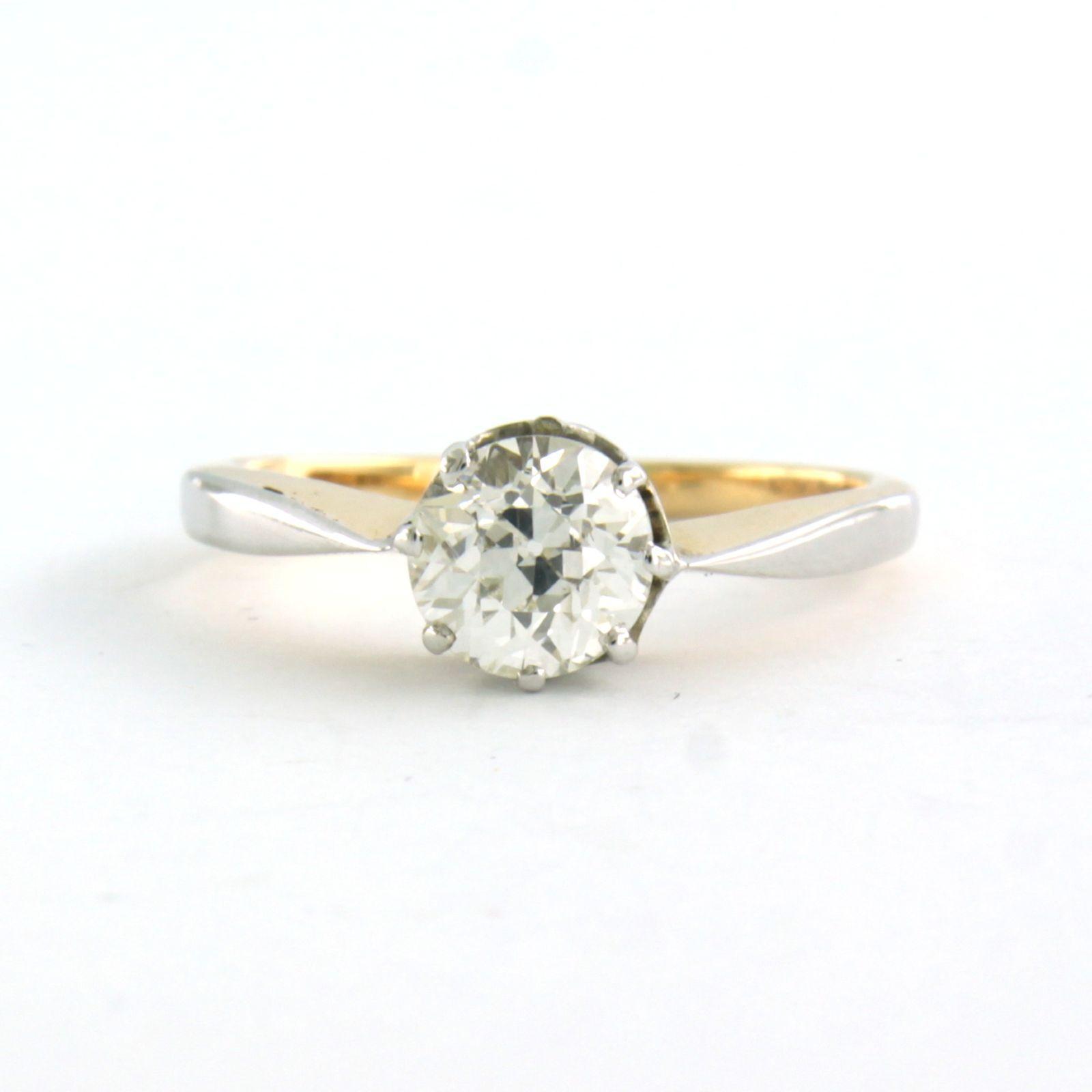 14 Kt. bicolor gouden solitair ring bezet met een Bolsjewiek geslepen diamant totaal circa 1.01ct -ringmaat 15.75(49)