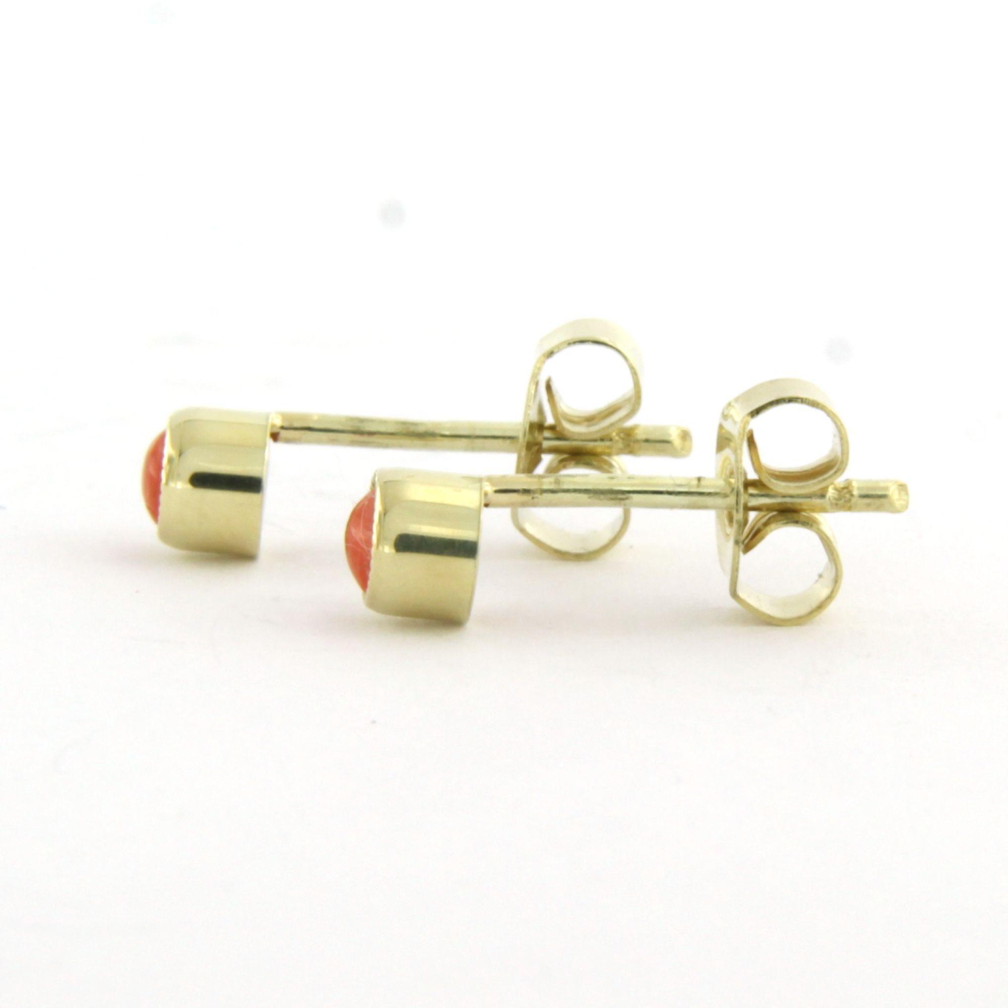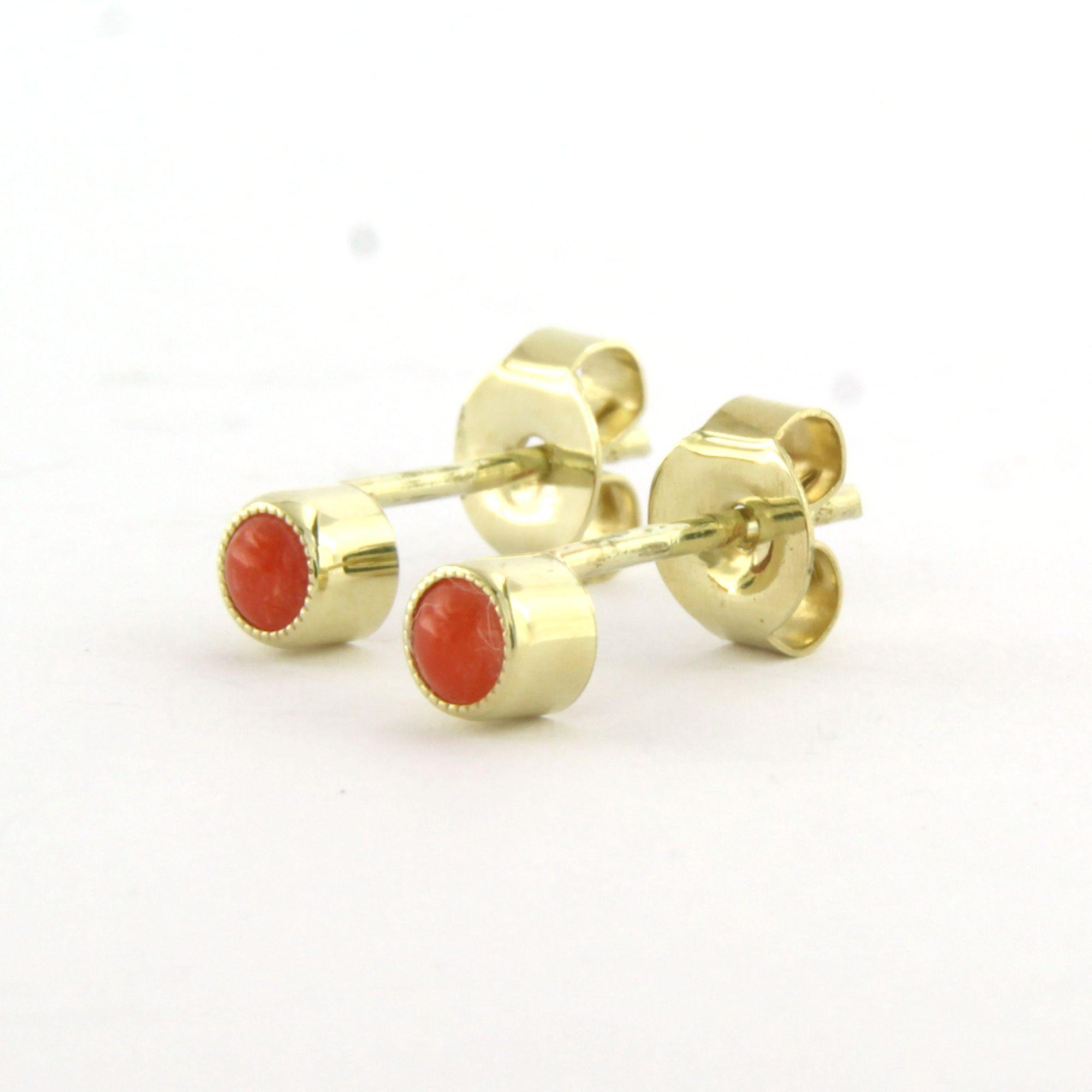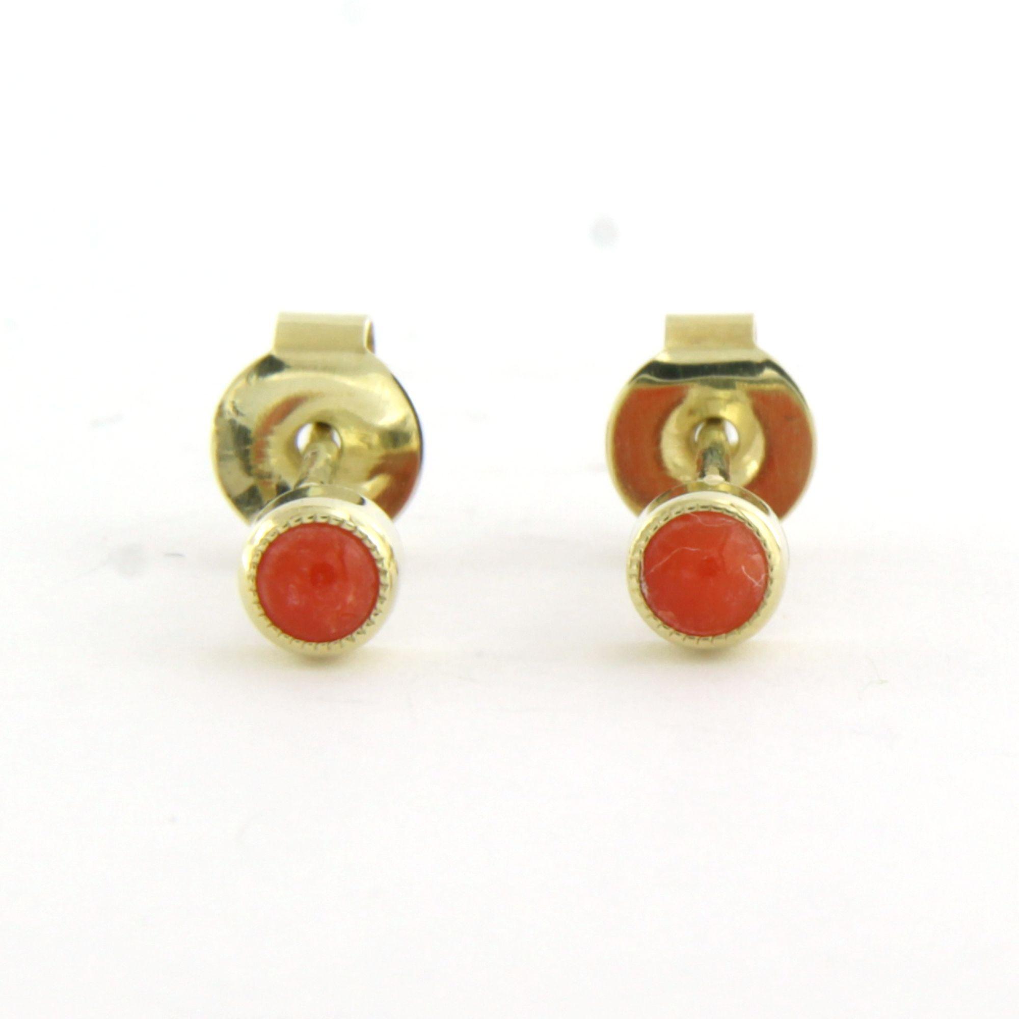 14 Kt. geelgouden oorknoppen bezet met koraal
