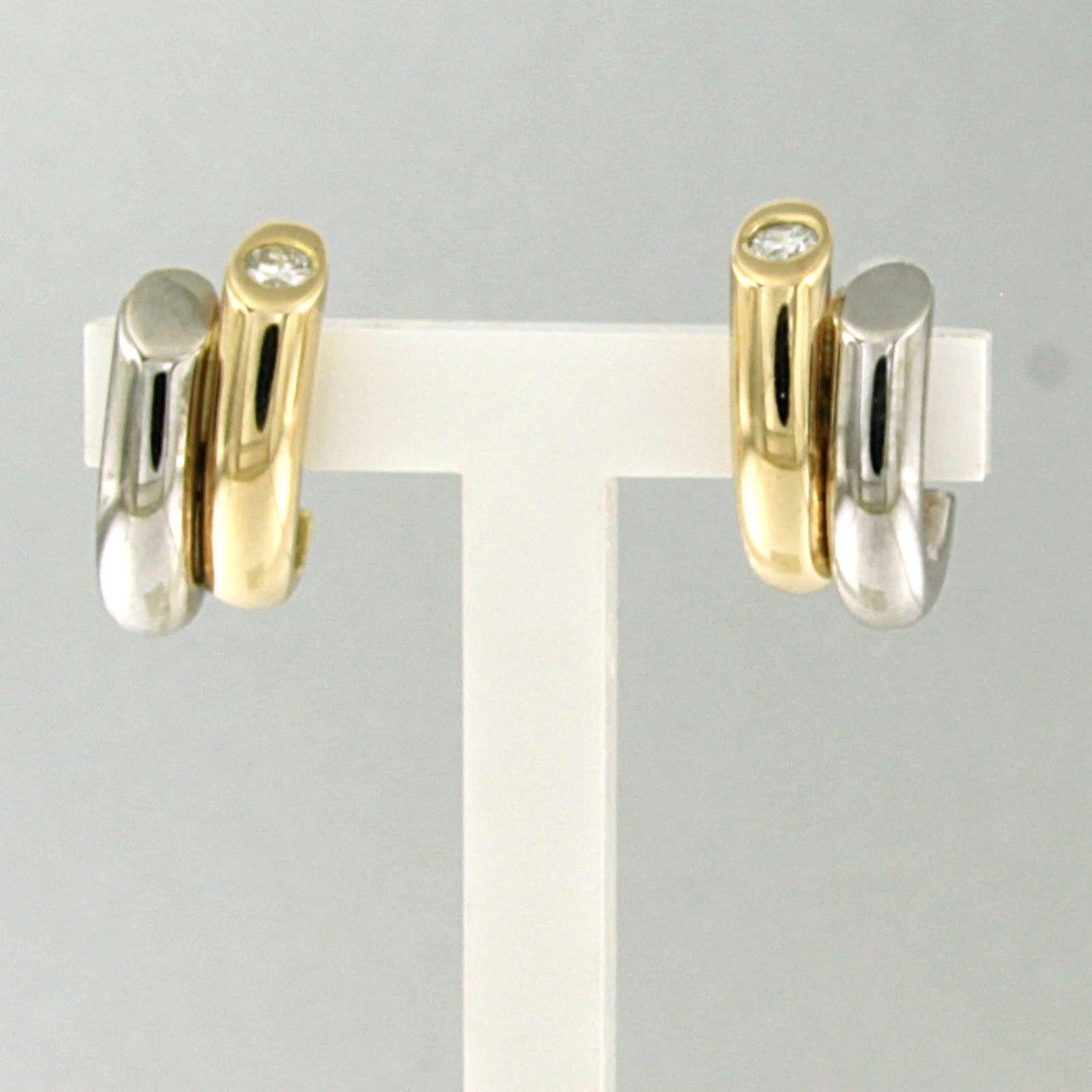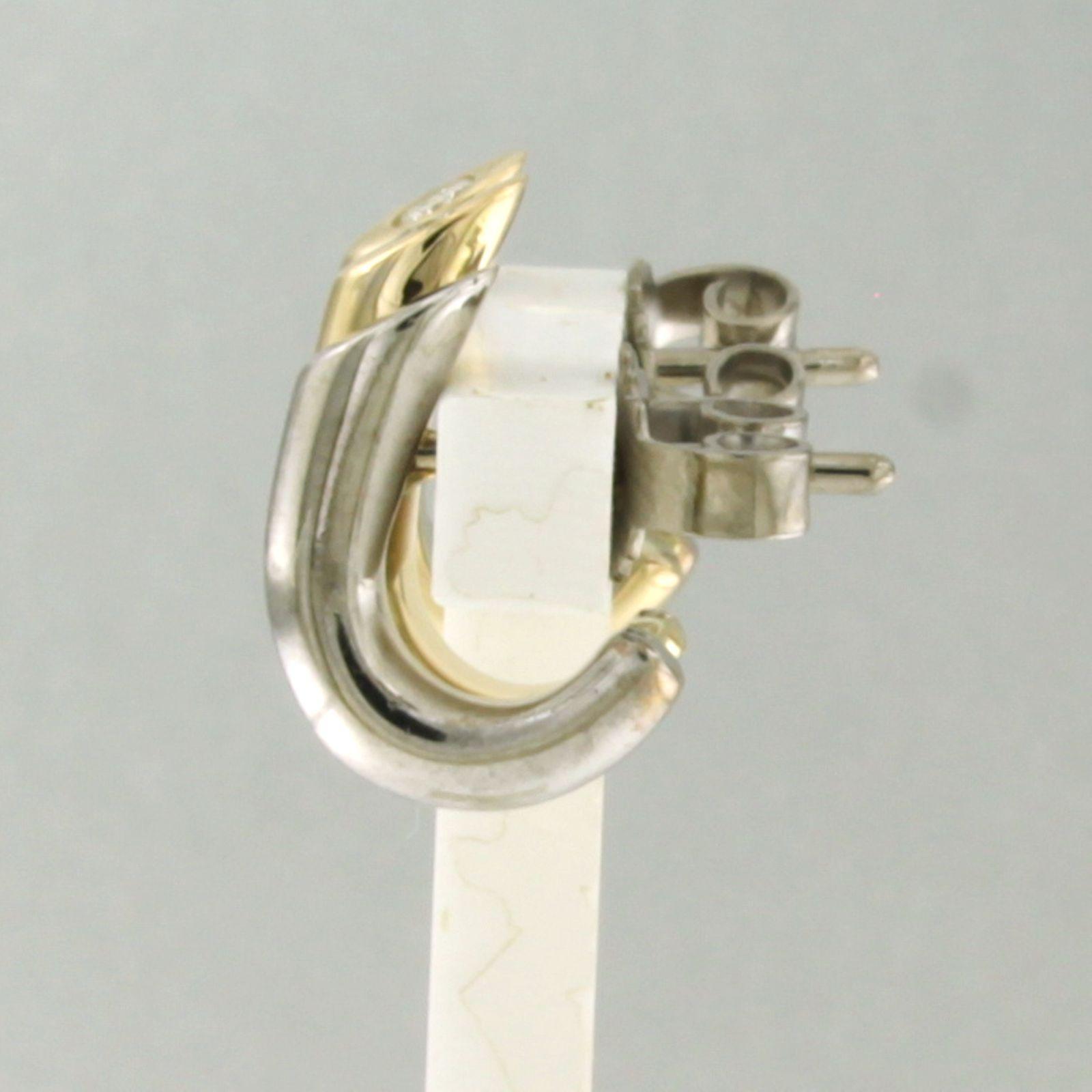 14 Kt. bicolor gouden oorknoppen bezet met briljant geslepen diamant tot. 0.06ct