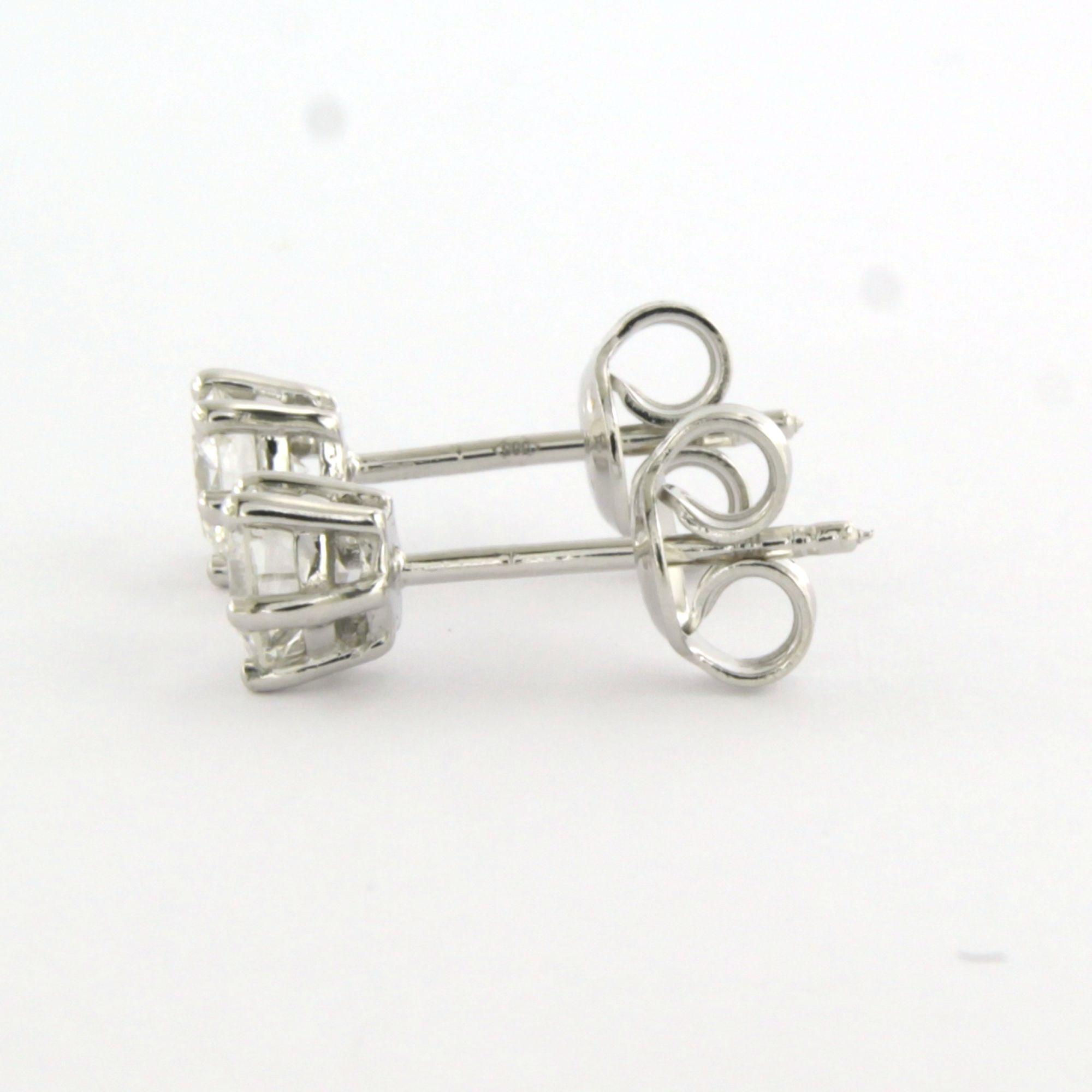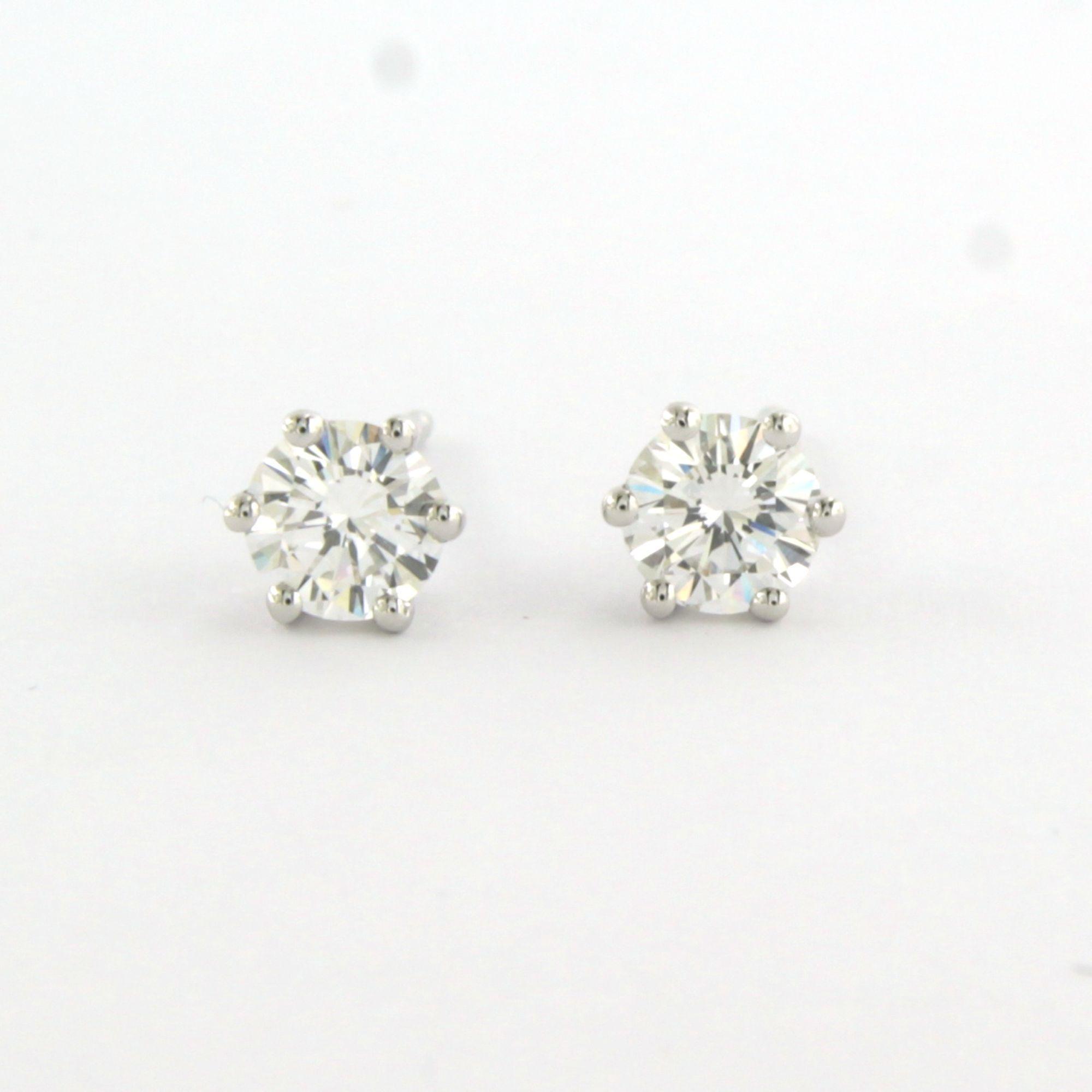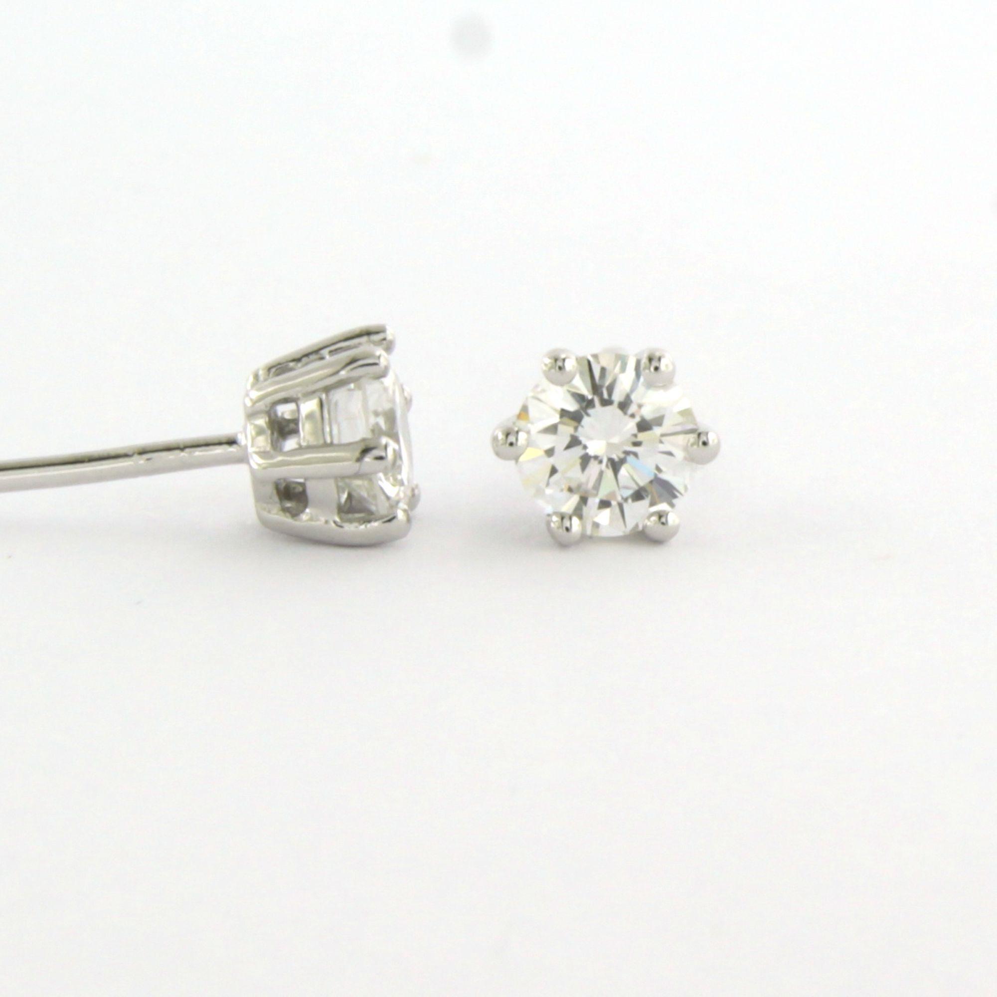 IDI diamant rapport 14 Kt. witgouden solitair oorknoppen bezet met briljant geslepen diamant tot. 0.74ct