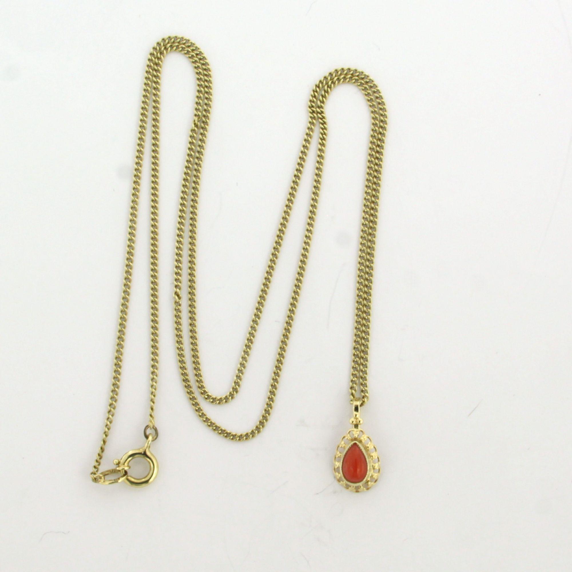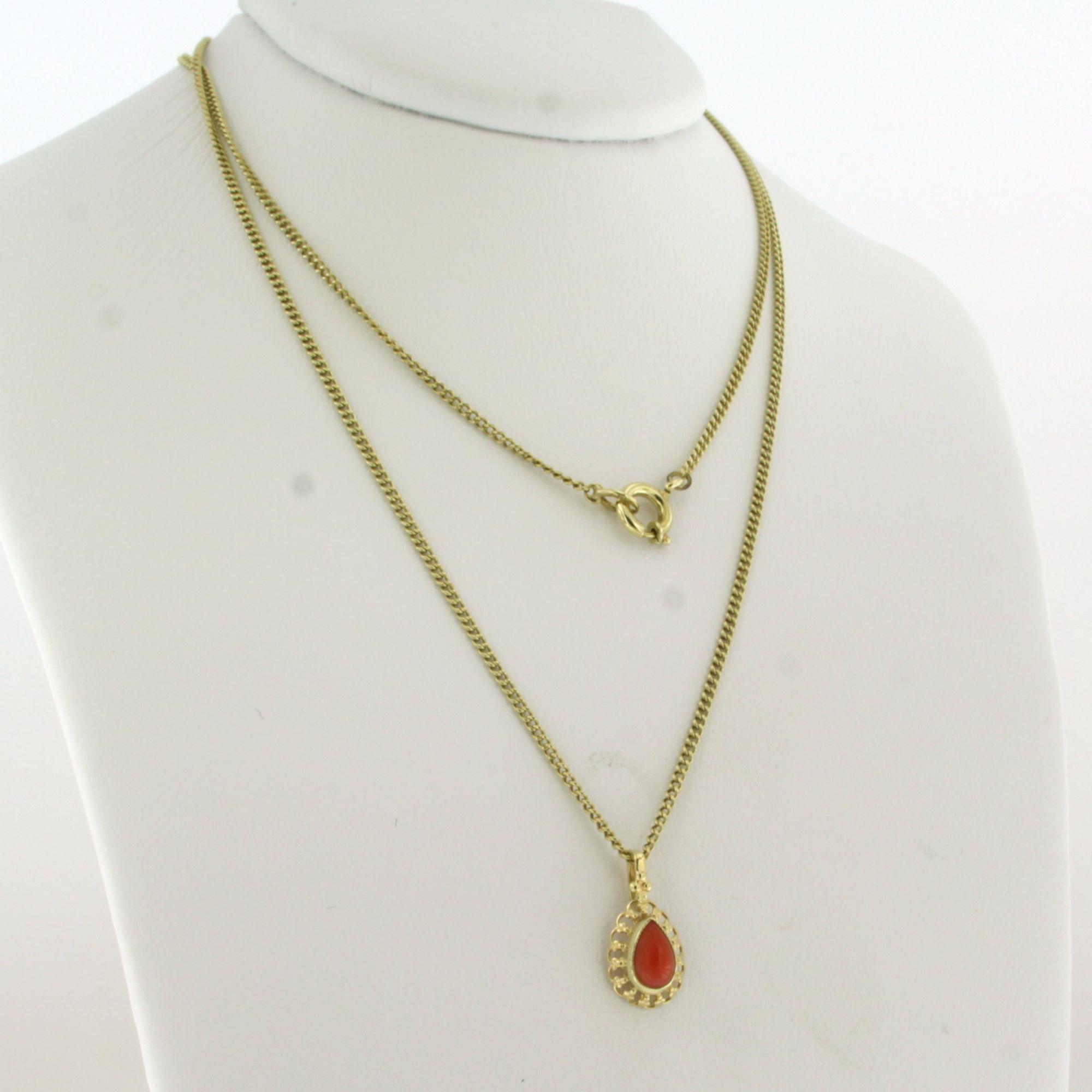 14 Kt. geelgouden collier en hanger bezet met koraal