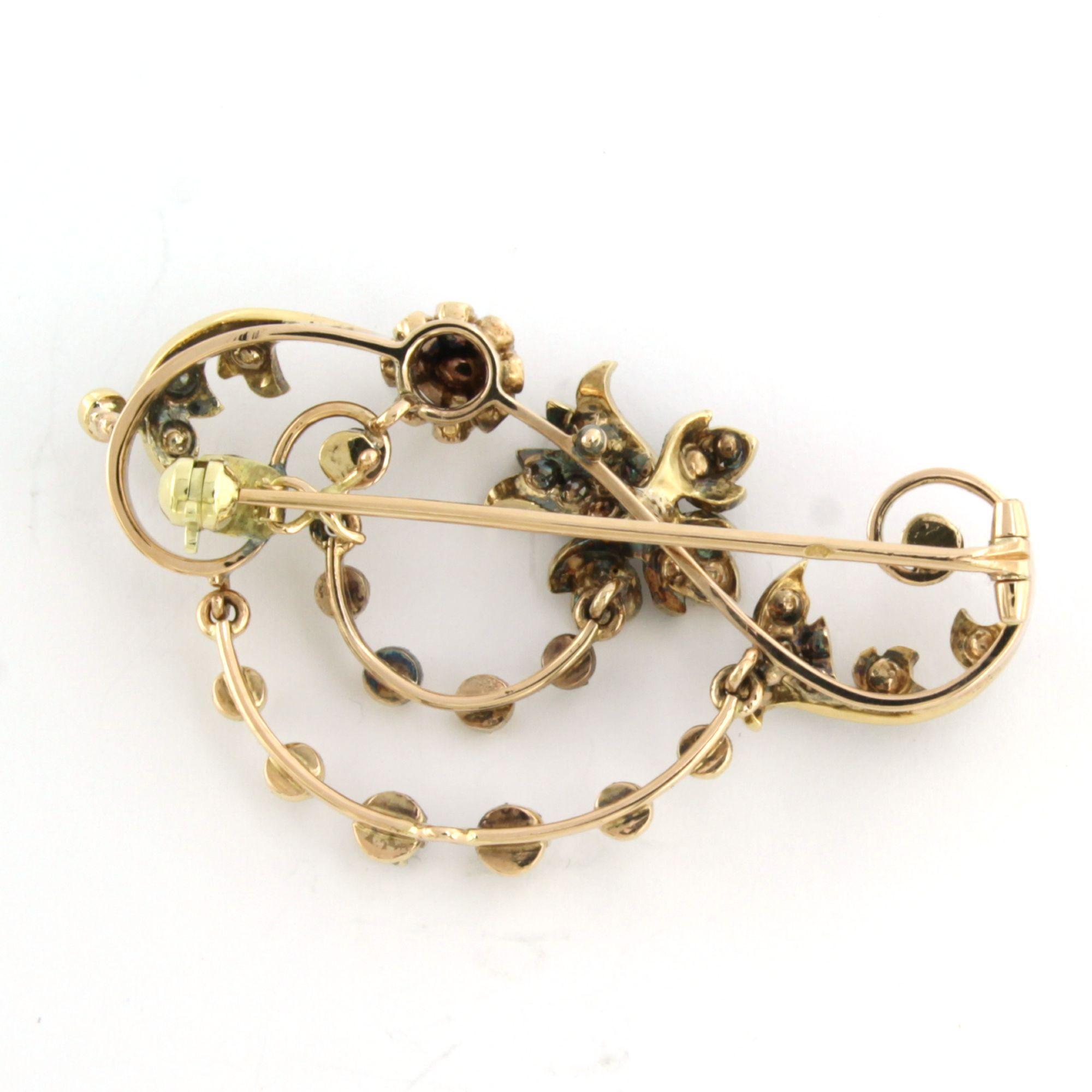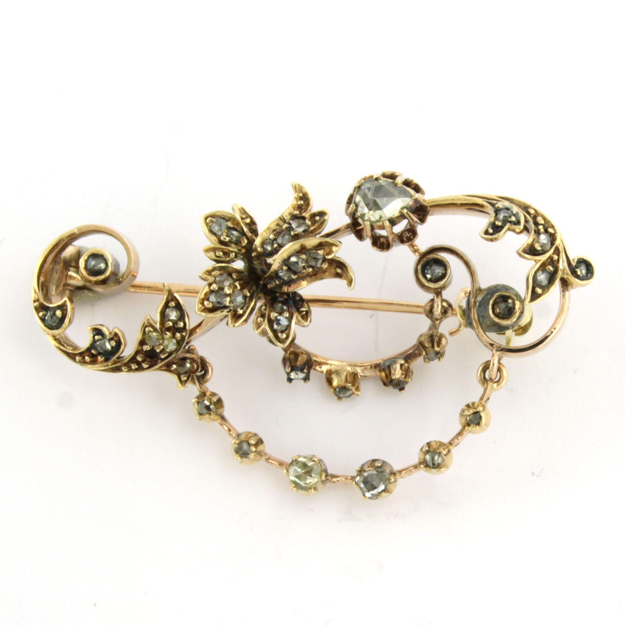 14 Kt. geelgouden broche bezet met roos diamanten tot. 0.50ct