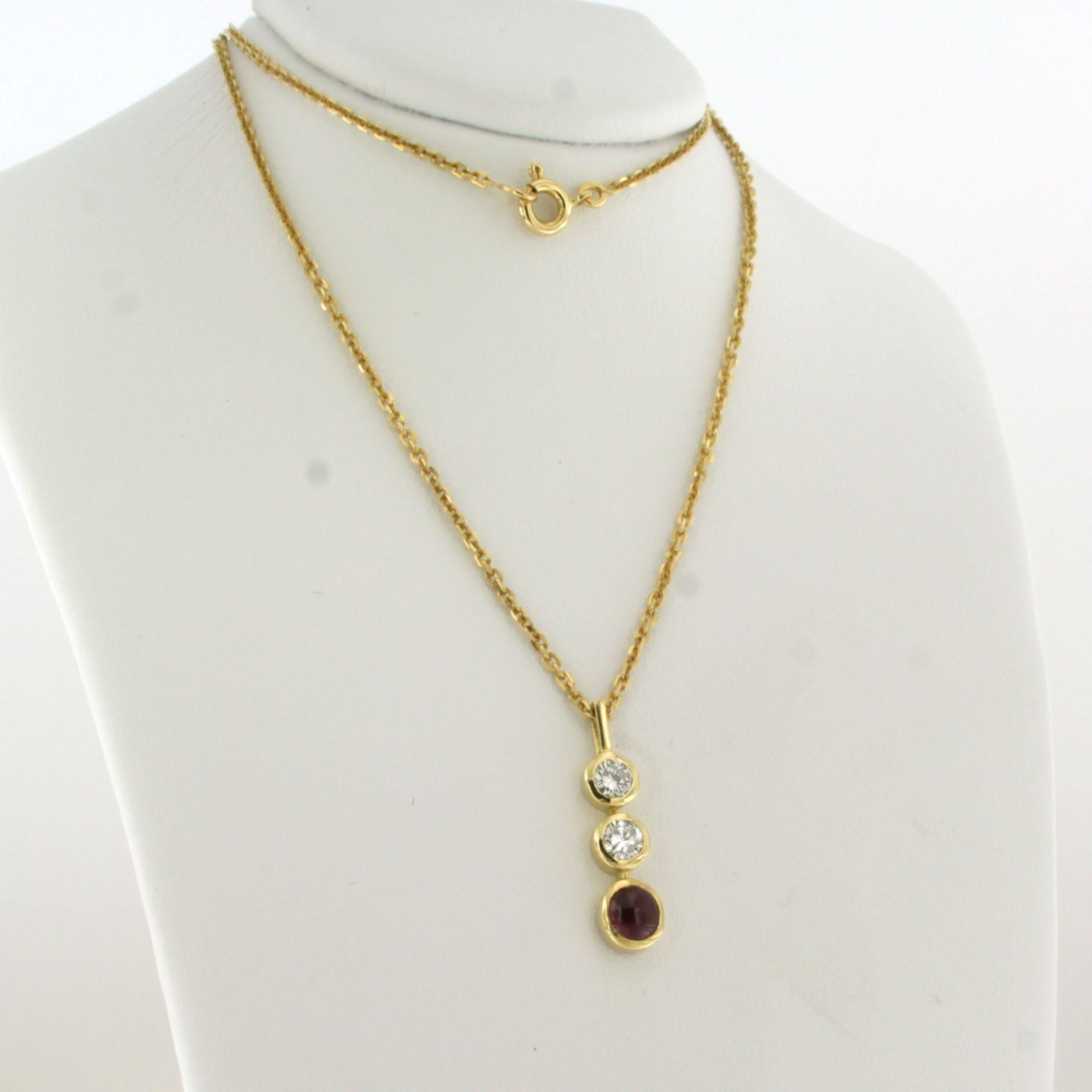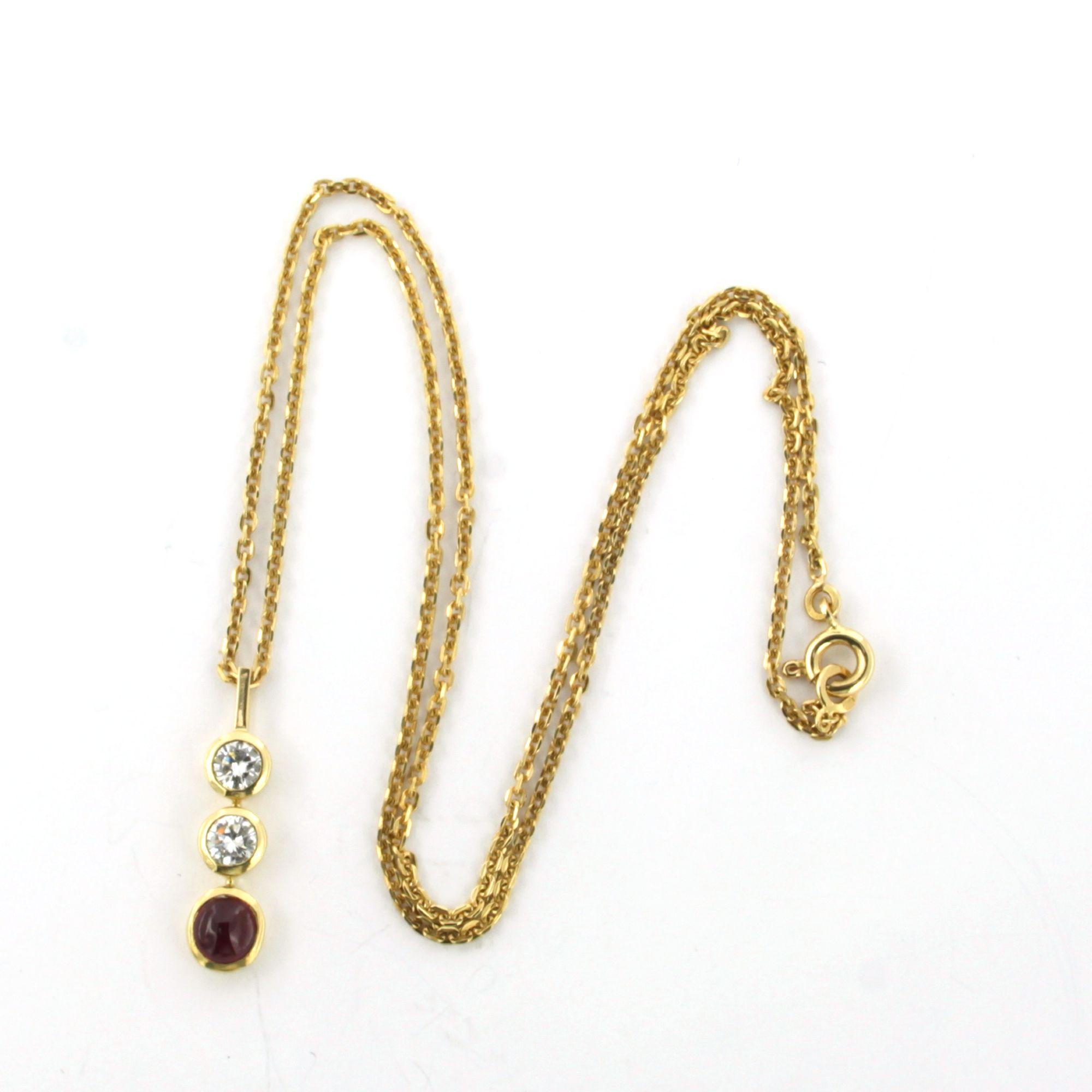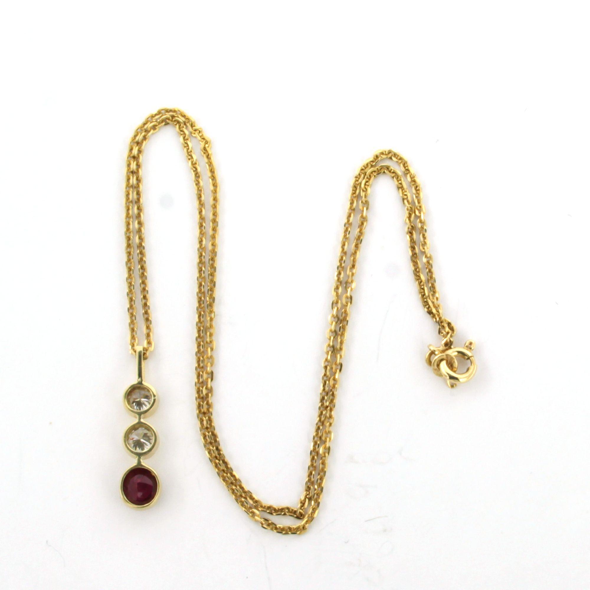 18 Kt. geelgouden collier en hanger bezet met robijn en briljant geslepen diamanten tot. 0.36ct