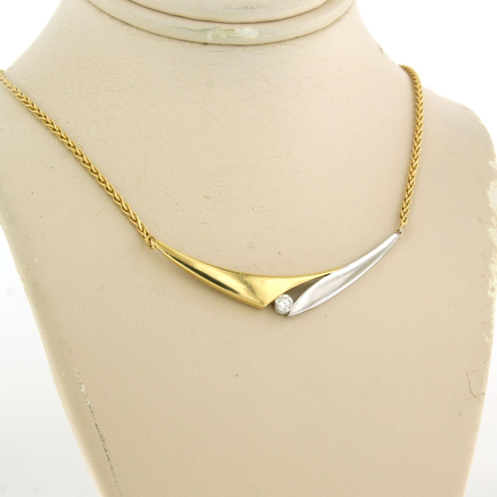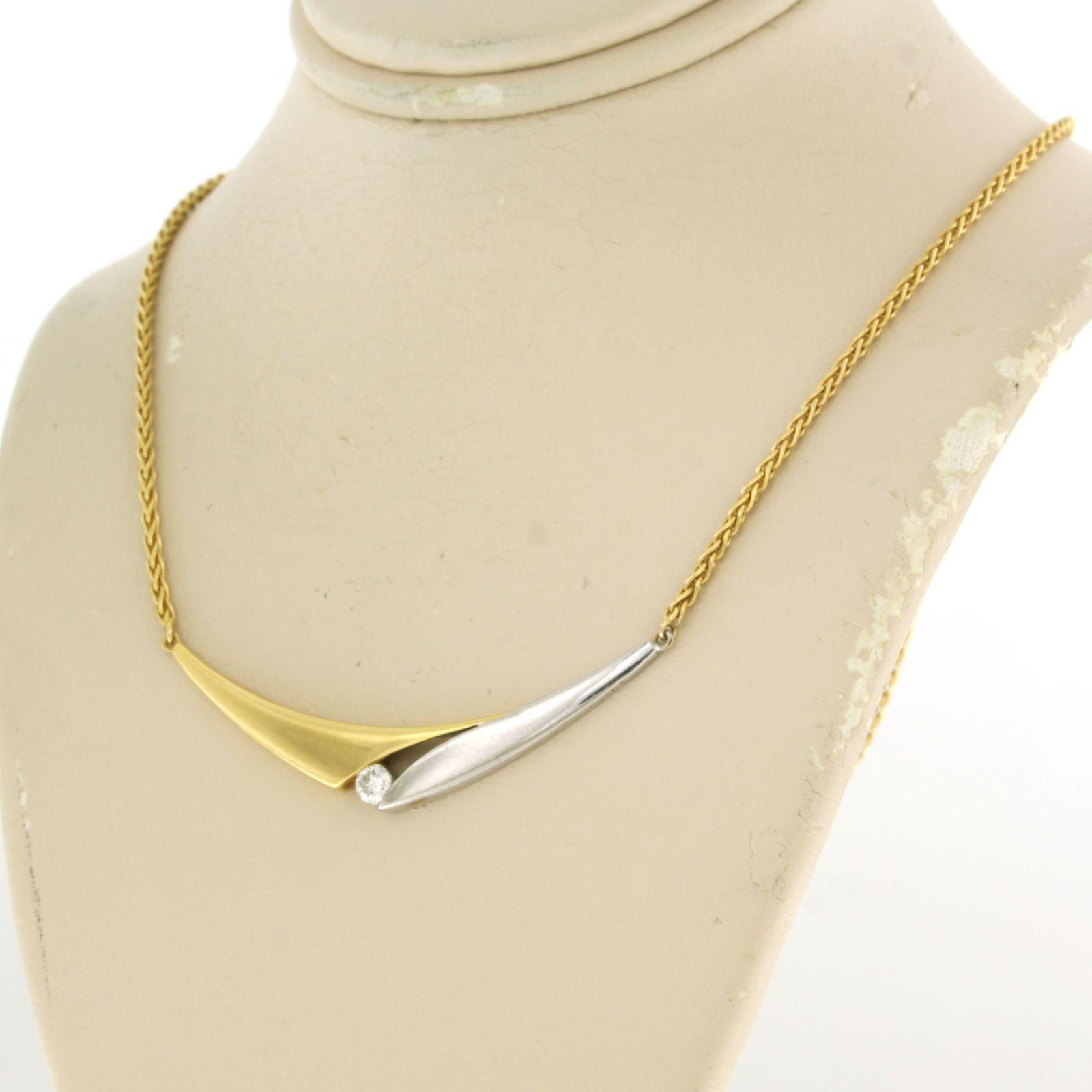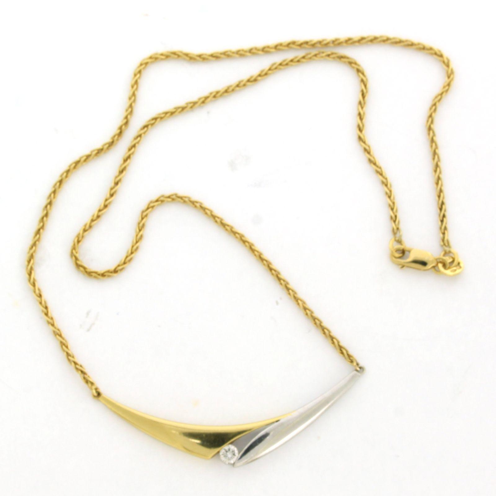 18 Kt. bicolor gouden collier met middenstuk bezet met briljant geslepen diamant 0.12 ct