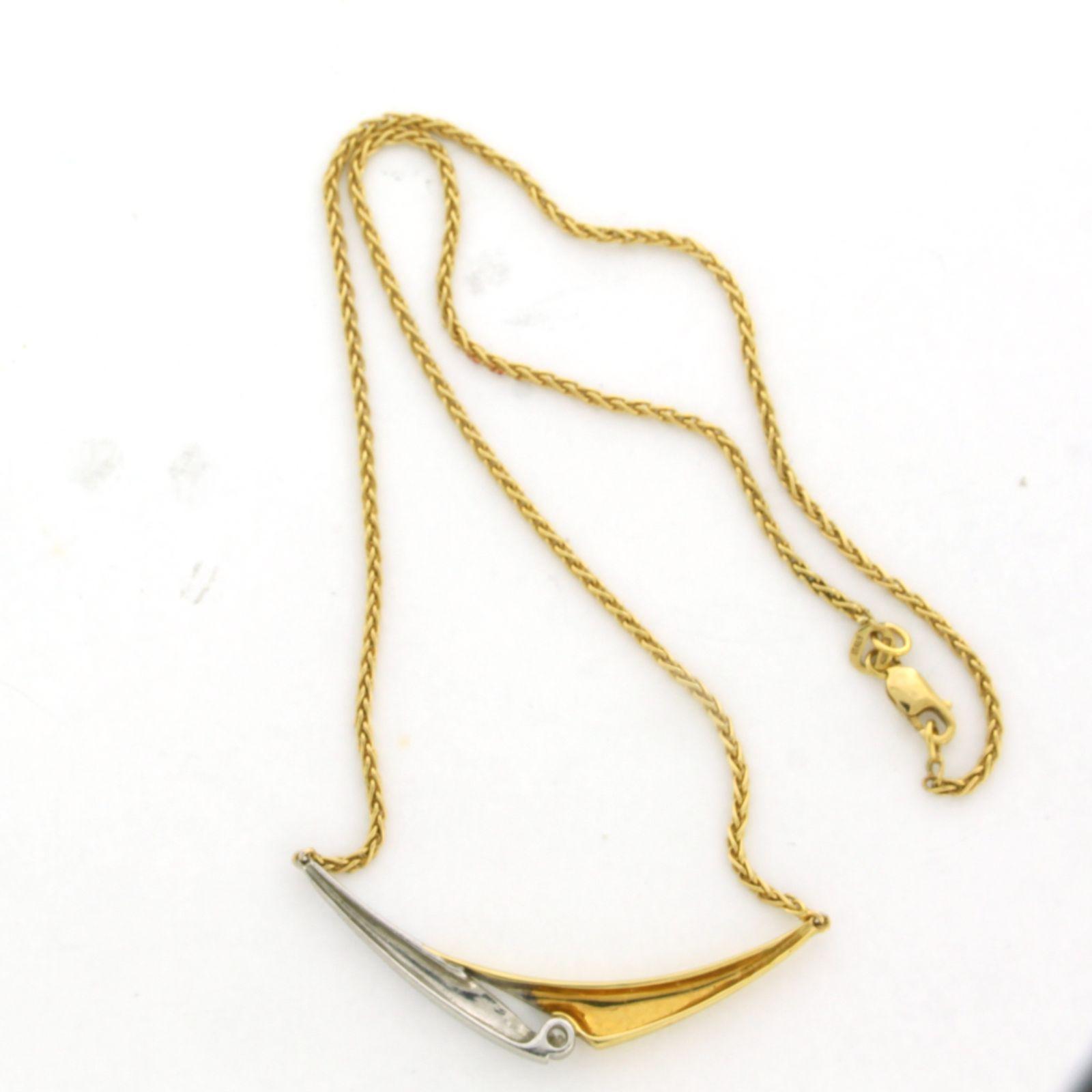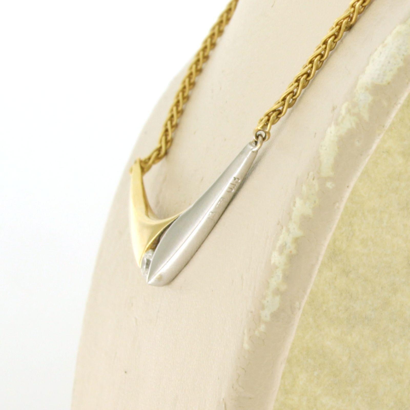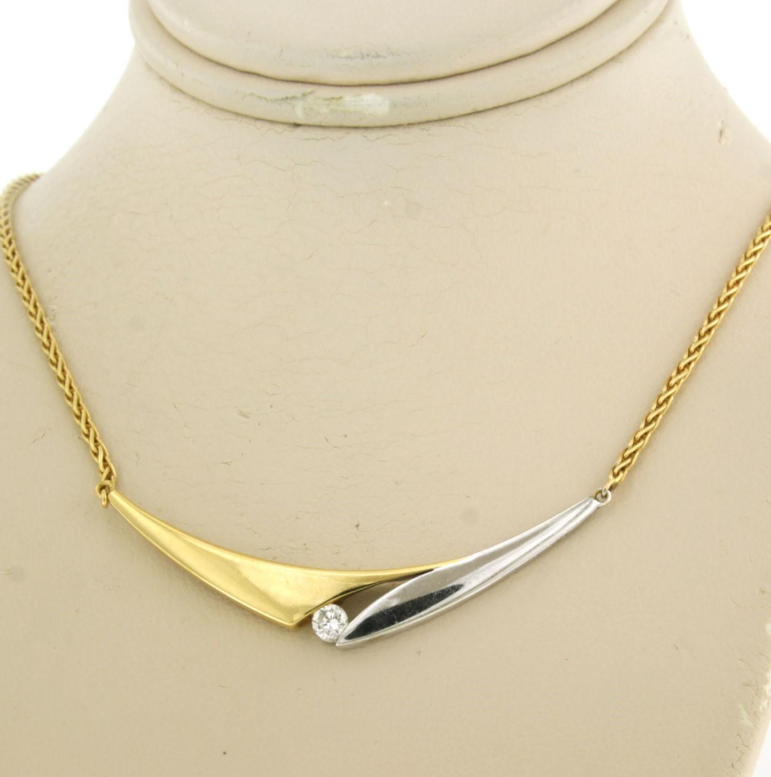 18 Kt. bicolor gouden collier met middenstuk bezet met briljant geslepen diamant 0.12 ct
