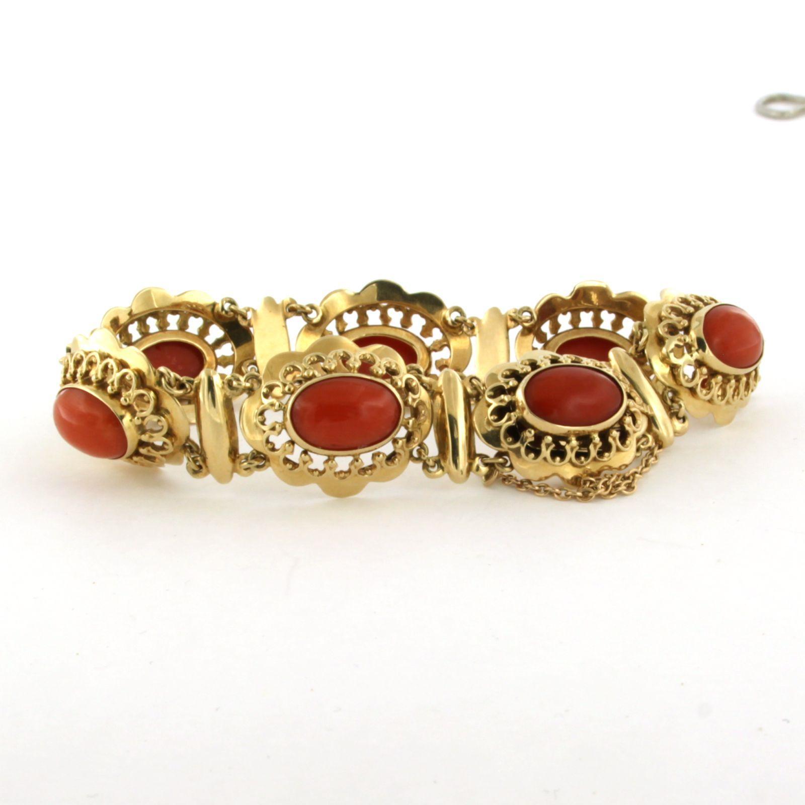 14 Kt. geelgouden schakel armband bezet met koraal