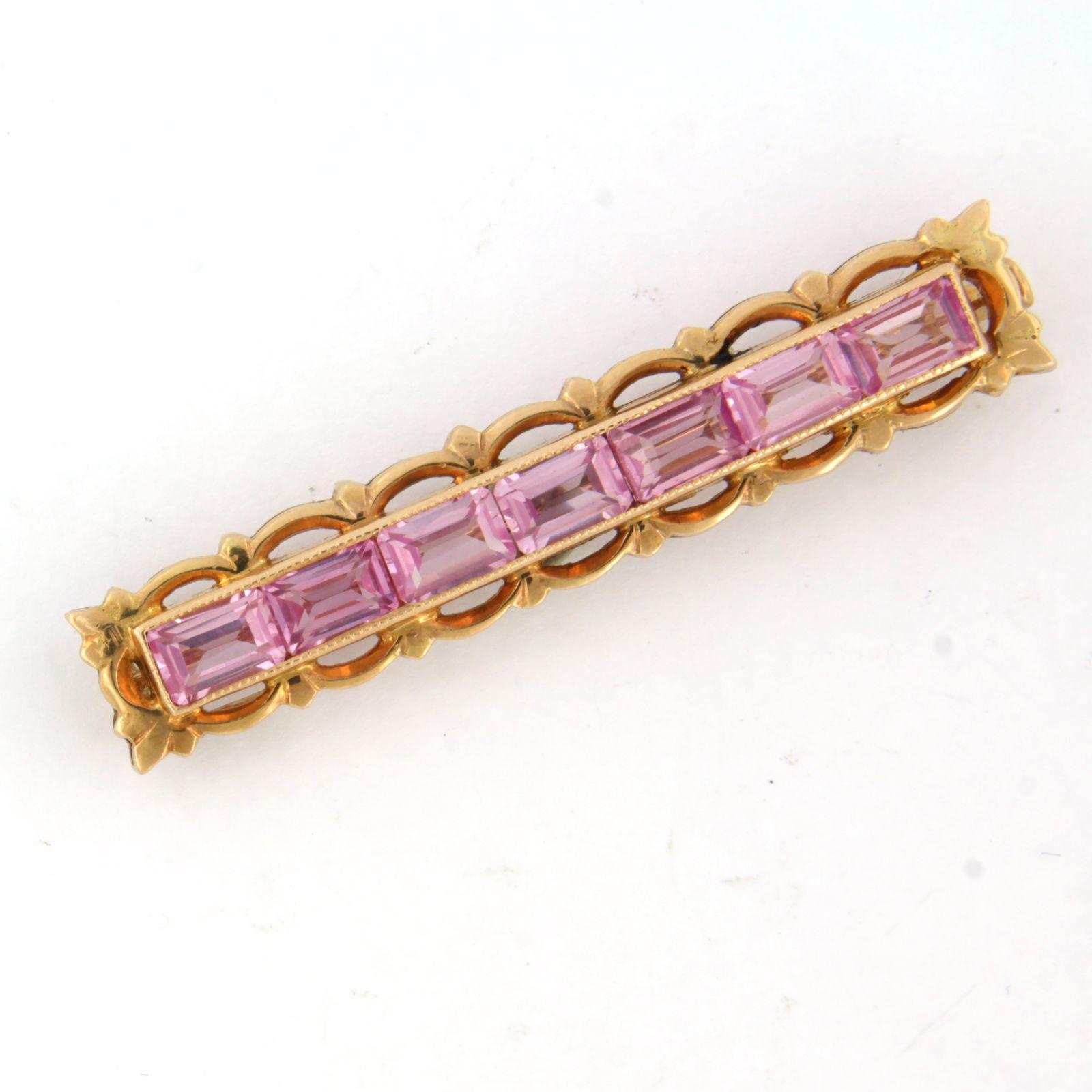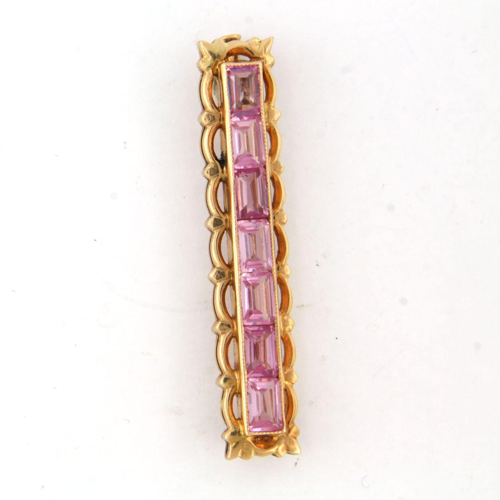 14 Kt. roségouden broche bezet met roze saffier