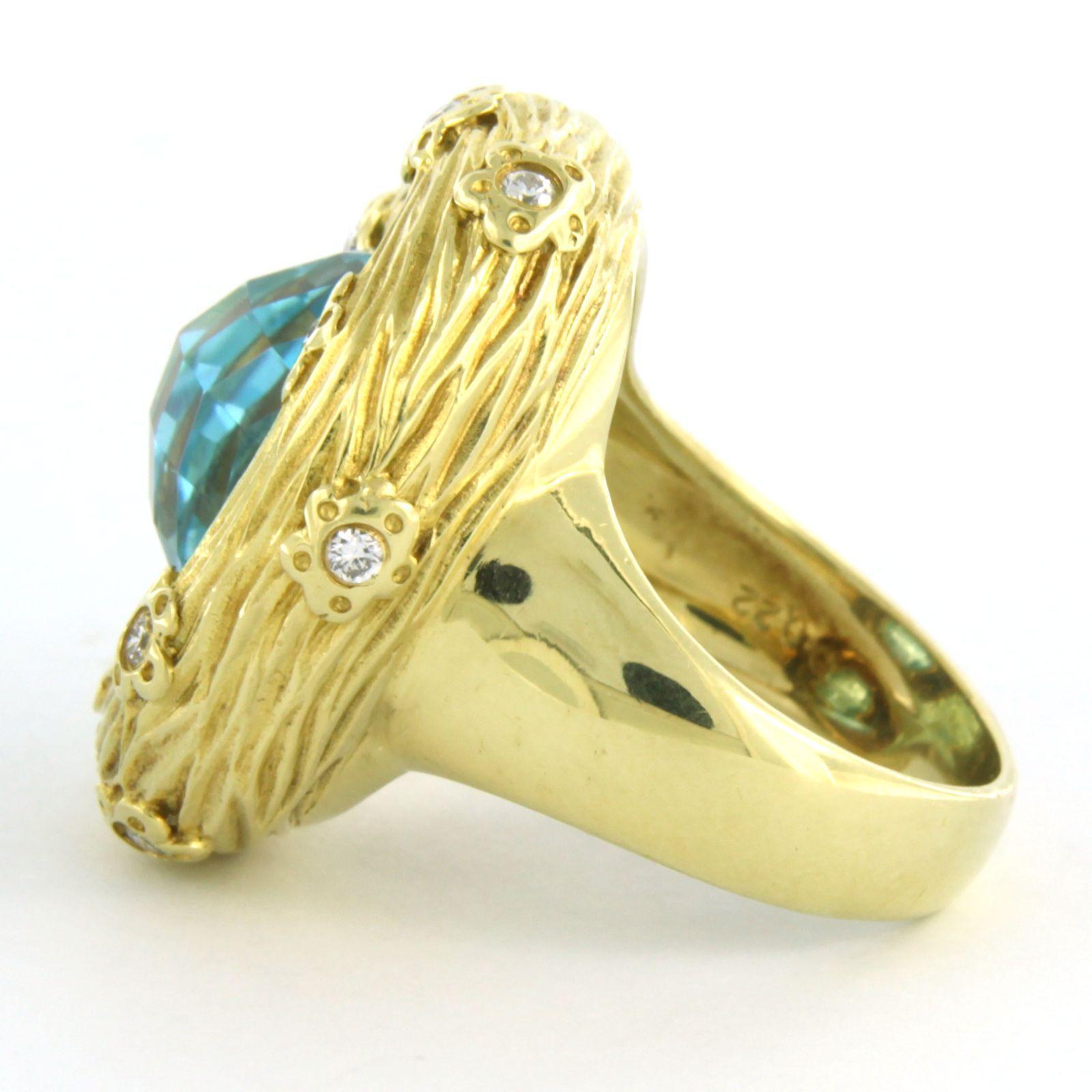 18 Kt. geelgouden ring bezet met topaas 8,90 ct en briljant geslepen diamant 0.22ct - ringmaat 16,5 (52)