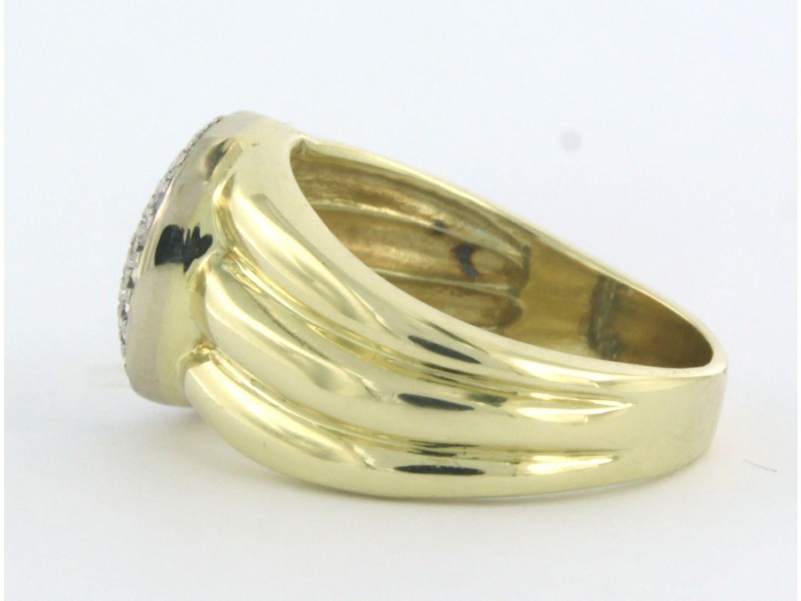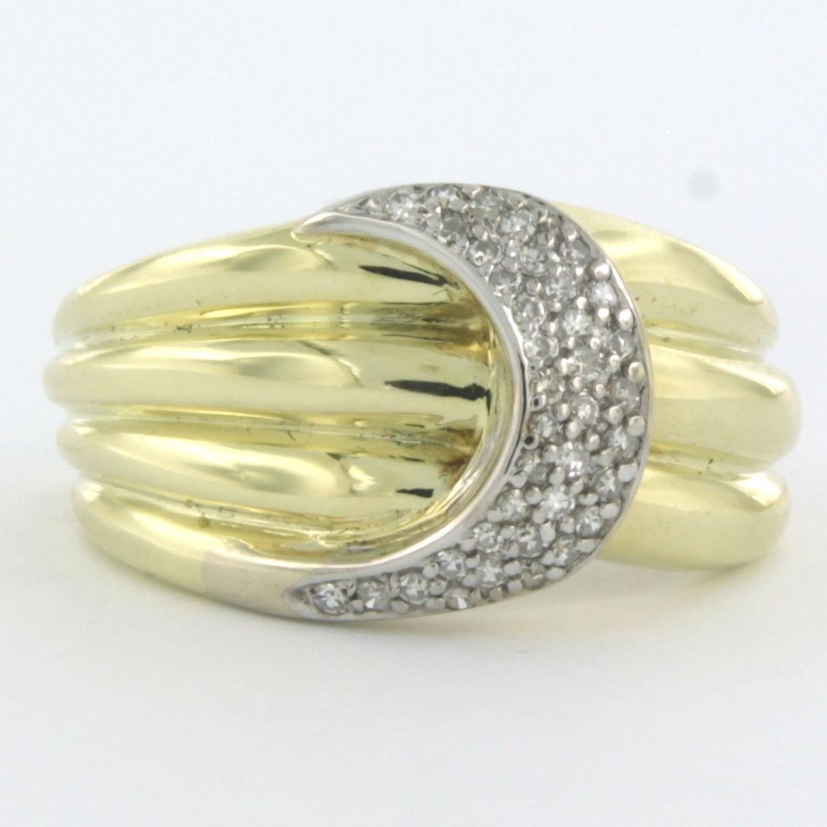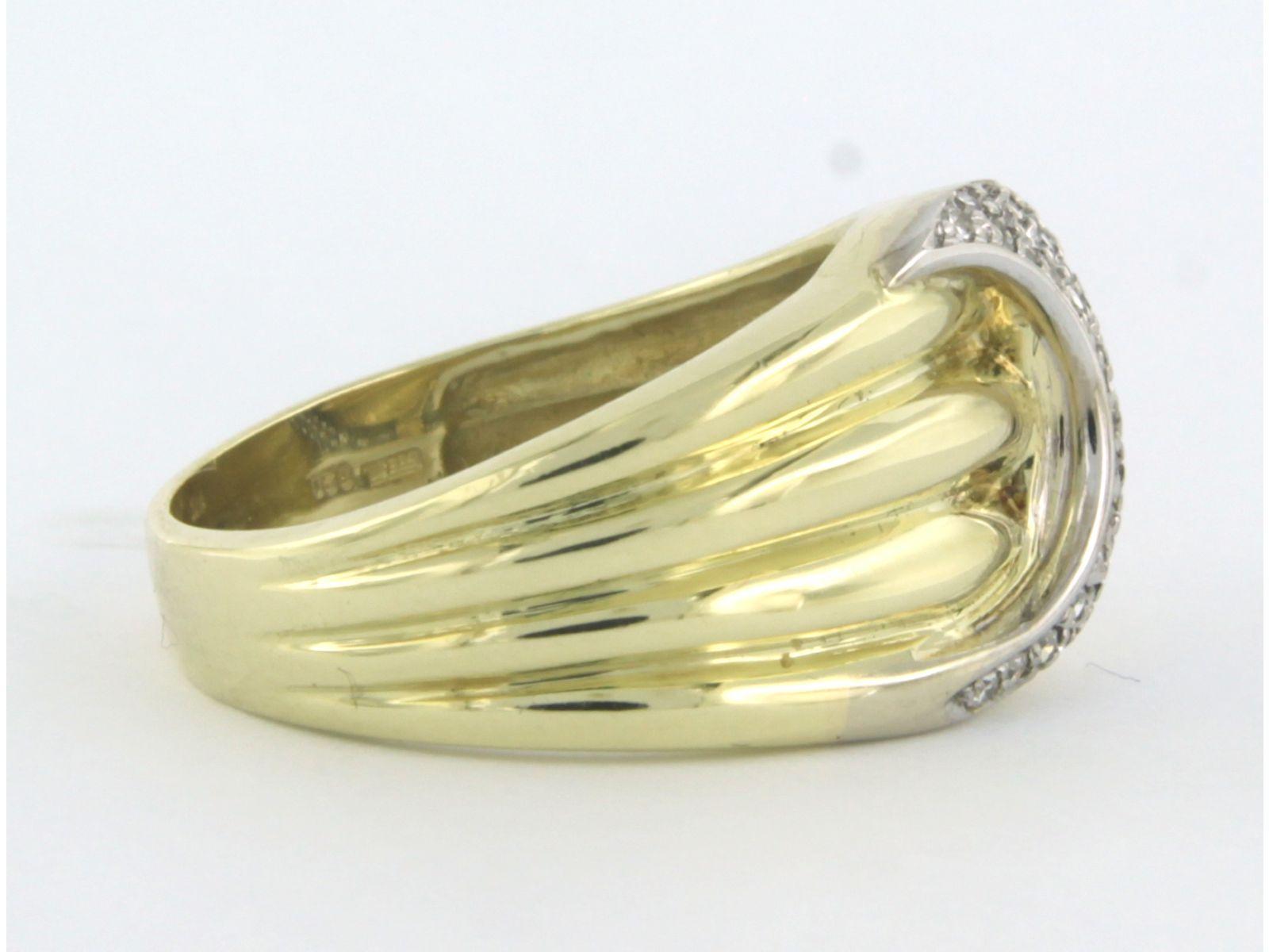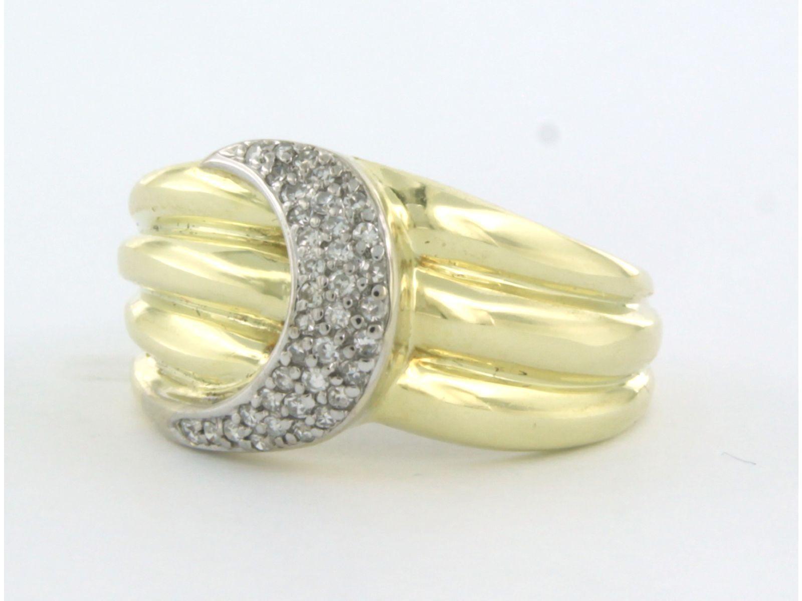 14 Kt. bicolor gouden ring bezet met single cut geslepen diamanten tot. 0,25ct - ringmaat 18(57)