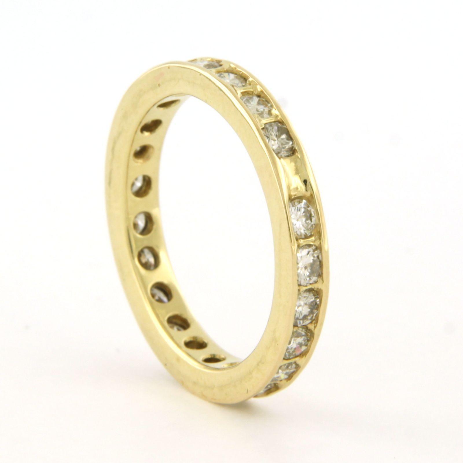 14 Kt. geelgouden band ring bezet met briljant geslepen diamant tot. 1.00ct - ringmaat 17(53)