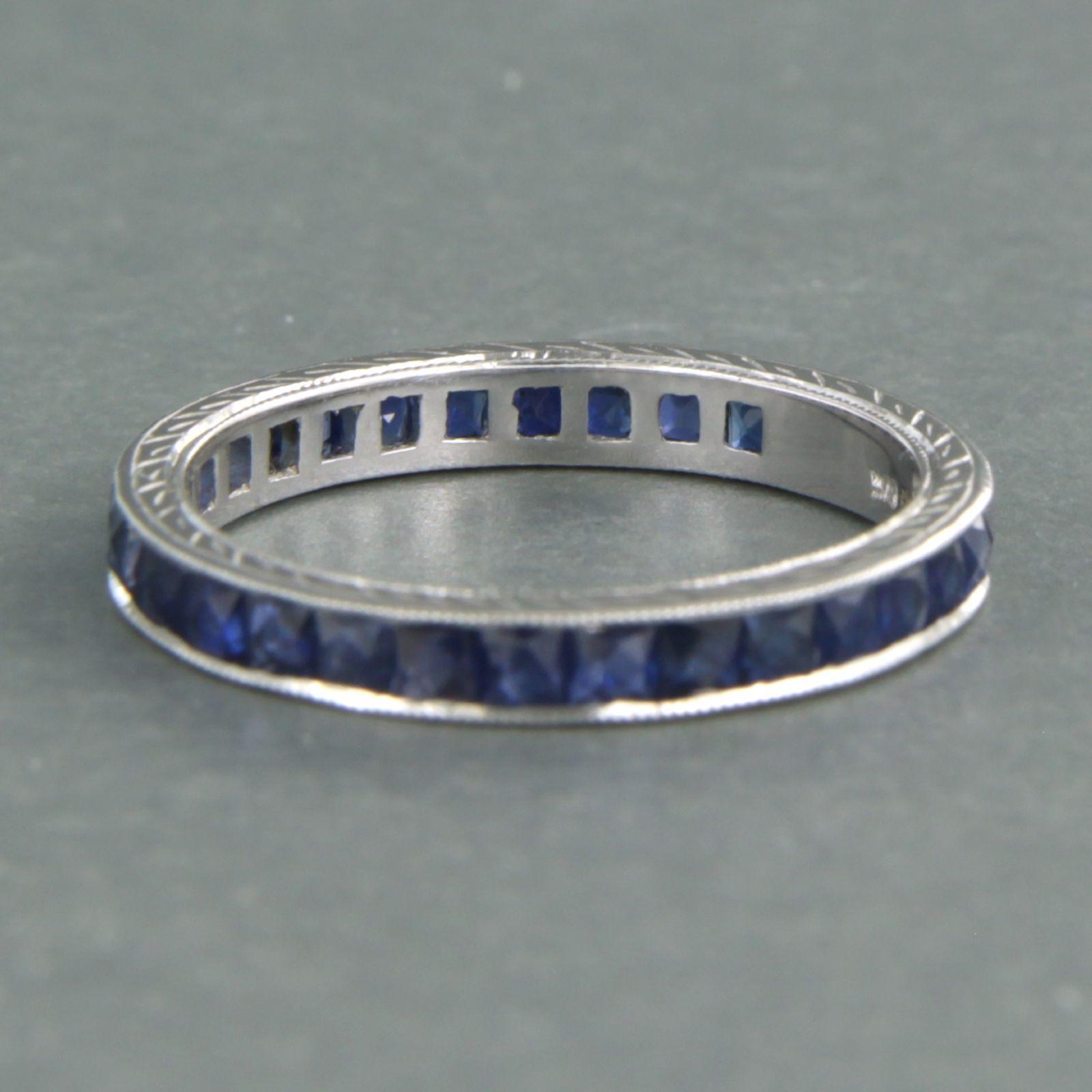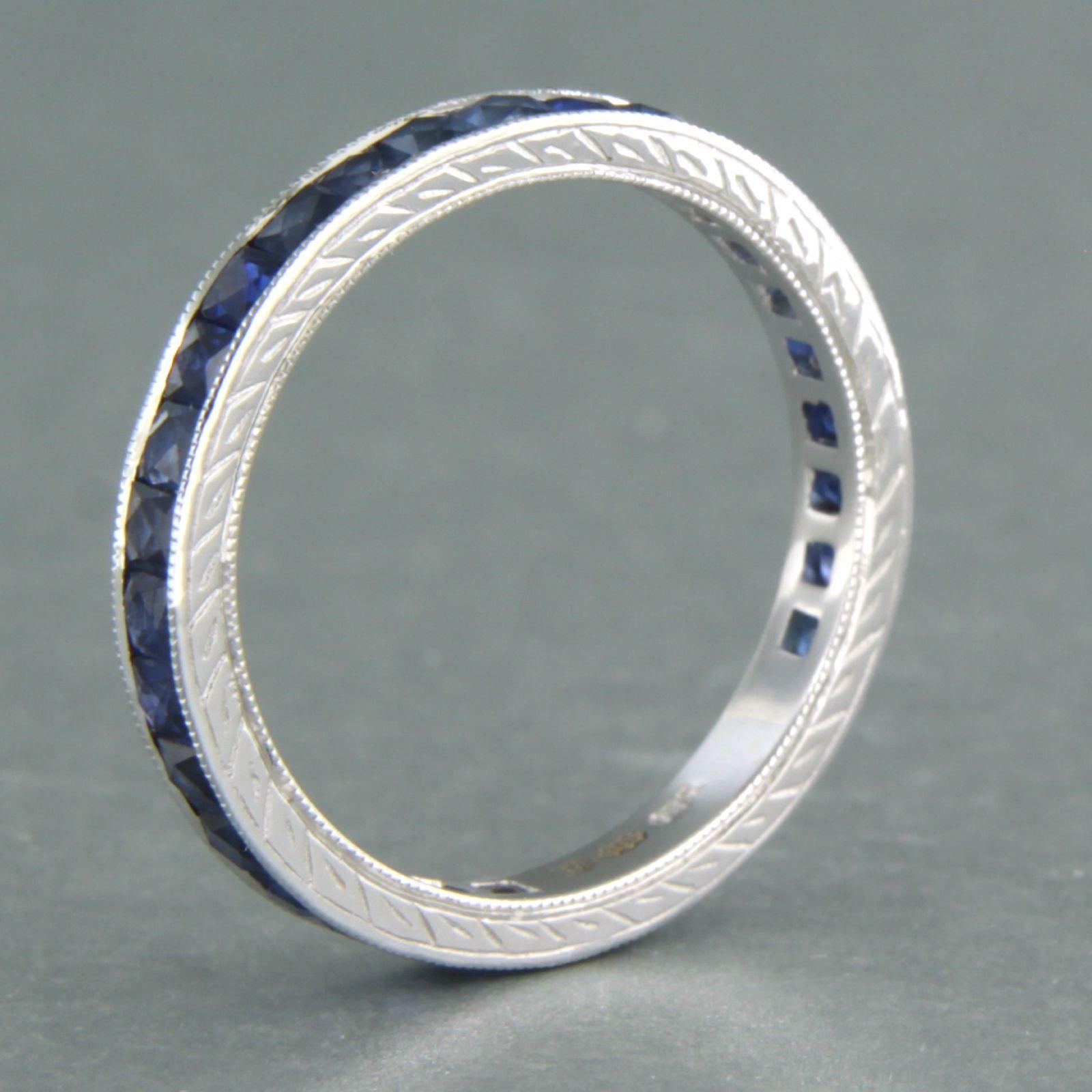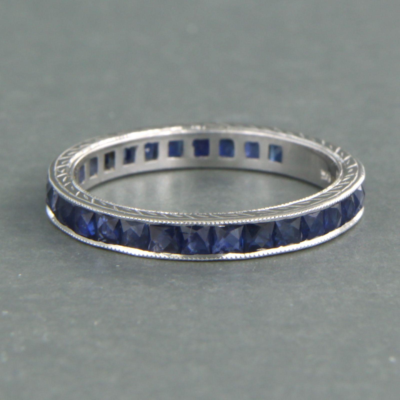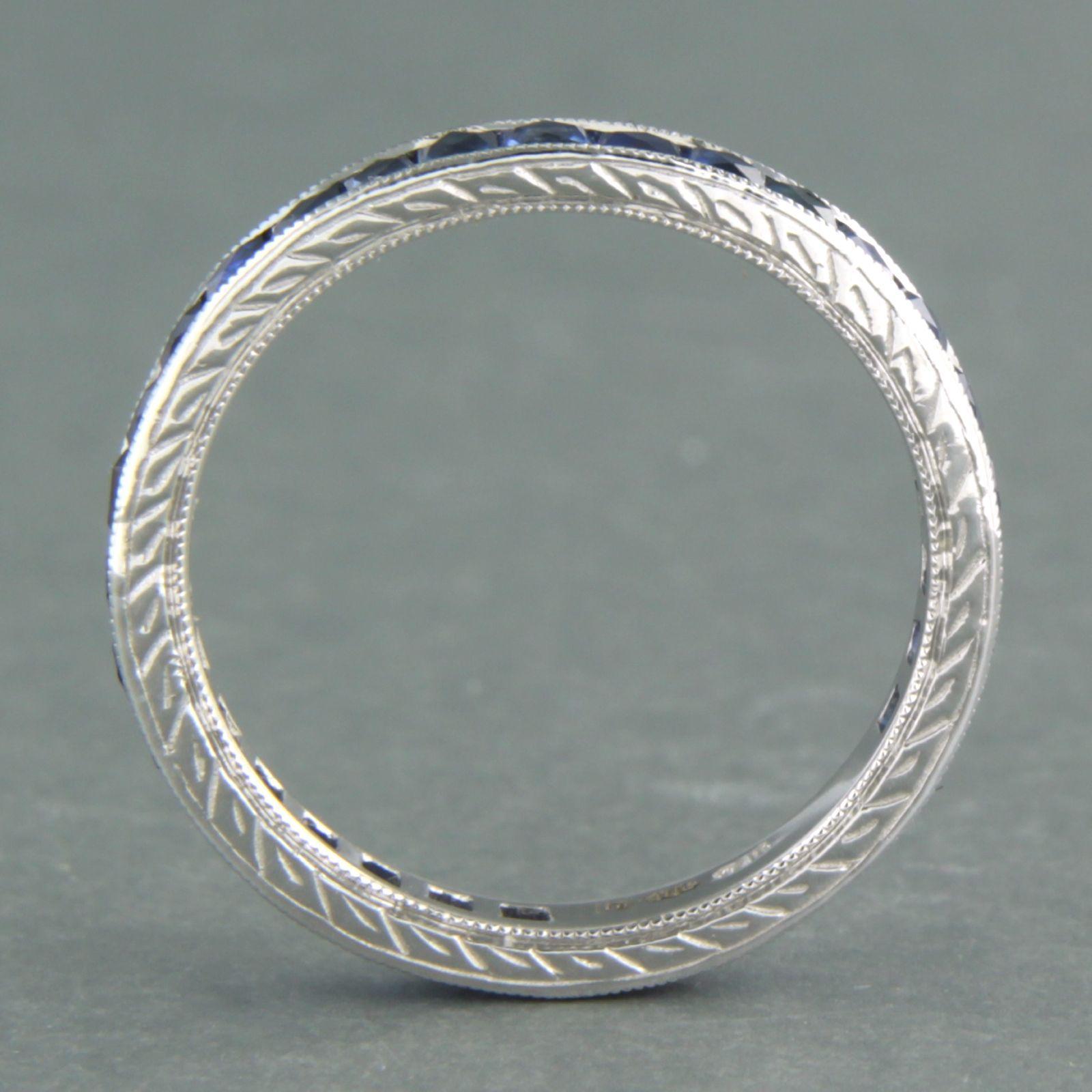 14 Kt. witgouden band ring bezet met saffier tot. 1.65ct - ringmaat 17.75(56)